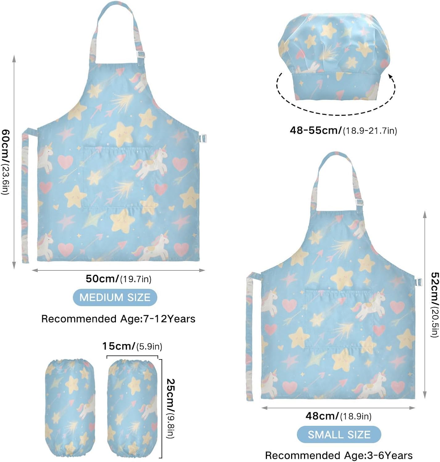 Dimensioni consigliate: S: 48 x 52 cm (età 3-6 anni). M: 50 x 59,7 cm (7-12 anni). La taglia può adattarsi alla maggior parte dei ragazzi e delle ragazze. Si prega di scegliere la taglia giusta in base alle dimensioni specifiche. Materiale ecologico: il tessuto è impermeabile, leggero, accogliente, stampa adorabile alla moda, ecologico per la pelle dei bambini. Protezione delle maniche con una grande tasca: due maniche possono proteggere i bambini da acqua, olio e pigmenti. Con grandi tasche decorative e funzionali, è comodo mettere alcuni strumenti quando si utilizza, adatto per imparare a cucinare, fare caramelle, dolci, ecc. Applicazioni versatili: ideale per i bambini per proteggere i vestiti durante la cottura, il giardinaggio, la cottura, il gioco, la produzione di caramelle, la cottura di torte, tele, arti e mestieri, lezioni in classe, faccende domestiche. Può anche essere una grande decorazione per costumi di Halloween, oggetti di scena teatrali, feste di compleanno, eventi carini, feste a tema, riunioni di famiglia e molto altro ancora. L'articolo include: il grembiule per bambini include 1 grembiule leggero, 1 cappello da chef e 2 maniche. Il set di grembiuli per bambini può dare ai bambini una buona esperienza di utilizzo per cucinare o dipingere come fornelli o pittori professionisti.