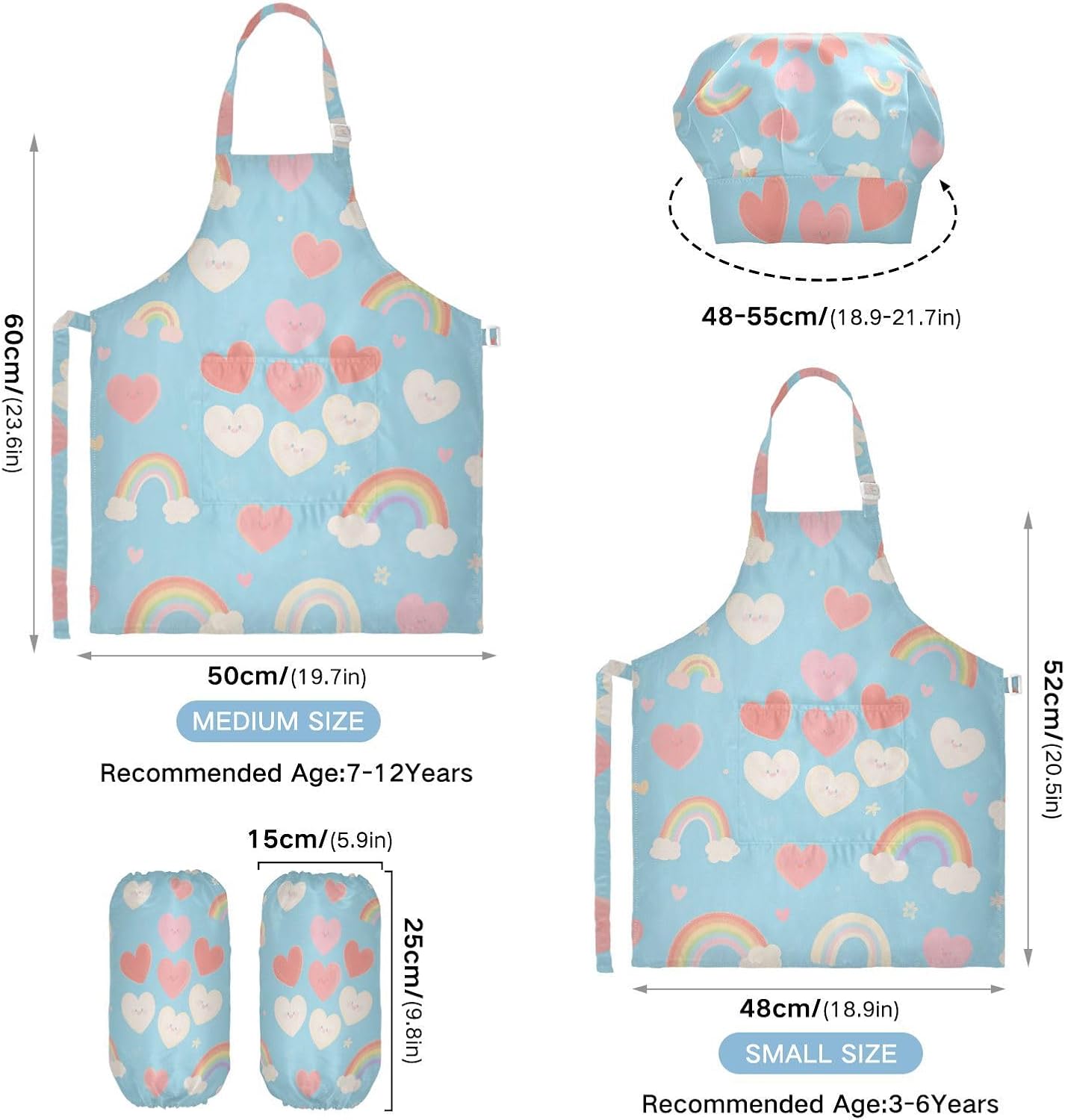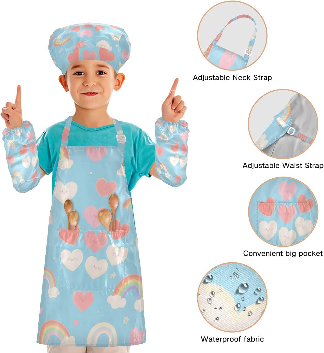 Grembiuli creativi per bambini arcobaleno e cuore blu bambino cappello da chef grembiule set da forno per bambini 3-12 anni