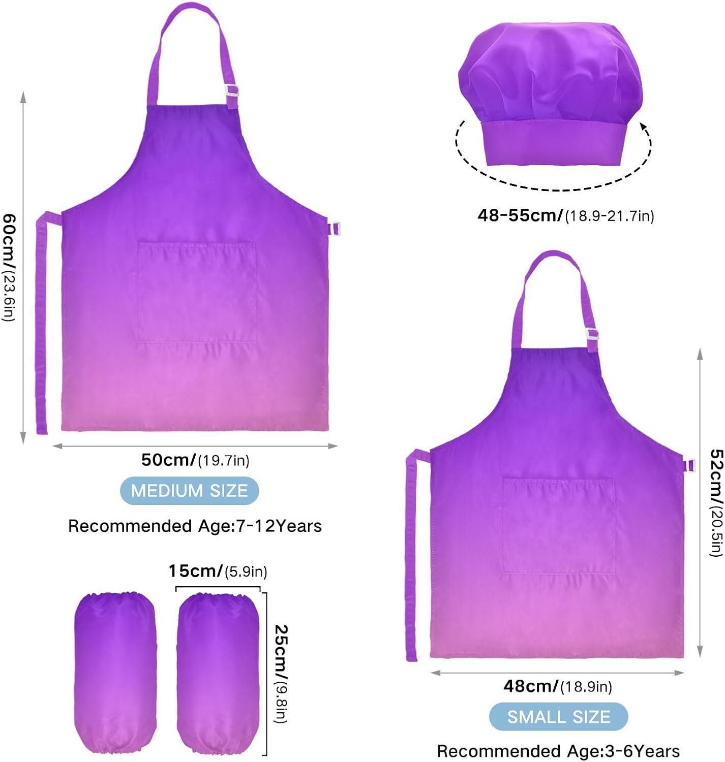 Dimensioni: il costume da chef per bambini da 3 a 6 anni è alto 52,1 cm, largo 48 cm. Il set di grembiule per bambini di medie dimensioni per età compresa tra 7 e 12 anni è alto 59,7 cm, largo 50 cm. Il cappello delle due dimensioni misura 48-55,1 cm. ?La custodia misura 15 x 24,9 cm. Materiale di alta qualità: il grembiule per bambini è realizzato in poliestere, comodo, elegante, leggero e regolabile, impermeabile, facile da pulire. Cinghia regolabile: il collo lungo e le cinghie in vita sono regolabili. È possibile regolare la cinghia in base alla lunghezza che i bambini si sentono a proprio agio per attività o vestirsi Inoltre, la cinghia regolabile può fornire abbastanza spazio per i bambini da indossare o togliere. Applicazioni versatili: ideale per i bambini per proteggere i vestiti durante la cottura, il giardinaggio, la cottura, il gioco, la produzione di caramelle, la cottura di torte, tele, arti e mestieri, lezioni in classe, faccende domestiche. Può anche essere una grande decorazione per costumi di Halloween, oggetti di scena teatrali, feste di compleanno, eventi carini, feste a tema, riunioni di famiglia e molto altro ancora. Istruzioni di lavaggio: lavabile in lavatrice e a mano. Non candeggiare, lavare a secco e asciugare in asciugatrice.