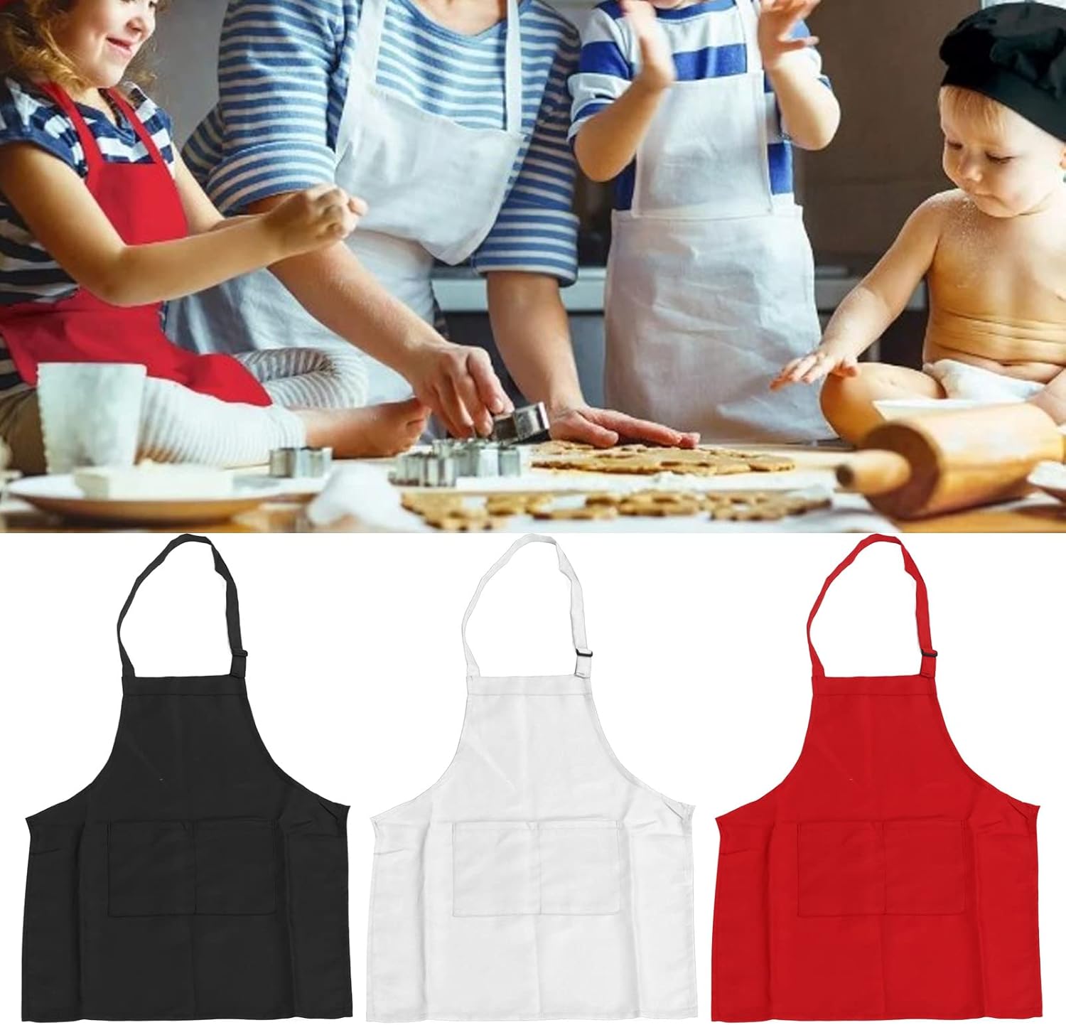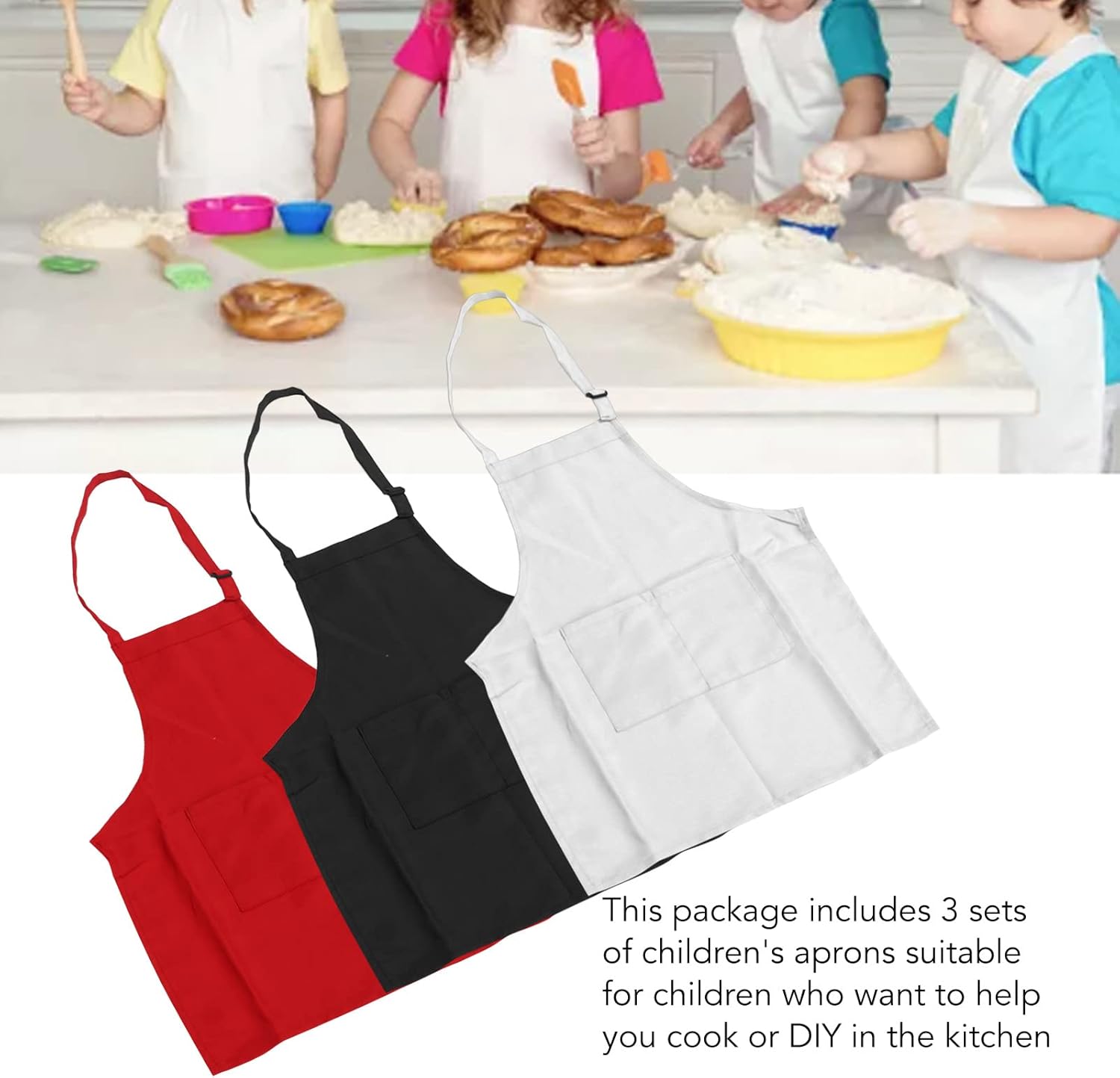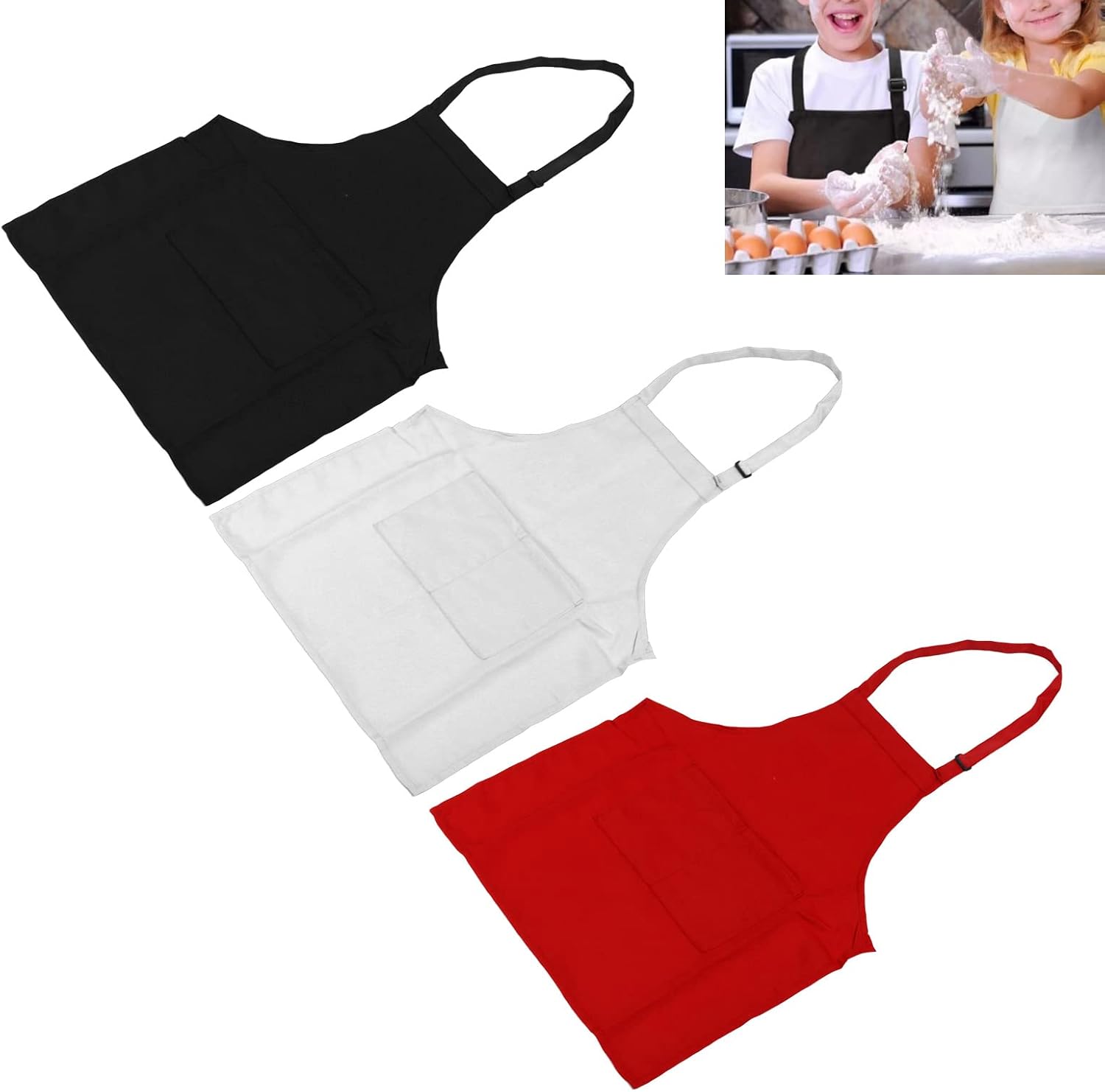 Specifiche: Tipo di articolo: grembiule per bambini Materiale del prodotto: poliestere Colore: bianco, rosso, Lunghezza: ca. 56 cm/22,0 once Taglia del prodotto: taglia S Peso: ca. 207 g/7,3 once Applicazione: adatto per bambini dai 3 ai 6 anni Lista Imballaggio: 3 grembiuli