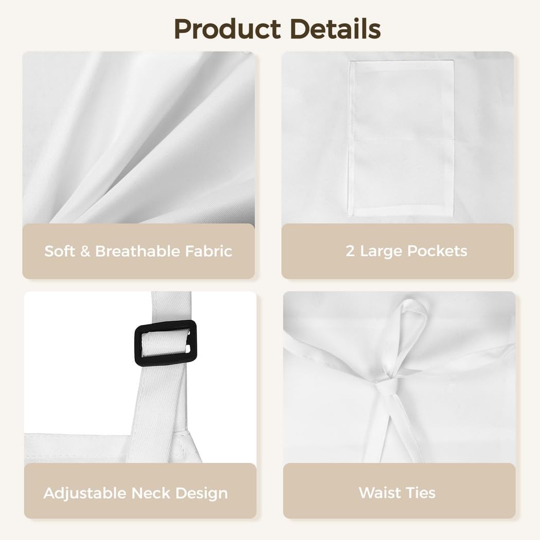 Colore: bianco. Materiale: poliestere. Dimensioni: 55,9 x 43,9 cm. La confezione include: 4 grembiule. Nota: si prega di fare riferimento alle misure. Si prega di considerare un piccolo margine di errore nelle misure. - Potrebbe esserci una piccola differenza di colore a causa del monitor, della fotocamera o di altri fattori, si prega di fare riferimento all'articolo fisico.