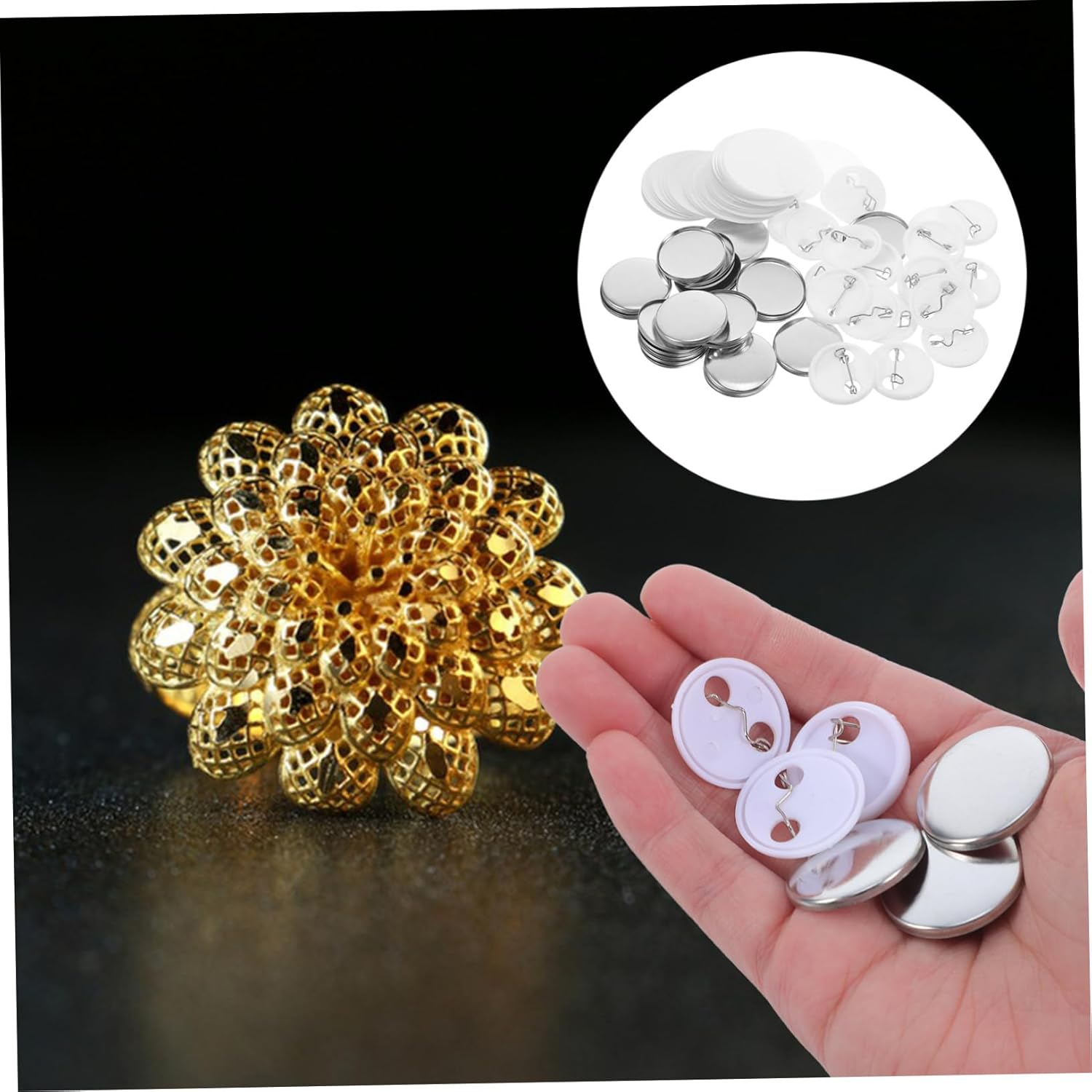 Per progetti fai da te: ideali per creare badge per aggiungere un tocco personale e creativo al tuo lavoro, parti per spille e kit di assemblaggio di medaglie e durevoli: realizzati in materiale robusto, questi pezzi grezzi per spille sono progettati per durare. Spille grezze in lamiera stagnata, set di spille per set grande: adatto per produzione di massa e grandi progetti Questi materiali soddisfano un'ampia gamma di esigenze creative, badge in ferro fai-da-te e bottoni grezzi in metallo Design rotondo attraente: la forma rotonda conferisce ai tuoi badge, spille e badge rotondi in plastica trasparente un aspetto distintivo e attraente Forma rotonda attraente: il design rotondo conferisce ai tuoi badge, spille e spille fai-da-te un elemento unico e attraente