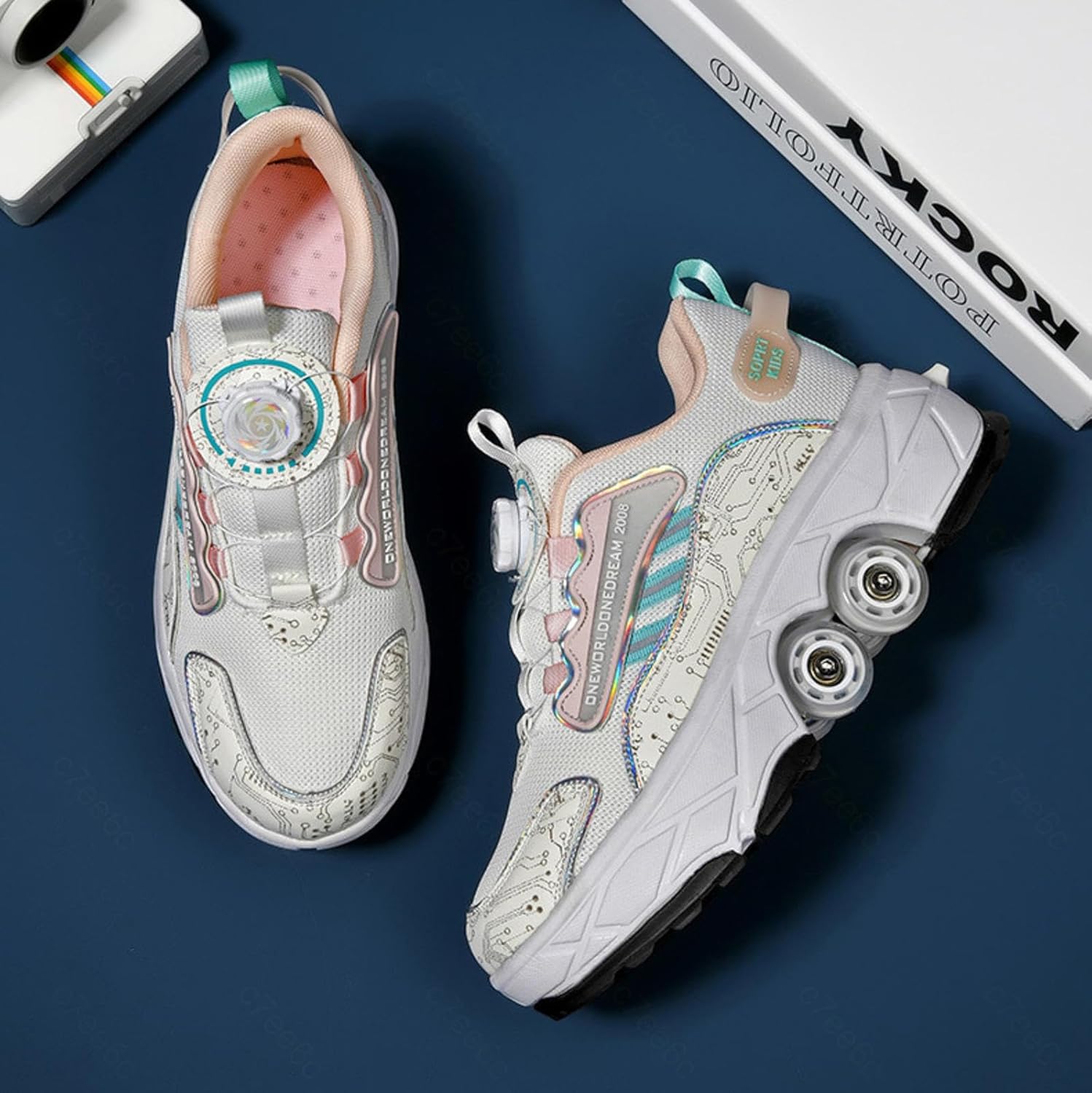 GRFIT Scarpe con Ruote Scarpe Multifunzionali 2 in 1 a 4 Ruote con Pattini a Rotelle Scarpe Deformanti per Uomo Donna e Bambino, 43