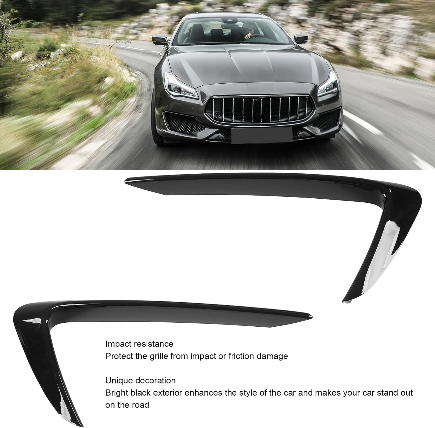 [MODELLI APPLICABILI] Striscia di rivestimento superiore della griglia del paraurti anteriore per Quattroporte M156 Facelift 2017+, GTS, Sport, Trofeo per garantire la vestibilità. [DESIGN ANTIURTO] Previene i danni da impatto o attrito e riduce segni e graffi per mantenere la tua auto immacolata. [STILE COOL] Migliora l'aspetto della tua auto con una finitura nera lucida, facendola risaltare sulla strada ed evidenziando il tuo gusto elegante. [ARTIGIANATO SQUISITO] Il design unico garantisce un aspetto accattivante e prestazioni professionali, ideali per sostituire finiture vecchie o danneggiate. [DETTAGLI DI INSTALLAZIONE] Installazione facile e sicura sulla griglia per garantire una perfetta aderenza che non cadrà o danneggerà la superficie della tua auto.