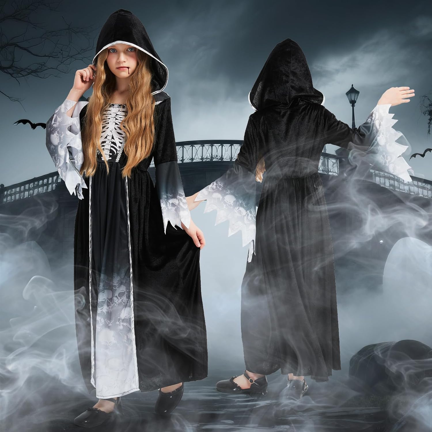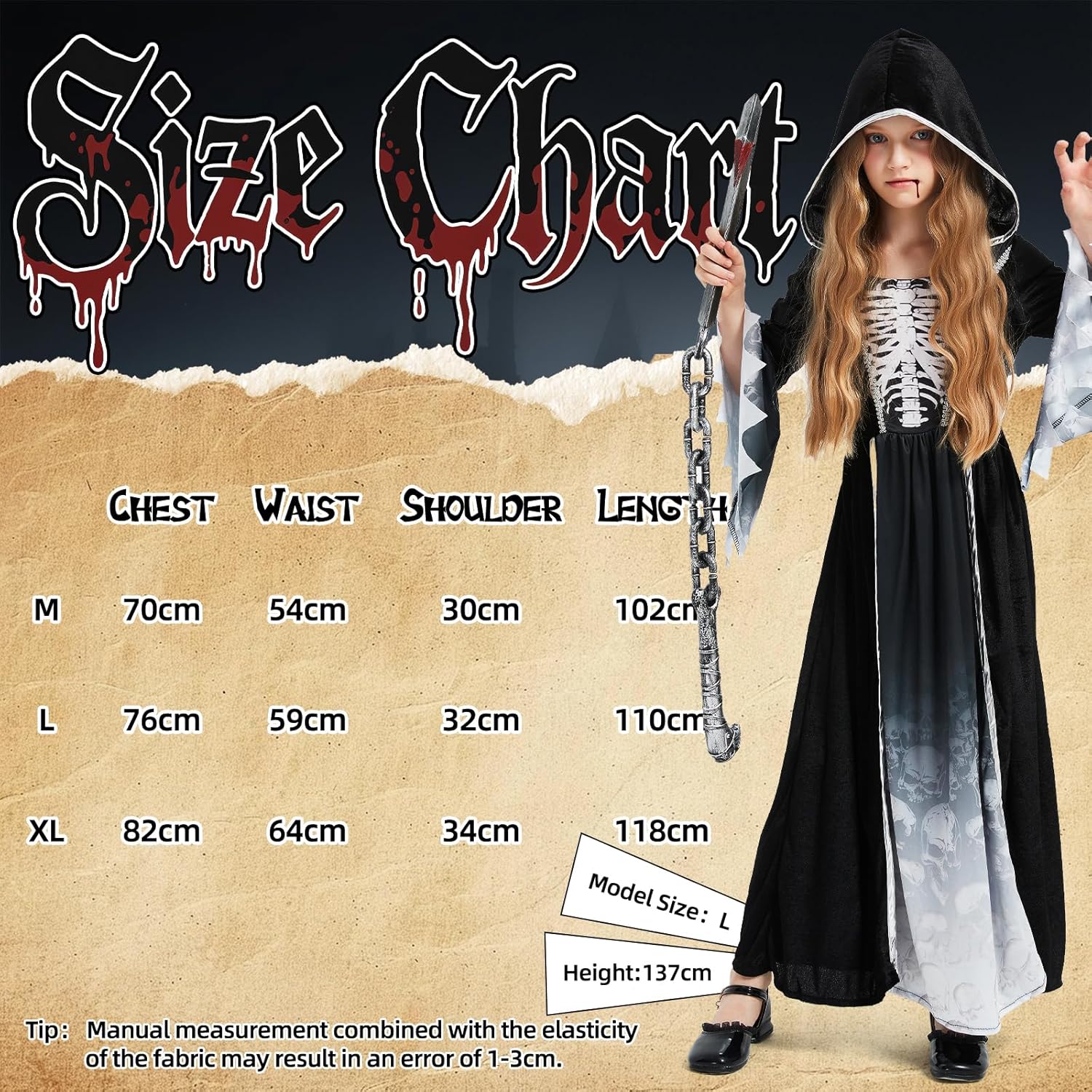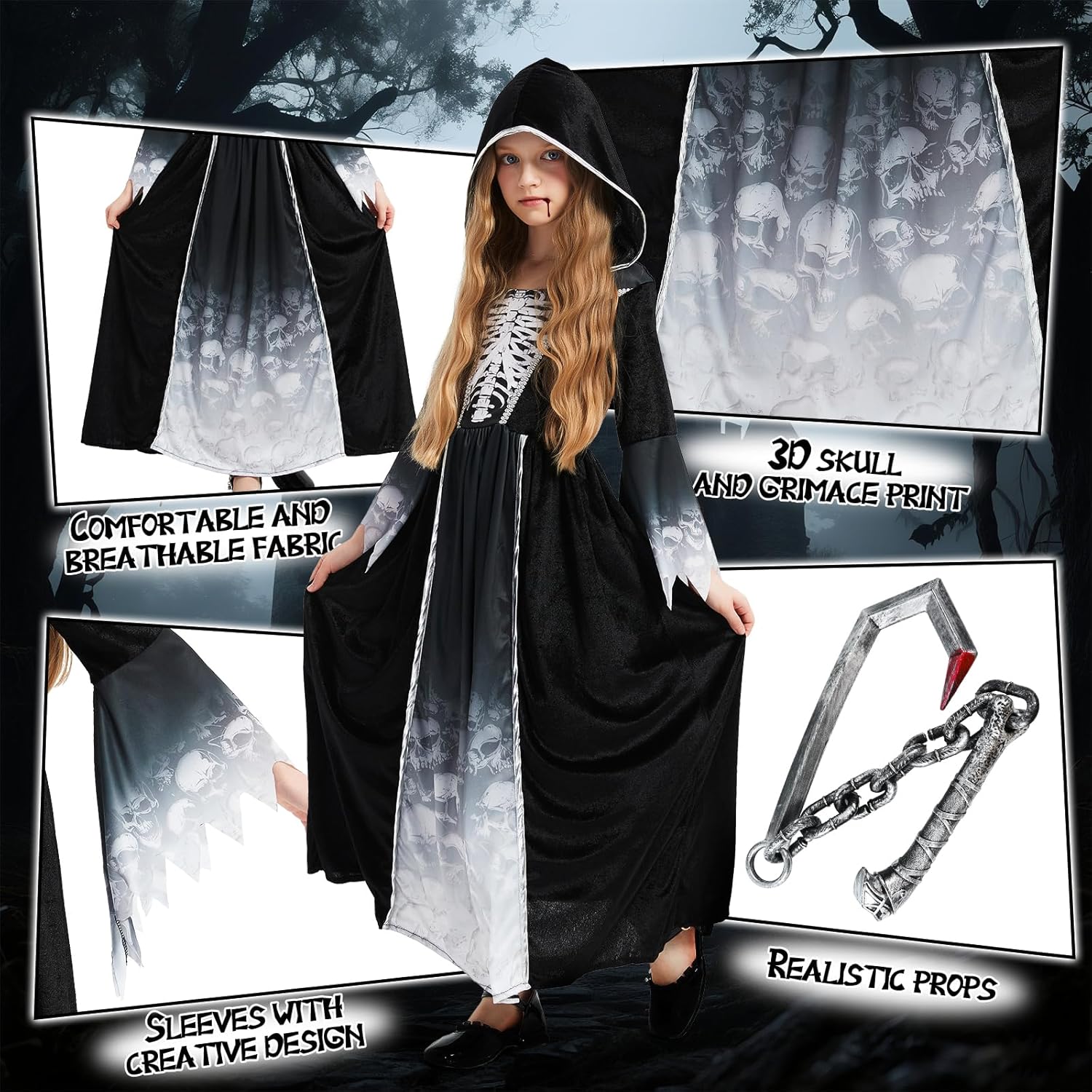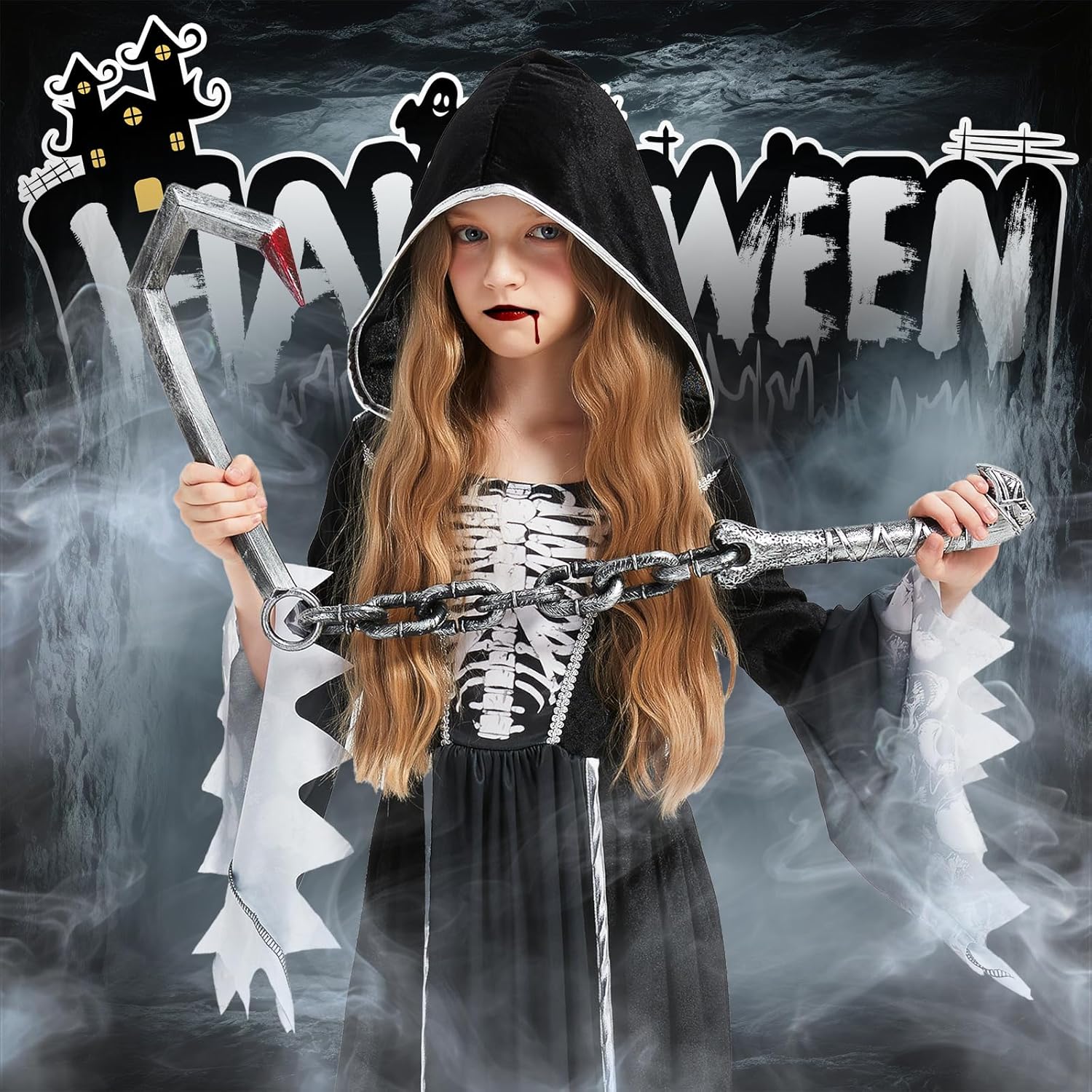Grim Reaper Costume, Costume Halloween Morte con Falce, Scream Reaper Costume, Ragazza Mietitrice per Halloween Carnevale Cosplay, Vestito D'Halloween Ragazza per Bambini dai 7 Anni