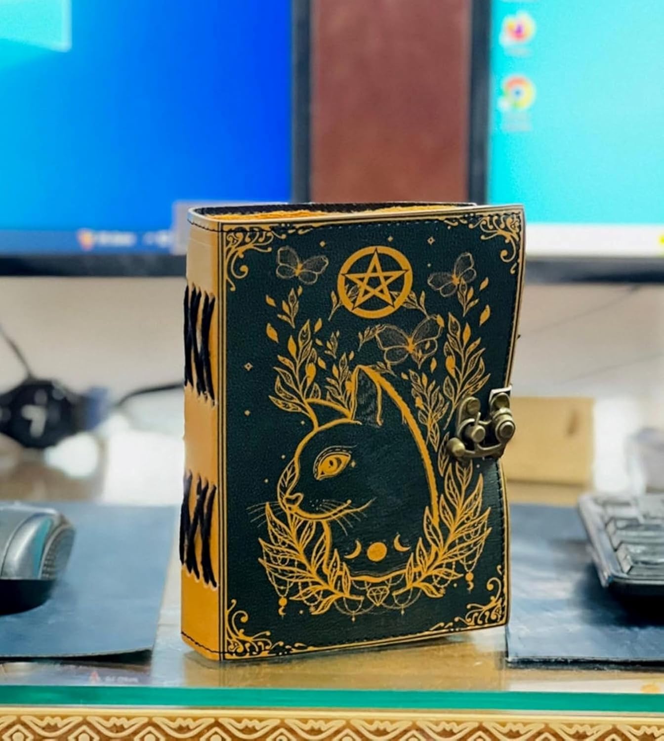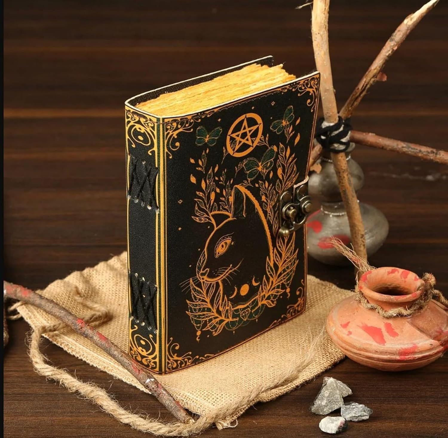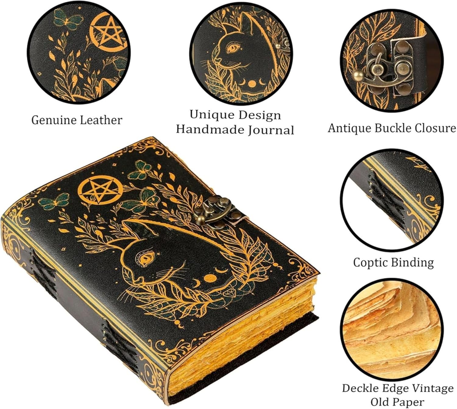 Grimorio Gatto Diario in pelle stampato Caltic Diario vuoto Libro degli incantesimi Libro delle ombre Regalo in pelle per lui Quaderno per schizzi Diario (8" x 6")