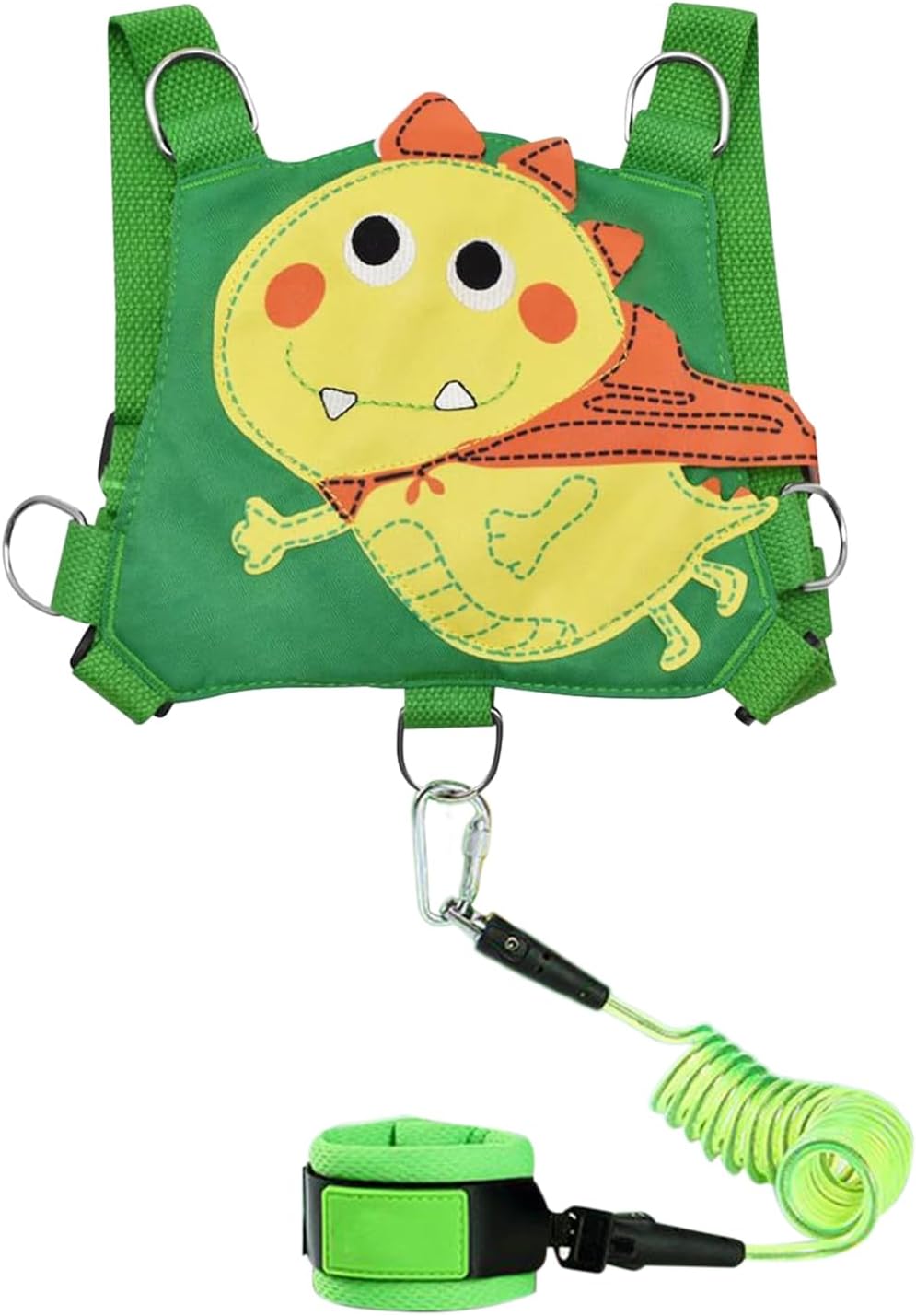Design Multifunzione: Combina imbragatura e guinzaglio per flessibilità, concedendo ai bambini libertà di esplorare in sicurezza mantenendo la vigilanza dei genitori in aree affollate o spazi aperti Design Sicuro Bambini: Fasce rifrangenti aumentano la visibilità in penombra, con struttura di fibbia robusta e cavo in acciaio rinforzato per sicurezza infantile durevole e affidabile Funzionalità Adattabile: Progettato per ambienti multipli, combina guinzaglio staccabile e cinturino regolabile consentendo transizioni fluide tra gli usi, garantendo sempre protezione ottimale per bambini piccoli Motivo giocoso:Con il suo dinosauro 3D e anello rotante, stimola la fantasia e l'interazione durante le passeggiate, assicurando sicurezza e divertimento per il bambino. Gestione Umidità: Mix di materiali traspiranti e supporto imbottito offre vestibilità conformabile, con distribuzione uniforme del peso per avventure piacevoli