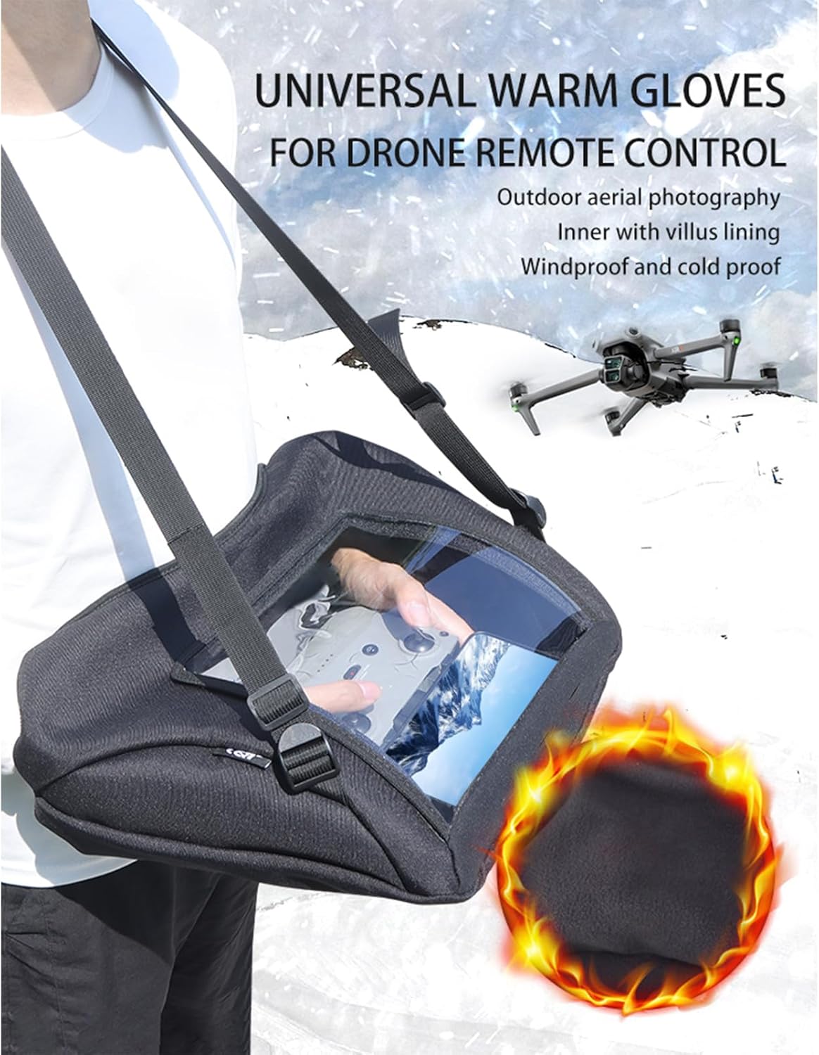 Guanti caldi per telecomando UAV, con ulteriore isolamento in pile, antivento e resistente al freddo. Buona resistenza agli urti, resistenza al calore e resistenza alle basse temperature. Design integrato, tessuto ispessito, senza timore di invasioni di freddo e neve in inverno. Si adattano perfettamente alle braccia e i guanti non perdono aria, fornendo calore. Compatibile con quasi tutti i piccoli telecomandi UAV.