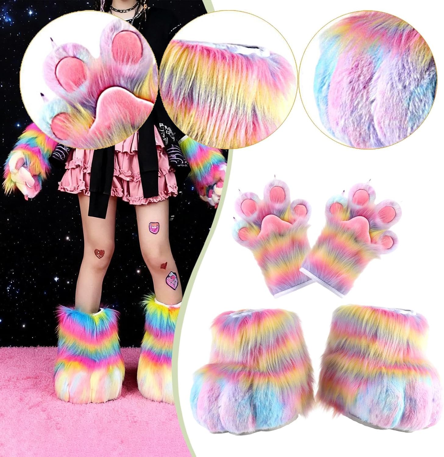 【Ampie occasioni】: i guanti e le scarpe Cosplay Claw sono ampiamente adatti per cosplay, mostre di fumetti, Halloween, feste, carnevali, spettacoli teatrali, oggetti di scena per foto, spettacoli, feste a tema, travestimenti, giochi di ruolo, ecc. 【Design di animali dei cartoni animati】: accessori per costumi da animale cosplay contengono un paio di guanti di peluche e un paio di scarpe a forma di zampe di animali, cuscinetti per zampe realistici, ottimi per il cosplay di gatto, gatto, lupo, cane, ecc. 【Facile da indossare】: stivali di peluche e la zampa con chiusura di regolazione con coulisse e suola antiscivolo sono facili da indossare e da toere, consentendoti di vestirti rapidamente, adatti alla maggior parte delle persone 【Materiale】: i guanti con artigli e le scarpe con zampe Cosplay sono realizzati in materiale di pelliccia sintetica, delicato sulla pelle, leggero e confortevole al tatto 【Ottimo regalo】: accessori per costumi cosplay con piedi fursuit sono regali meraviosi per amici e familiari in occasione di compleanni, feste, festività, riunioni, ecc.