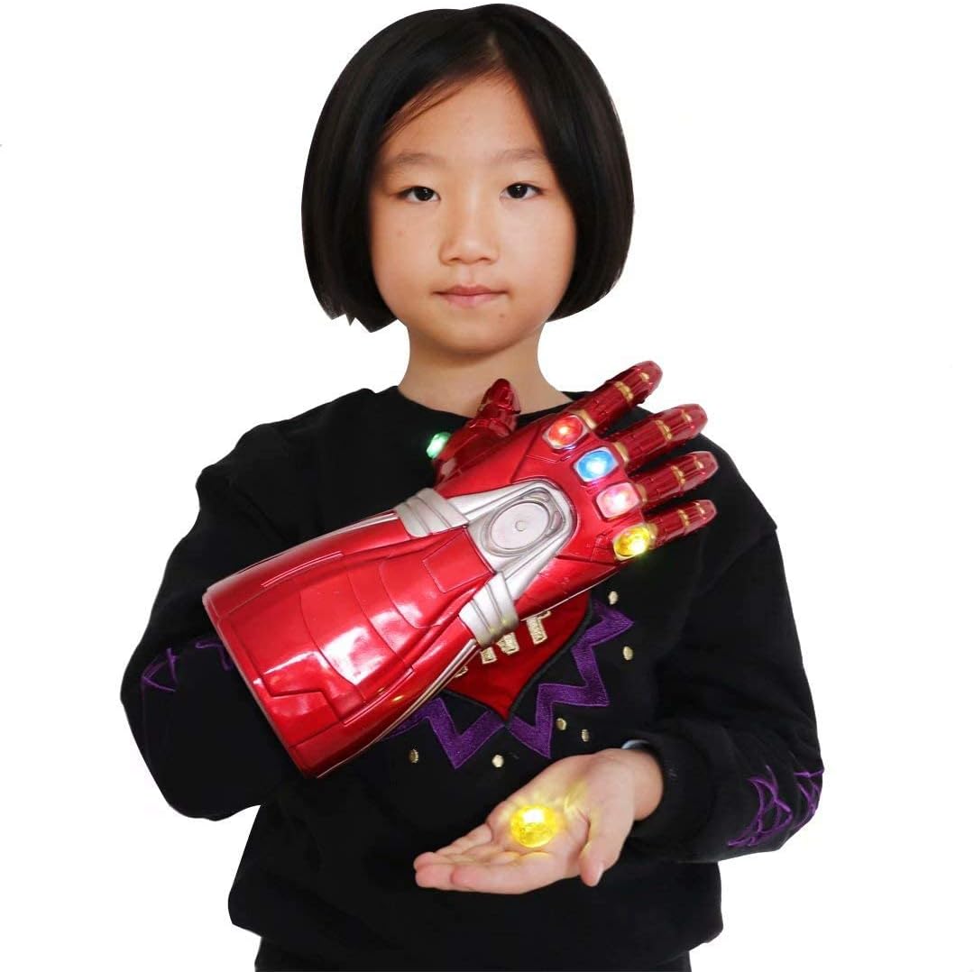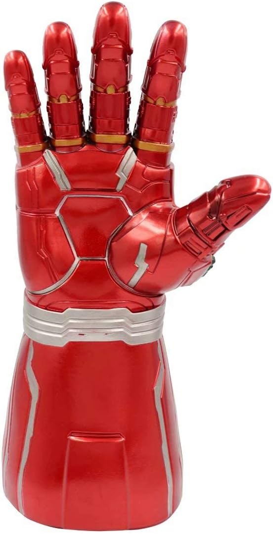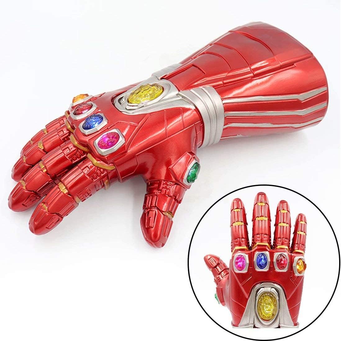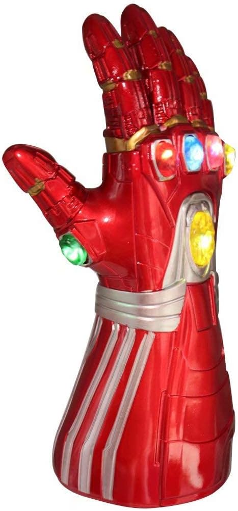 Guanti Infinity Gauntlet per adulti, gemme LED possono essere rimosse e installate, Replica Infinity Gauntlet 1:1 Materiale: PVC di alta qualità, morbido ma in buona forma, si piega il dito senza intoppi, replica Thanos guanto. Guanto in PVC che sembra molto reale, ecologico e non tossico. Puntelli realistici, ti fanno essere vivido come il personaggio Dimensioni: 35,8 x 17,2 cm, adatto per la maggior parte dei bambini e degli adulti Caratteristiche: interruttore a LED - Alimentato da 6 batterie CR927 Thium cell (incluse). Ogni gemma ha una batteria CR927 da 3 V integrata, premere le gemme, la pietra si accenderà e ha 3 modalità di illuminazione (statica, lenta, lampeggiante) tra cui scegliere Occasioni: perfetto per Halloween, Natale, regalo di compleanno, dramma, feste in maschera, giochi di finta novità, night club, cosplay, feste a tema