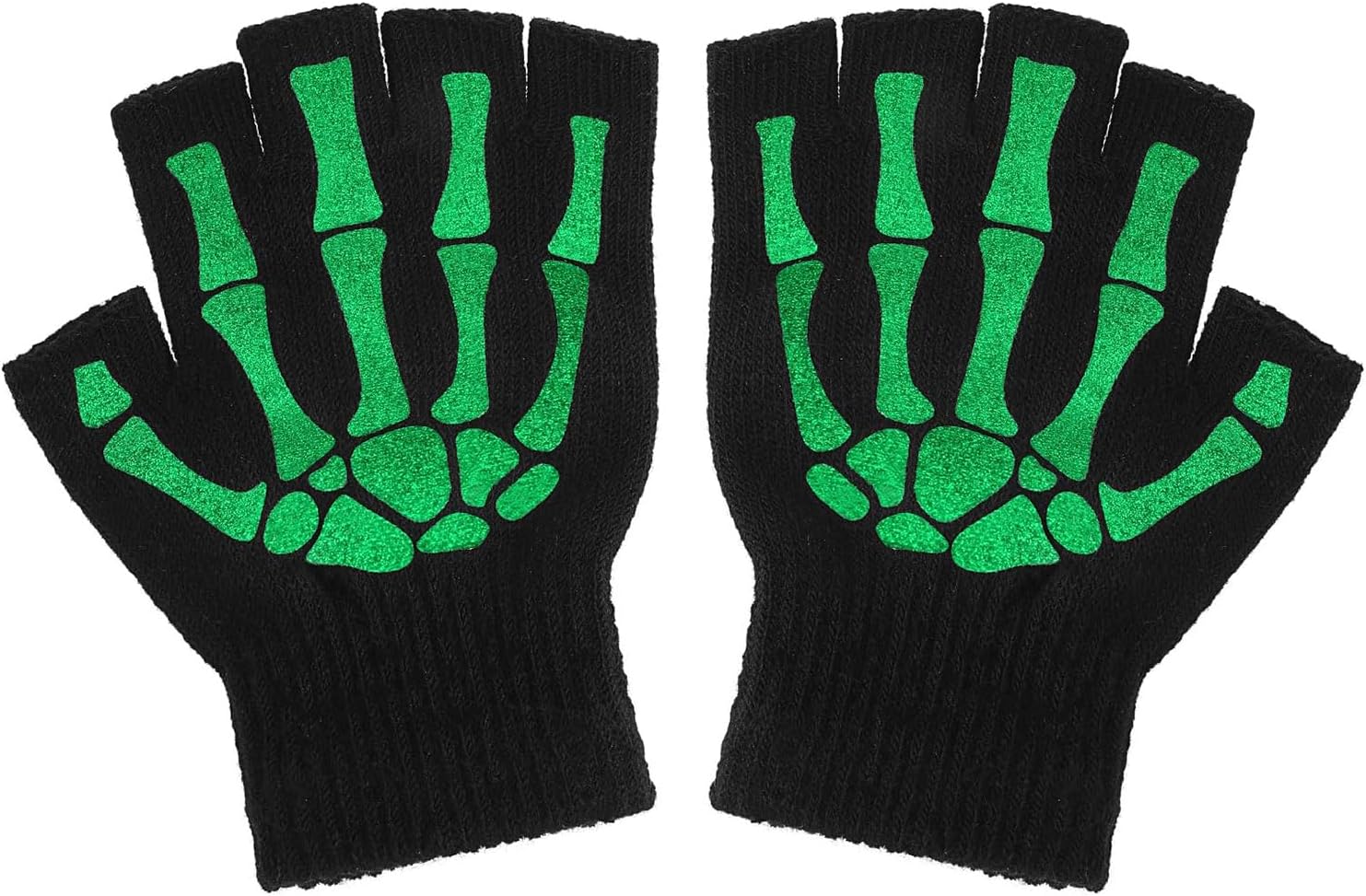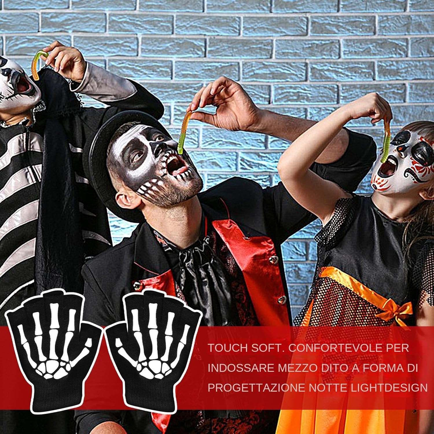 Guanti con teschio, Guanti con teschio per bambini, con mezze dita per Halloween che si illuminano al buio, con che brillano al buio per carnevale, feste in maschera, fes