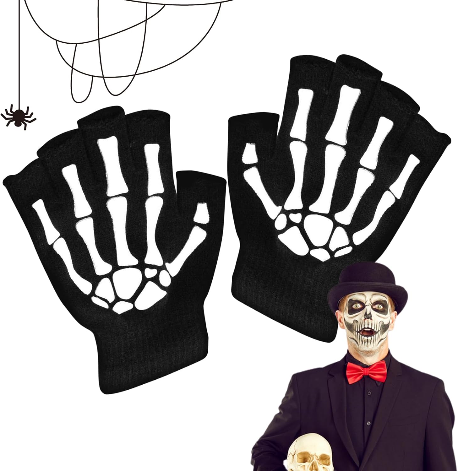 Presa macabra: realizzati con materiali di alta qualità, questi guanti da scheletro di Halloween offrono protezione e calore perfetti per le tue mani. Il design ergonomico garantisce una perfetta al palmo della mano, mentre la funzione mezzo non influirà sull'utilizzo del telefono Bagliore spettrale: solleva il tuo costume di Halloween con i nostri guanti da scheletro che possono brillare al buio di notte. per le feste festive. Grazie al meccanismo di assorbimento della luce diurna, brillerai tutta la notte Comodi e caldi: realizzati in nylon e cotone, questi guanti da scheletro di Halloween sono morbidi e delicati sulla pelle, garantendo che non siano facili da deformare o sbiadire, offrendo un comfort duraturo Regalo divertente: i nostri guanti scheletro di Halloween sono un must per una festa di Halloween agghiacciante. Il regalo per la amata: fidanzata, moglie, amica, sorella, figlia o figlio: per stupire con un tocco spettrale unico al suo costume Vasta applicazione: solleva qualsiasi outfit con questi guanti scheletro di Halloween. Adatto a varie occasioni, tra cui feste in maschera, Halloween, mascherate, carnevali e feste di Natale