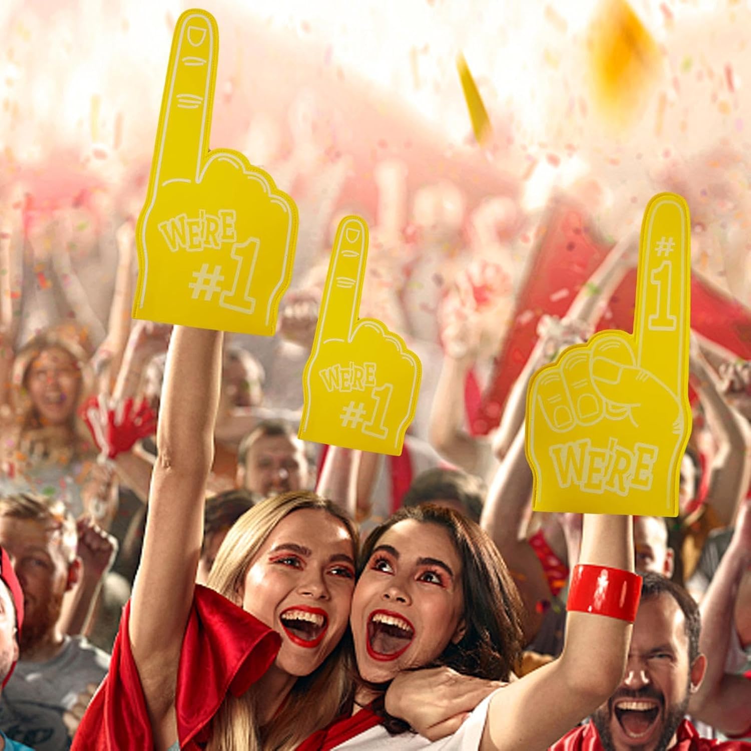 ❄ Accessorio per eventi gioiosi: crea un'esperienza indimenticabile con le nostre dita e mani in schiuma. Ispirante e attraente, aggiungi ulteriore energia al tuo evento. Affidati alla loro squisita maestria per pompare la folla e creare un'atmosfera emozionante. Aggiungi immediatamente un tocco allegro alla tua occasione! ❄ Più stili per te: con più colori tra cui scegliere, abbina il tuo stile. Le nostre dita per tifosi in schiuma sportiva sono serigrafate con inchiostro impermeabile per una vivacità di lunga durata. ❄ Ampia applicazione: fai conoscere la tua presenza a qualsiasi evento sportivo con il nostro Sport Support Finger. Fai il tifo per i tuoi giocatori e le tue squadre preferite e mostra il tuo sostegno in vari eventi sportivi. Questo accessorio è perfetto per lo spirito di ogni fan della giornata di gioco! ❄ ACCOGLIENTE E MORBIDO: questo dito in schiuma offre alcune ore di divertimento ininterrotto e supporta il tuo Realizzato in schiuma EVA di alta qualità, confortevole e resistente senza alcun disagio. ❄Vestibilità comoda: il nostro Foam Fingers Sports ti offre il massimo supporto grazie al suo design spazioso e allo spessore di 8 mm. La comoda dimensione della mano di 23 x 46 cm offre alle tue mani abbastanza spazio per muoversi, rendendolo un accessorio ideale per eventi sportivi. Con questo compagno ideale della giornata di gioco, sarai pronto a tifare comodamente e in sicurezza per te