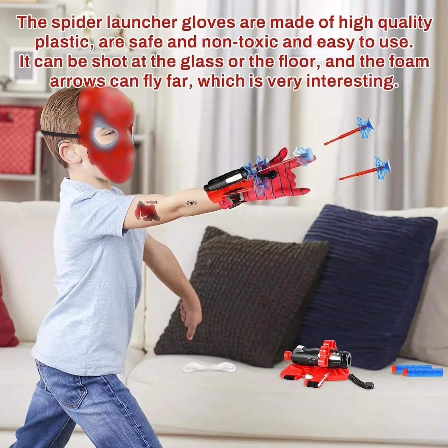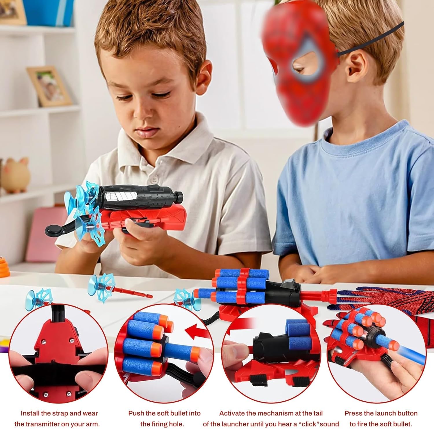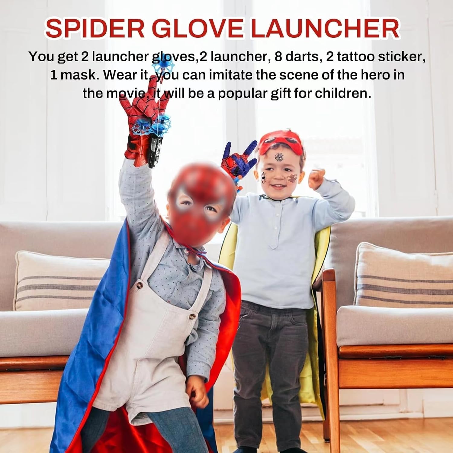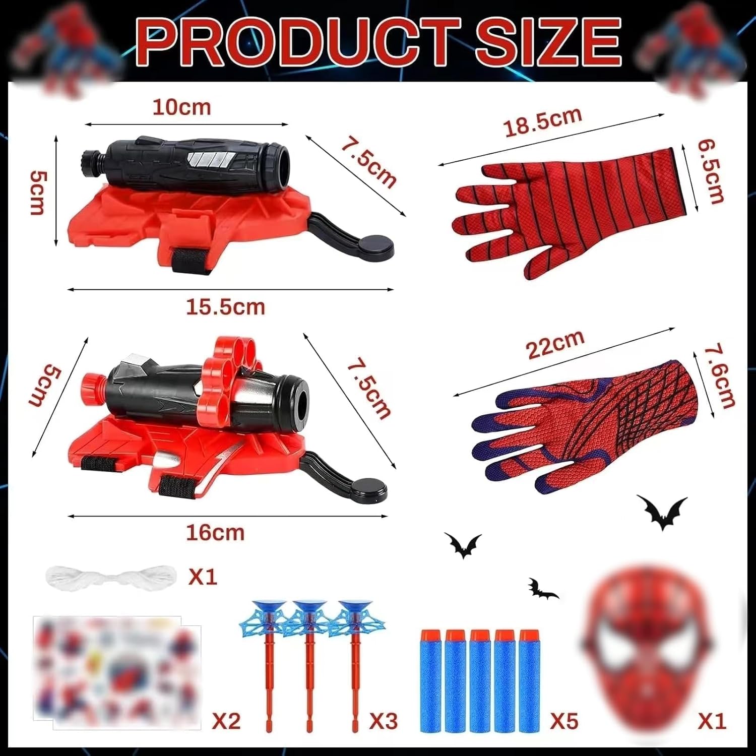 【Set da supereroe】 Il set include 2 lanciatori Spiderm, 2 guanti Spiderm, 1 maschera, 5 proiettili di spugna a punta tonda, 3 freccette a ventosa, 1 bersaglio a ripristino automatico, 2 adesivi per tatuaggi Spiderm, 1 corda e 4 cinturini da polso flessibili regolabili. I bambini possono immaginarsi come il loro supereroe online preferito. Questo è un giocattolo essenziale per gli appassionati di cinema. 【Materiale di alta qualità】 I guanti da lancio Spiderm realizzati in materiale plastico ABS sicuro, sono ben realizzati, comodi da indossare. Può essere sparato al vetro o al suolo e i dardi in schiuma possono volare lontano, il che è molto interessante. 【Facile da usare】 Devi solo installare le freccette sul trasmettitore, quindi legarle con un elastico e poi metterle in mano per usarle. Indossando i guanti Spiderm Hero, puoi imitare la scena in cui Spidem lancia la seta di ragno nel film. Lascia che i bambini vivano appieno l'emozione del cosplay. 【Giocattolo interattivo】 Il giocattolo lanciatore Spiderm offre ai bambini un fantastico mondo infantile, può aumentare l'interazione dei bambini incoraggiandoli a giochi di ruolo e stimolando la loro immaginazione per far crescere felici i bambini. 【Ampia applicazione】 Il set di giocattoli da polso è adatto per feste di Halloween, costumi, giochi di ruolo, feste di compleanno, feste a tema, serate di cinema, spettacoli teatrali, cosplay o altre occasioni. sarà un regalo popolare per i bambini.