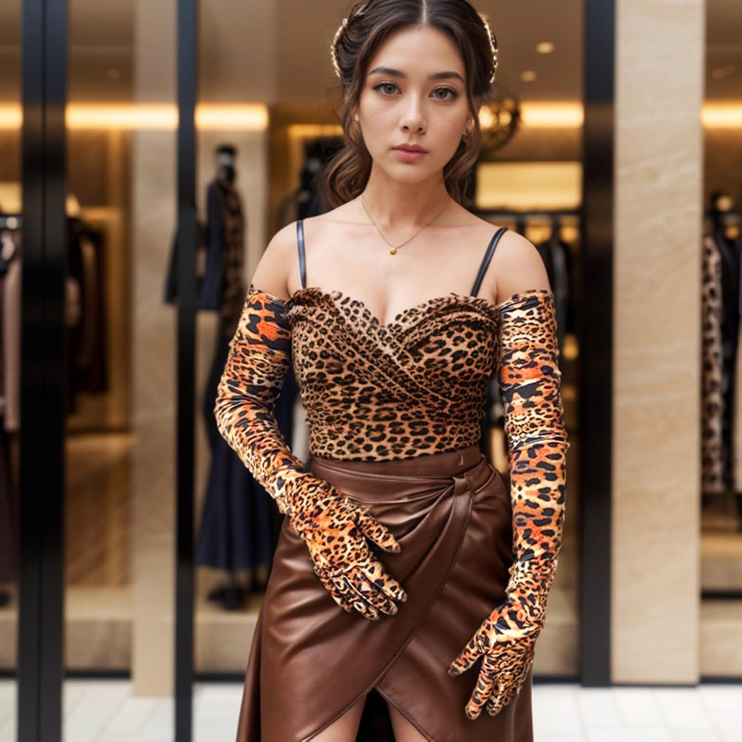 Guanti da sera per le donne con motivo animale, lunghezza al gomito, guanti per Halloween, cosplay, maniche a braccio per night club Caratteristiche: Concediti il lusso con i nostri guanti lunghi con stampa animalier, utilizza Velveted selezionato per un tocco morbido e confortevole che trasuda eleganza e sensualità. Caratterizzati da un motivo animale unico, questi guanti sono alla moda e progettati per accentuare perfettamente le silhouette del braccio. Ideale per le donne che abbracciano individualità e stili, soprattutto quelle appassionate di feste ed eventi sociali Per occasioni come cene, feste e balli, questi guanti aggiungono fascino e moda a qualsiasi outfit. Migliora la tua collezione di accessori con questo capo di abbigliamento esclusivo, combinando moda senza tempo con bordi moderni, rendendolo ideale per varie occasioni. Specifiche tecniche: Dimensioni del prodotto: circa Lunghezza: 70 cm. Componente: Velluto Tipo: 2 tipo facoltativo come mostrato nelle immagini La confezione include: 1 paio di guanti lunghi. Nota: Considerare un margine di errore di 1-2 cm dovuto alla misurazione manuale. A causa delle differenze tra i diversi monitor, l'immagine potrebbe non riflettere esattamente il colore dell'articolo.