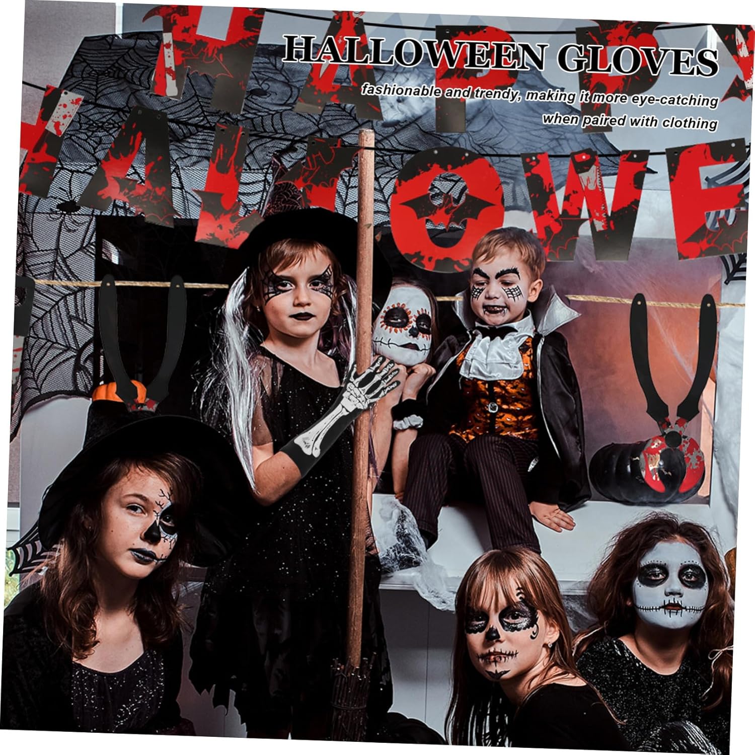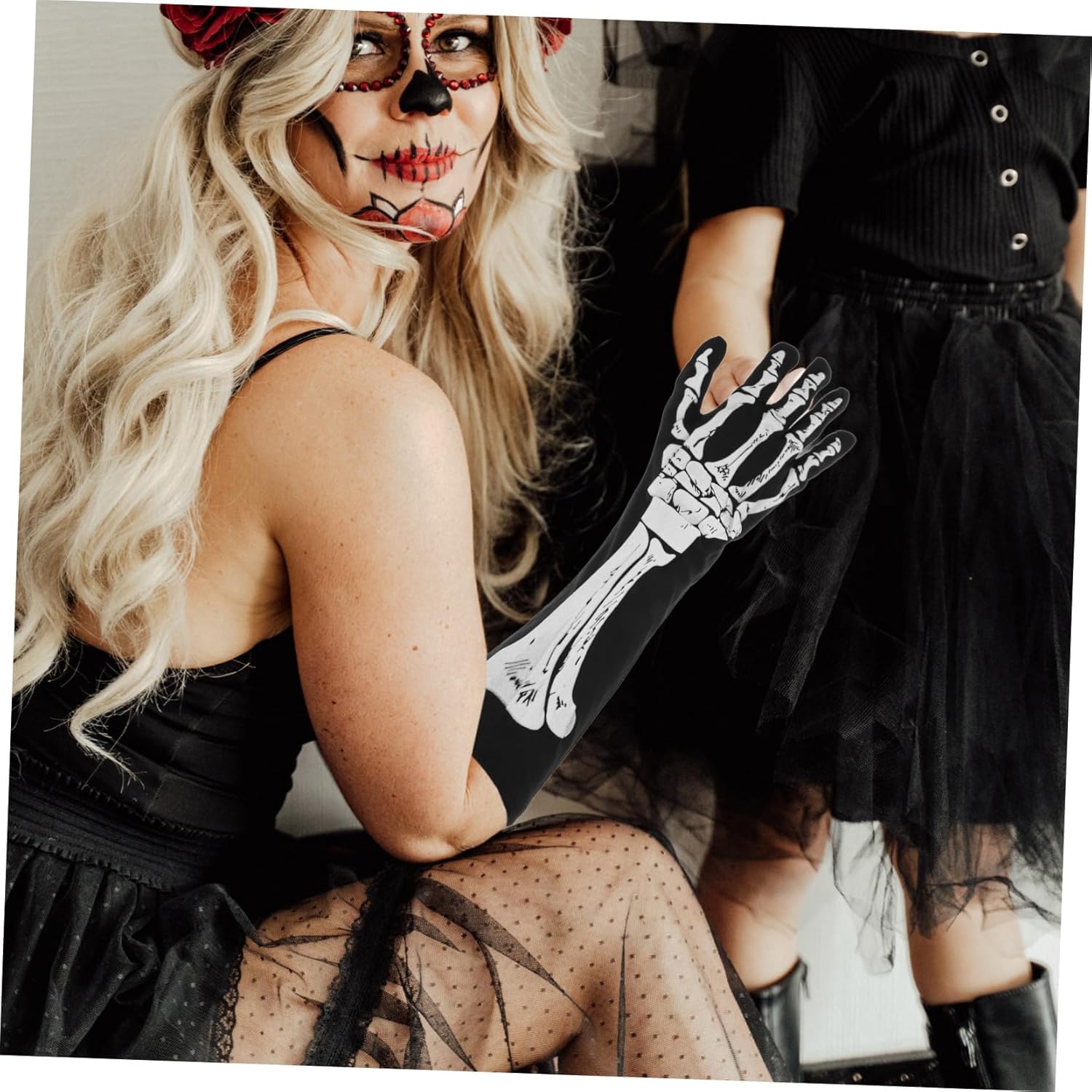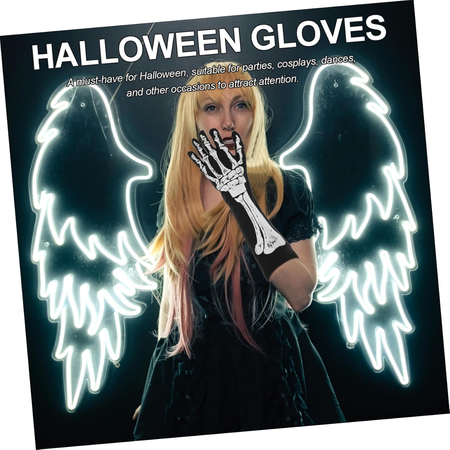 Guanti a tema Halloween - I motivi scheletrici sui guanti sono unici e accattivanti, perfettamente in linea con il tema Halloween, Decorazioni per feste di Halloween Oggetti di scena per costumi cosplay - I guanti sono disegnati con un motivo scheletro, creando un aspetto terribile e raccapricciante che sicuramente spaventerà i tuoi amici, Guanti cosplay Guanti di Halloween - I guanti di Halloween sono elastici e non attillati, adatti per essere indossati a lungo, guanti decorativi Guanto - l'oggetto di Halloween è un'idea regalo unica per le persone che amano Halloween o il cosplay ecc., Guanti per costumi di Halloween Guanti per costumi - versatili, adatti a entrambi uomini e donne, adatti per Halloween, cosplay ecc., guanti per costumi