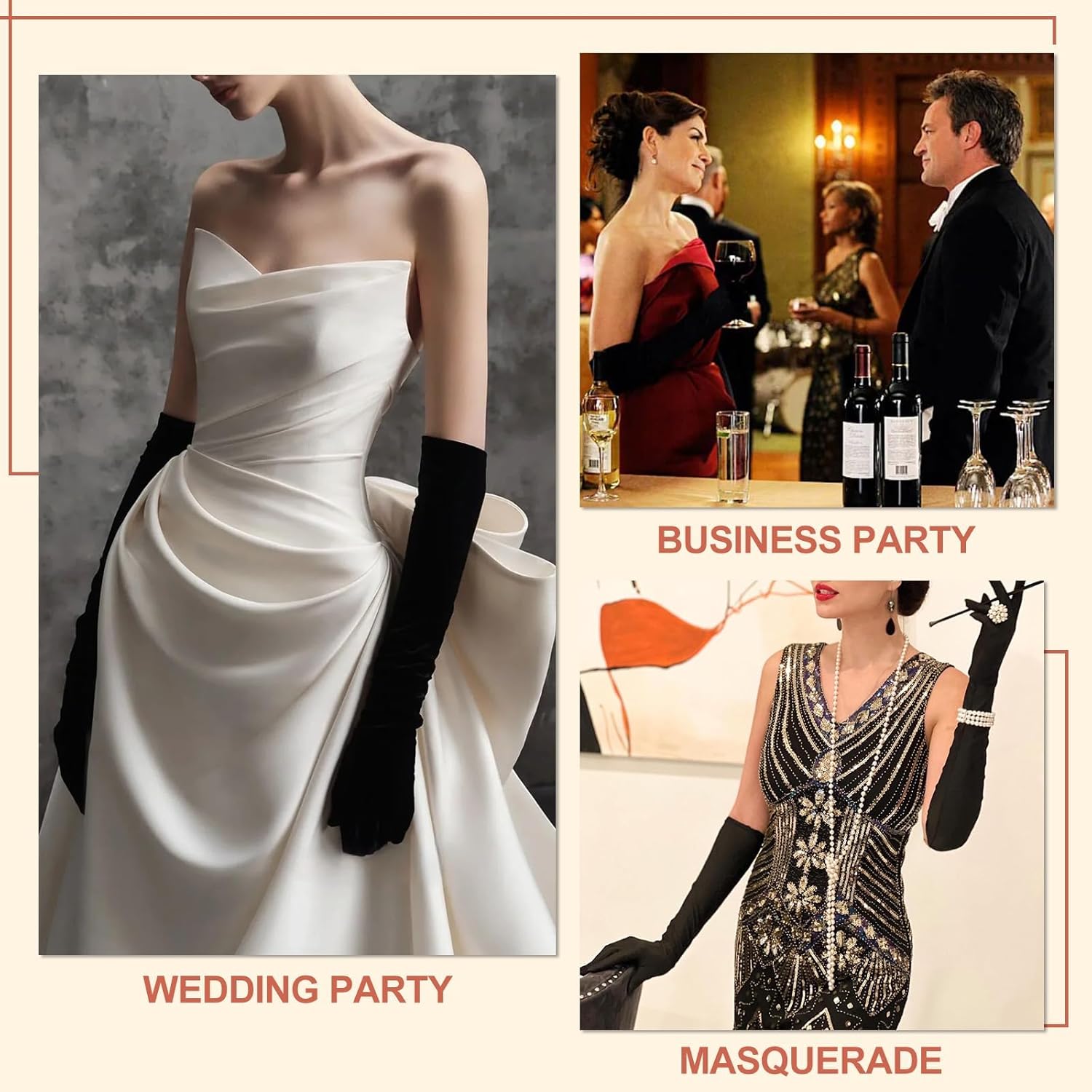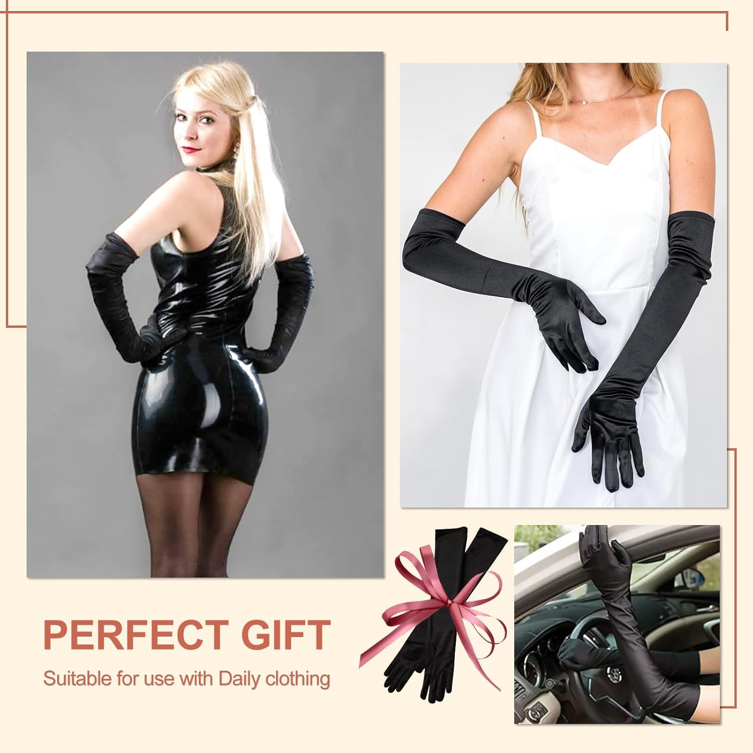 Guanti Lunghi, 1 Paio di Guanti Eleganti da Donna, Guanti da Sera Classici in Raso, Guanti Anni '20 per Festa dell'Opera Classica Costume Carnevale Halloween...