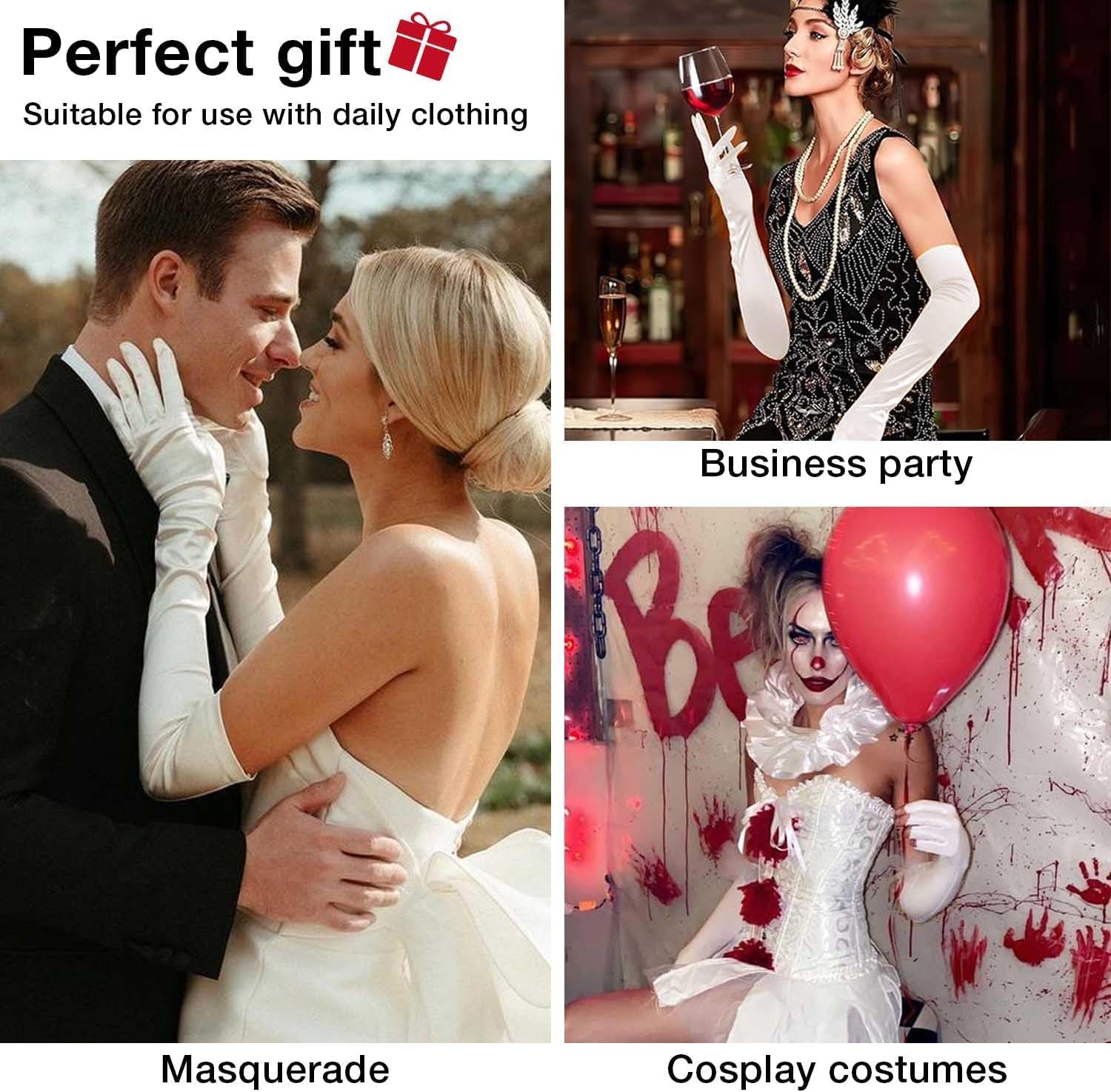Guanti Lunghi in Raso, 1 Paio di Guanti Guanti da Sera Classici Elastici da Donna Guanti in Seta Guanti Stile Anni '20 per Opera, Ballo in Maschera, Costumi Cosplay, Feste di Halloween
