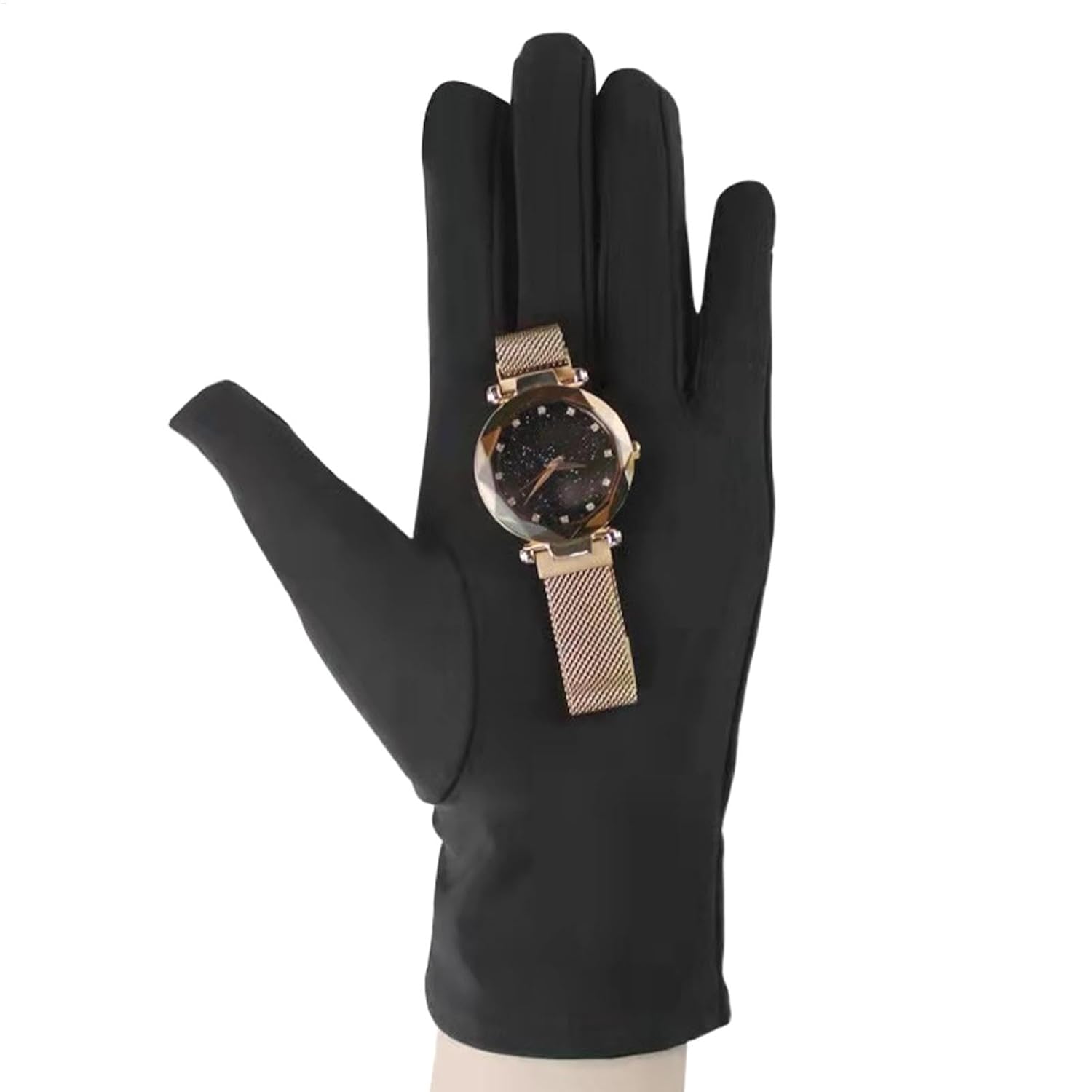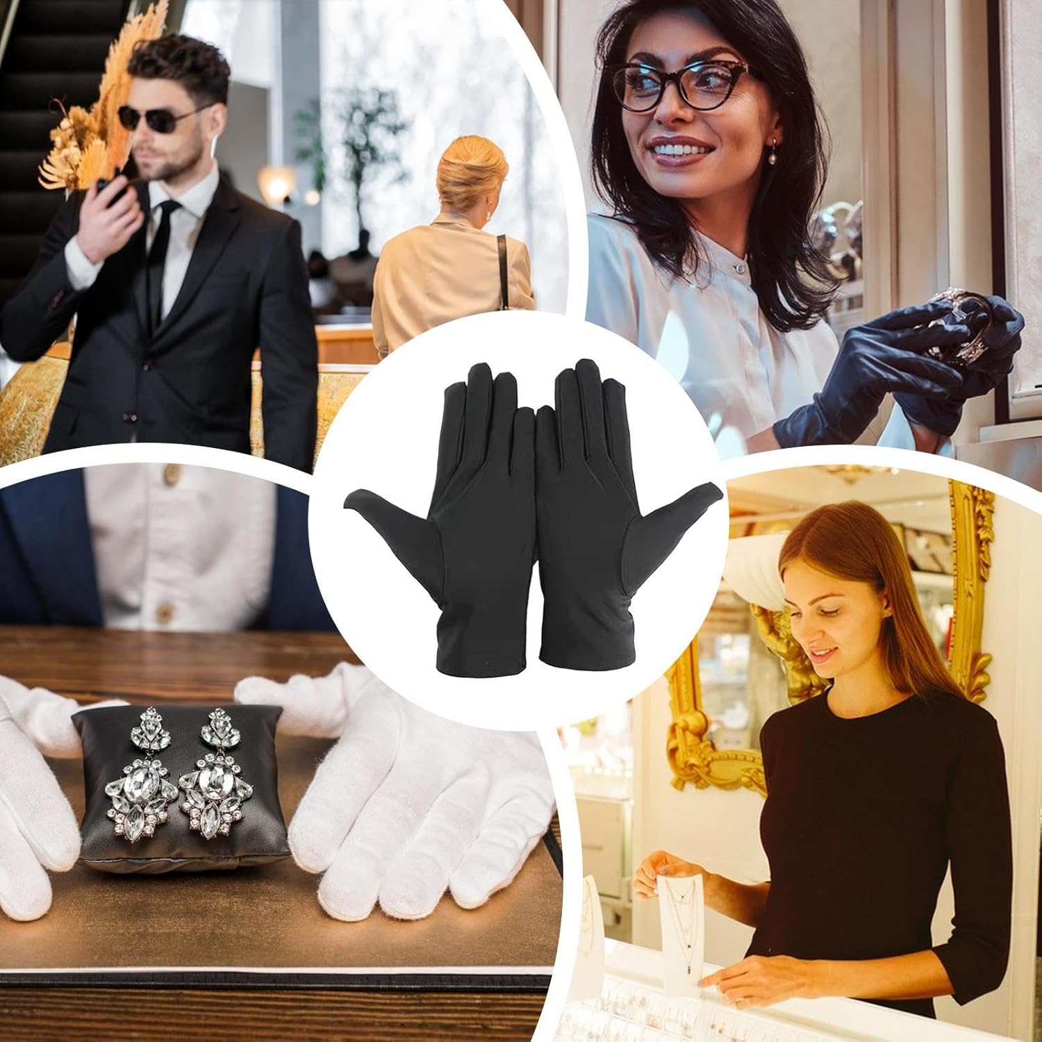 Stile migliorato: migliora la tua moda con questi guanti eleganti che mostrano un design nero moderno, aggiungendo un tocco di raffinatezza per migliorare la tua attrattiva e sicurezza in sé. Mantengono la brillantezza dei gioielli: accuratamente progettato per proteggere da digitali e graffi, evitando che lo sporco comprometta i riflessi dei tuoi gioielli, assicurando che rimanga in condizioni vergini. Grande traspirazione: la costruzione in spandex in questi guanti per gioielli garantisce una buona elasticità e traspirabilità, mantenendo le mani asciutte e comode tutto il giorno Scena adatta: Perfetto non per esporre orologi e gioielli, questi guanti possono essere utilizzati anche durante le faccende domestiche o al lavoro, e anche quando i guanti cerimoniali o letterali mostrano guanti Craftmanship elaborata: goditi il comfort con i dettagli squisiti di questi guanti e i bordi arrotondati, garantendo una vestibilità comoda ed elegante tutto il giorno