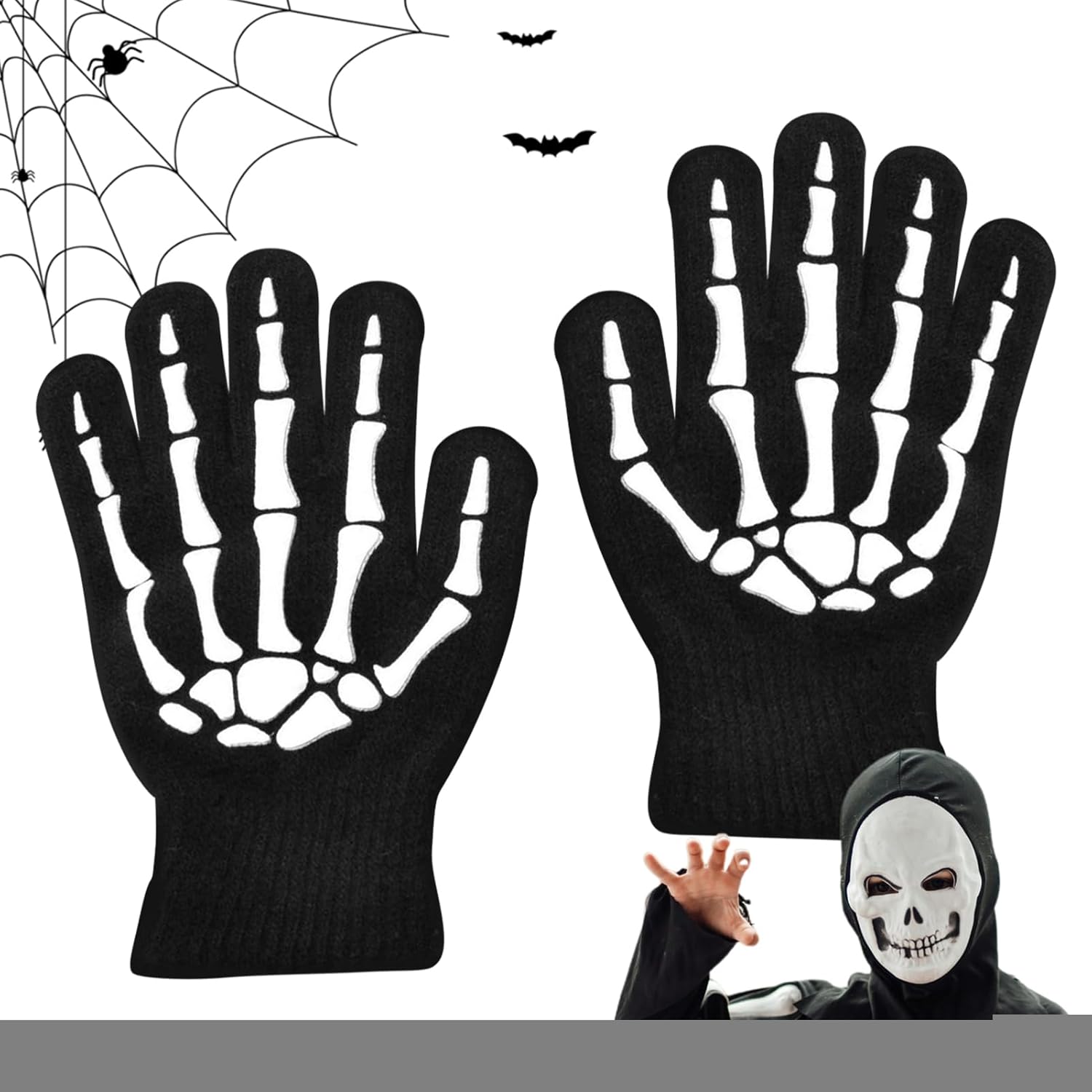 Aggiungi fascino ai tuoi costumi cosplay: questi guanti da scheletro per bambini sono perfetti per i tuoi costumi di Hween e cosplay con il loro design a scheletro nero. Aggiungi un ulteriore livello di inquietudine alle tue feste in costume e migliora il tuo gioco di travestimento I bambini adoreranno questi guanti macabri: lascia che i tuoi bambini esplorino l'oscurità con i nostri guanti che si illuminano al buio. Il design spettrale del teschio aggiunge un divertente tocco di Hween a qualsiasi escursione dolcetto o scherzetto Stile : migliora il look del tuo bambino con questi guanti scheletrici alla moda per bambini. Sapientemente realizzati utilizzando una miscela di nylon e cotone, offrono calore e comfort perfetti. Resistenti alla deformazione e scolorimento, sono facili da pulire e mantenere. Lavare a mano con acqua a bassa temperatura e asciugare all'aria per mantenerli morbidi e mantenere il design come nuovo Design flessibile: progettati per bambini dai 5 ai 12 anni, questi guanti scheletrici offrono una vestibilità sicura e flessibile sul palmo della mano, ideale per ragazzi e ragazze che necessitano di facilità di movimento e comfort durante il gioco o il clima freddo Vasta applicazione: perfetti per la corsa, l'esercizio fisico, l'escursionismo, il ciclismo all'aperto e lo sci, questi guanti offrono calore e comfort, garantendo che le mani del tuo bambino rimangano protette in varie attività