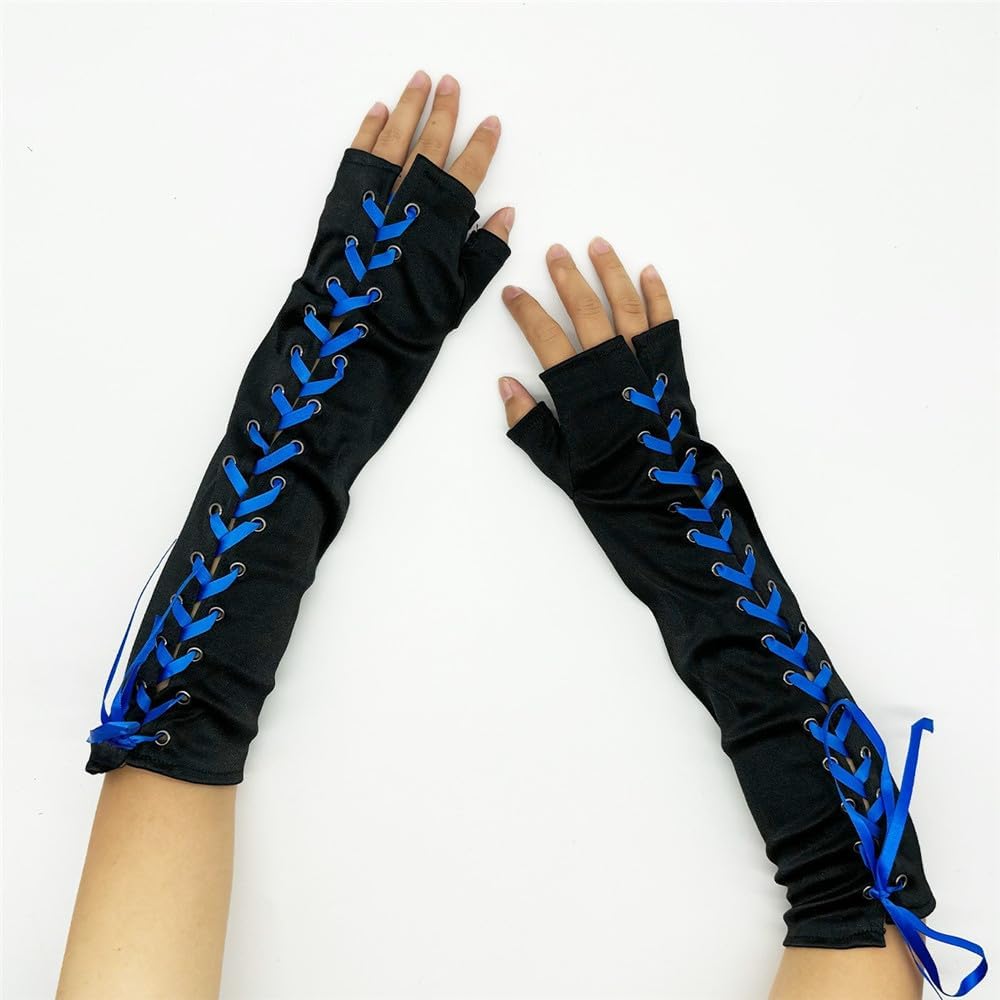 Guanti senza dita con lacci, da donna, per opera, matrimoni, opere, serate, feste, banchetti