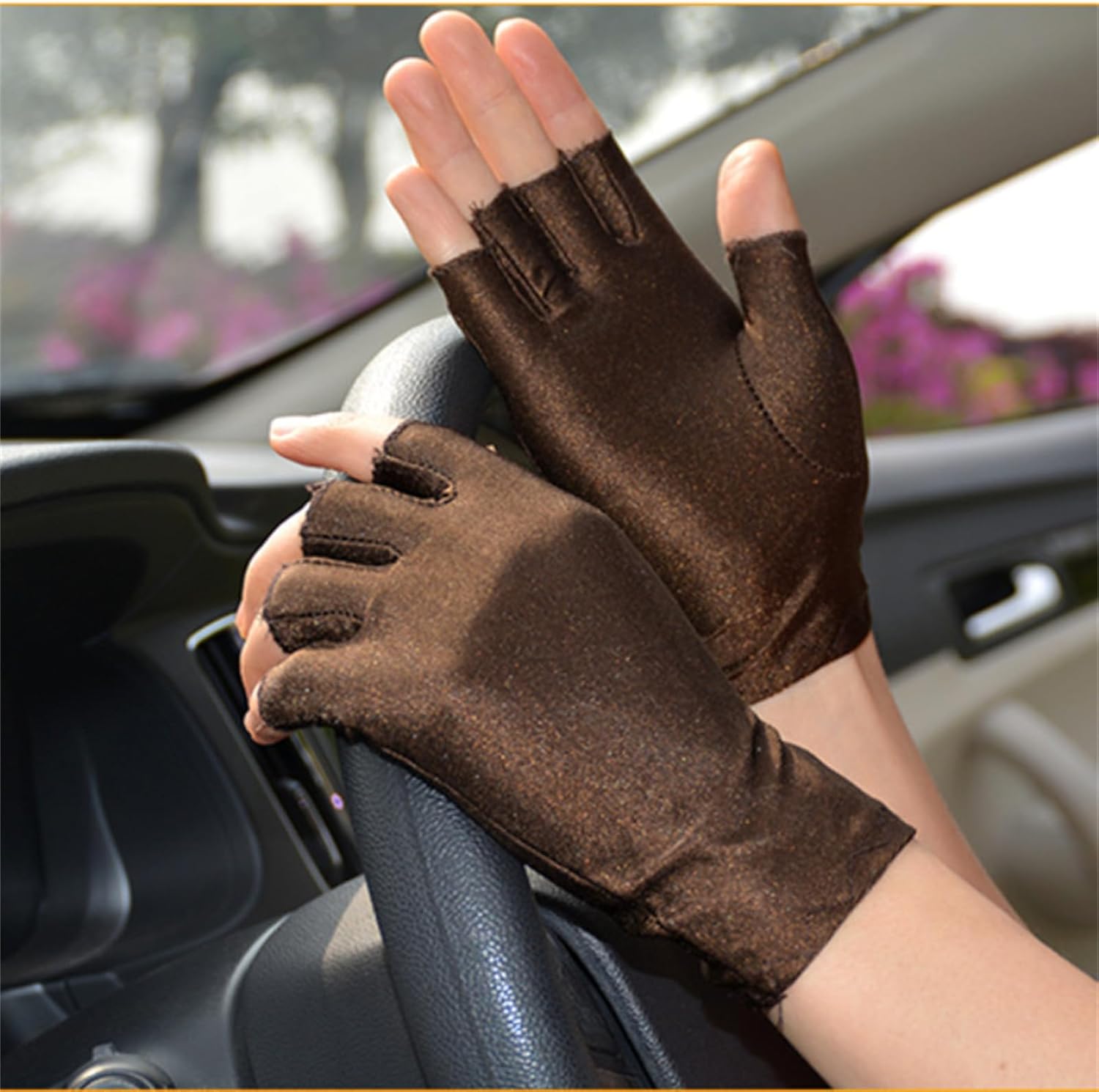 Sperimenta una protezione solare superiore con i nostri guanti senza dita che proteggono le tue mani dai raggi del sole fornendo comfort e traspirabilità. Adatto per adulti che trascorrono lunghe ore alla guida o attività all'aperto, in particolare per le donne che cercano una protezione per le mani elegante ma funzionale. Realizzati in spandex, questi guanti da ciclismo a mezze dita offrono una vestibilità elastica e traspirante che assicura che le tue mani rimangano comode e fresche durante l'uso prolungato. Questi guanti solari senza dita da donna completano vari stili di moda, rendendoli un accessorio essenziale per chiunque desideri unire funzionalità ed eleganza. Ampiamente usato per la guida, il ciclismo, gli sport all'aria aperta, la corsa, il ciclismo, la pesca, il golf, gli spostamenti quotidiani o la nail art. Questi guanti solari senza dita si integrano perfettamente in qualsiasi stile di vita attivo.