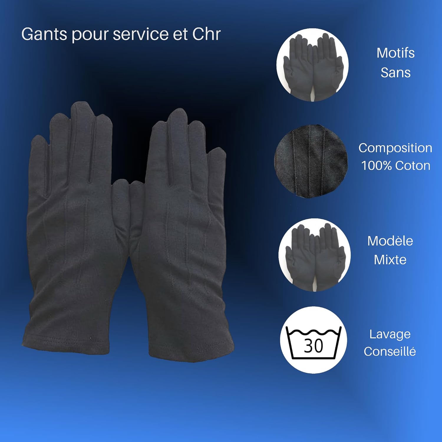 Guanti Servizio Ufficiale Cotone, Nero , 0