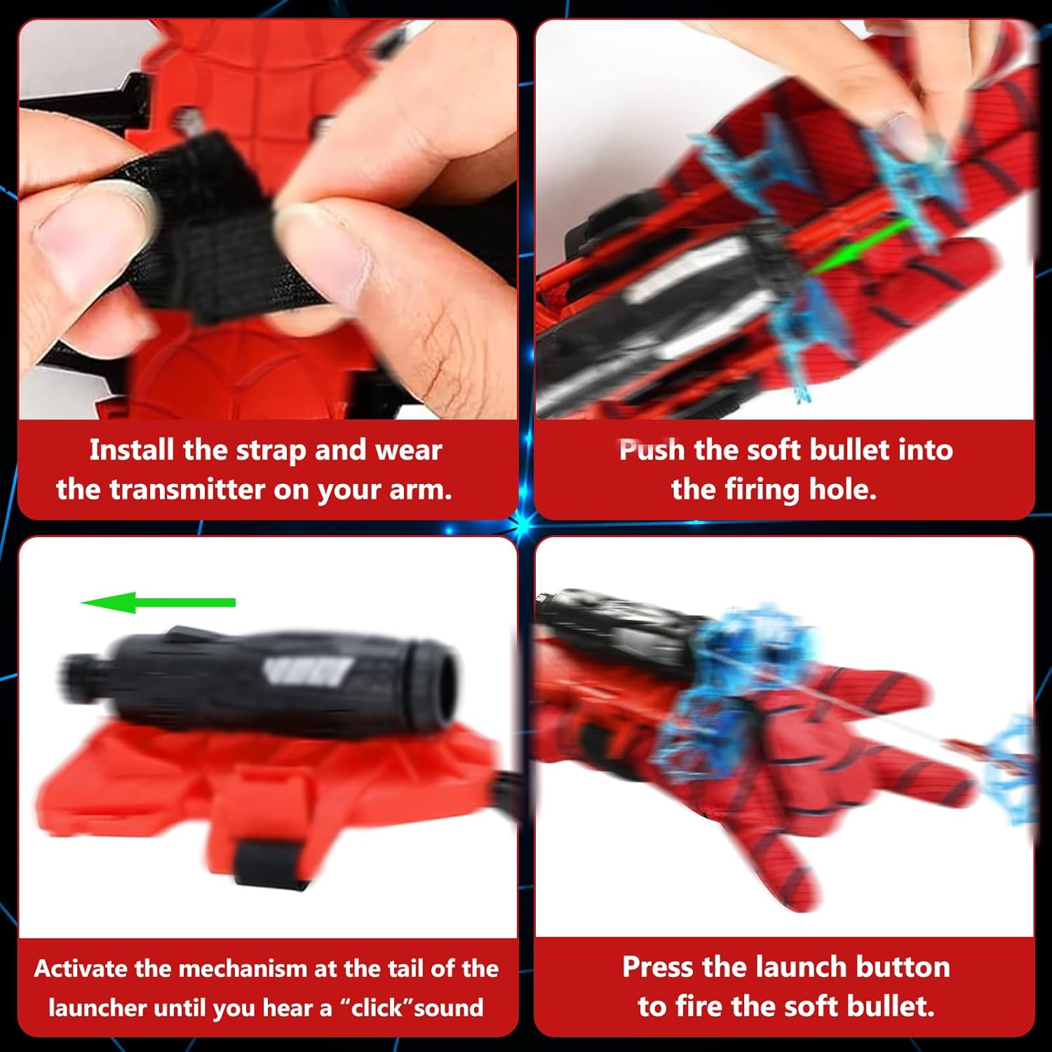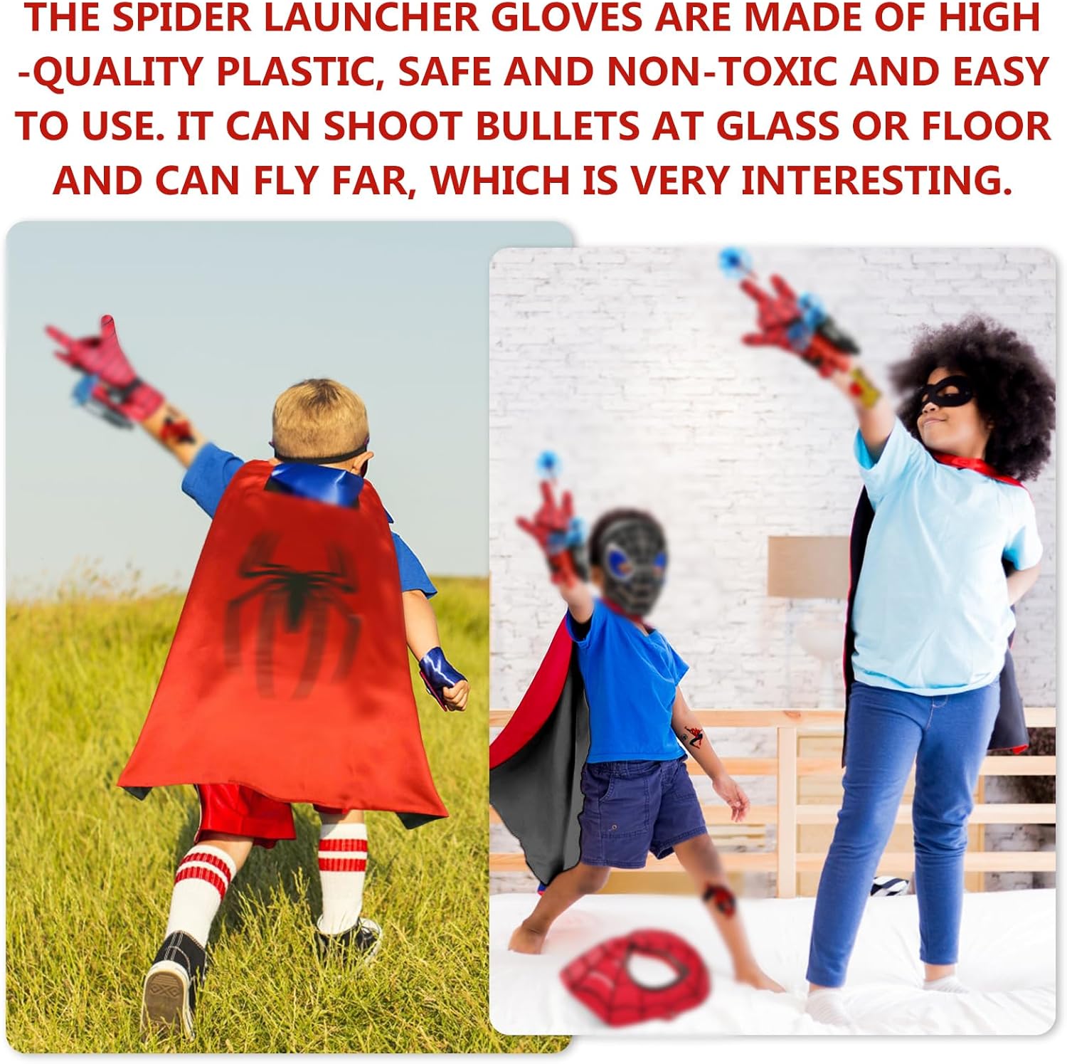 【Giocattolo Lanciatore Spiderm】 Il set include 2 lanciatori Spiderm, 2 guanti Spiderm, 1 maschera, 5 proiettili di spugna a punta tonda, 3 freccette a ventosa, 1 bersaglio a ripristino automatico, 2 adesivi per tatuaggi Spiderm, 1 corda e 4 cinturini da polso flessibili regolabili. Questo giocattolo da supereroe porta i bambini in un mondo di immaginazione e avventura, così potranno godersi appieno il divertimento di essere un eroe. 【Materiali di alta qualità】 Il lanciatore Spiderm è realizzato in plastica di alta qualità, robusto e durevole, ben realizzato e comodo da indossare. I bambini possono immaginarsi come il loro supereroe online preferito. Questo è un giocattolo essenziale per gli appassionati di cinema. 【Stimola l'immaginazione e la creatività】 Con questi guanti da lancio Spiderm, i bambini possono ricreare scene iconiche di Spiderm, ispirate ai loro eroi preferiti del film. Può aumentare l'interazione dei bambini incoraggiandoli a giochi di ruolo e stimolando la loro immaginazione, portando a uno sviluppo felice. 【Facile da usare】 È molto facile da usare, devi solo installare le freccette sul trasmettitore, quindi legarle con un elastico e poi usarle sulla mano per usarle. Sono sicuri da usare e possono essere sparati su superfici di vetro o pavimenti dove le ventose aggiungono divertimento. 【Ampia applicazione】 Questi lanciatori di eroi sono l'aggiunta perfetta ai costumi cosplay, ideali per feste di compleanno, eventi a tema, serate di cinema, giochi quotidiani o qualsiasi altra occasione. sarà un regalo popolare per i bambini.