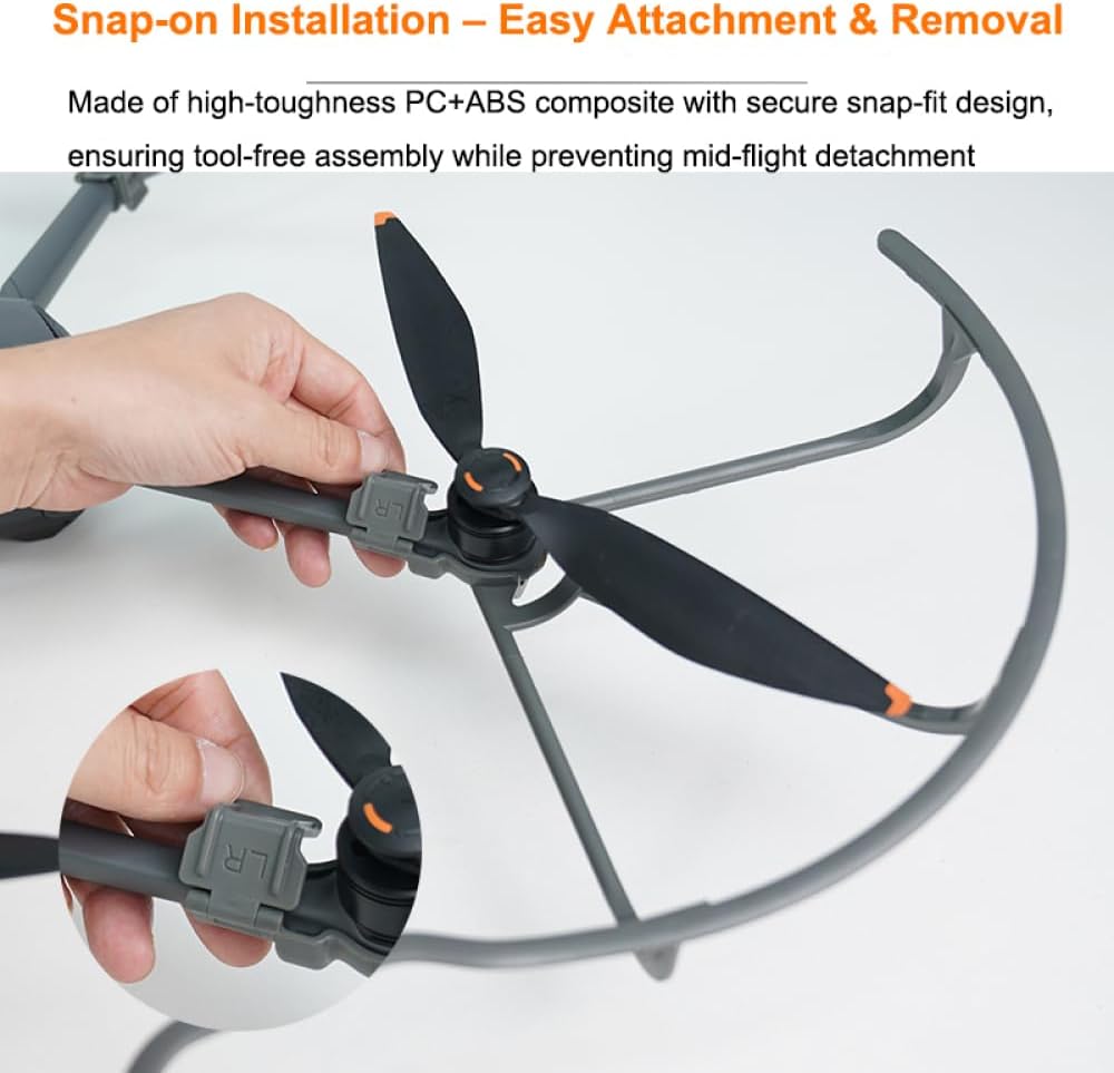 Protezione di sicurezza: Il design semi-chiuso personalizzato per il Mavic 4 Pro impedisce efficacemente all'elica di entrare in contatto con persone o ostacoli, riducendo il rischio di lesioni o danni agli oggetti circostanti Resistenza agli urti: Materiale composito PC+ABS ad alta resistenza, eccellente tenacità, non facile da deformare o rompere in caso di impatto, riduce efficacemente il rischio di danni durante il volo Design integrale e robusto per una maggiore stabilità: gli anelli di protezione anteriori e posteriori possono essere collegati come un tutt'uno per formare una struttura a fortezza semi-chiusa, che migliora la rigidità complessiva, riduce le vibrazioni di volo e fornisce una protezione totale contro le collisioni Montaggio a scatto per una facile installazione e rimozione: Il design a scatto consente l'installazione e la rimozione senza l'ausilio di attrezzi, assicurando un'installazione sicura senza il rischio di cadere nel mezzo Leggero e ad alte prestazioni: Pur mantenendo una forte protezione, il design leggero assicura un impatto minimo sull'alimentazione del drone e sulla durata della batteria, mantenendo così la flessibilità e la stabilità di volo