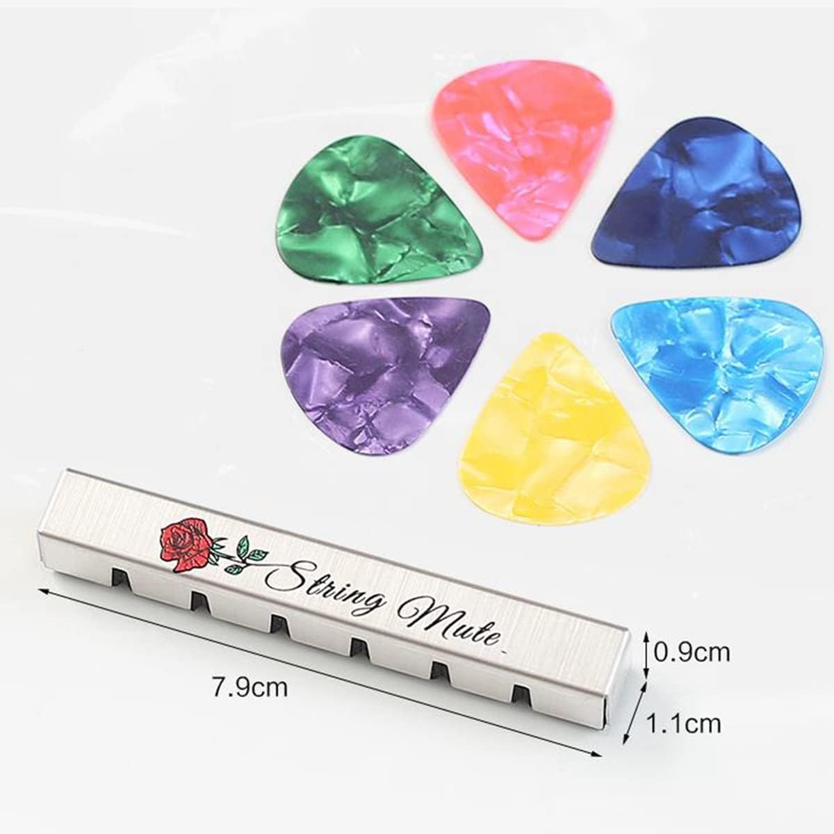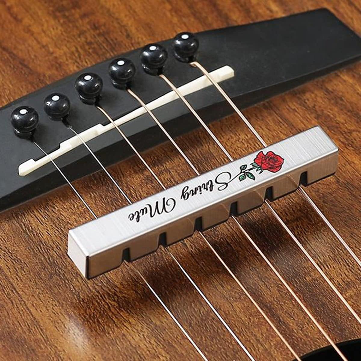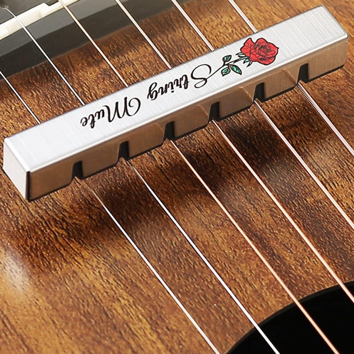 È realizzato in acciaio inossidabile di alta qualità e materiale EVA. Questo muto per chitarra è pratico, può ridurre efficacemente il volume della chitarra e permetterti di esercitarti meglio con la chitarra disturbare le altre persone con un volume eccessivo. Con squisito motivo a rose, questo muter per chitarra può essere una decorazione per la tua amata chitarra per renderla più e . È adatto a tutte le chitarre acustiche/classiche a 6 corde. Un ottimo strumento di aiuto per chitarristi o bassisti.