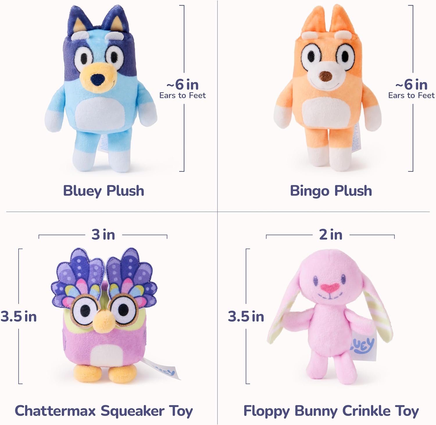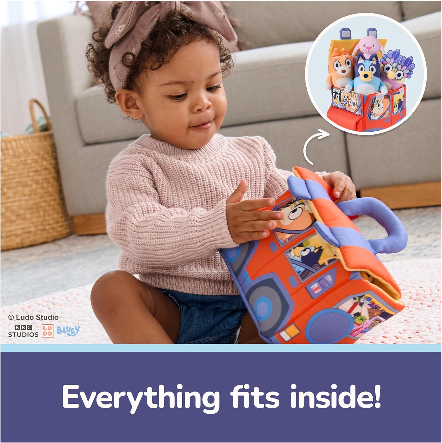 Bluey Plush Playset: Bluey e Bingo sono qui per giocare. Questo morbido set di peluche presenta l'auto di famiglia di Bluey, che conserva perfettamente 4 giocattoli sensoriali morbidi: mini peluche Bluey e Bingo, un giocattolo Chattermax e un peluche sensoriale a forma di coniglietto floppy Morbido, compatto e facile da pulire: questo set Bluey presenta dettagli ricamati e stampati per garantire un gioco sicuro da 0 in su. È anche fatto per i genitori in movimento: il veicolo familiare Heeler si trasforma in una custodia morbida per un facile stoccaggio Bluey Toys & Gifts per tutte le età: esplora la collezione GUND Bluey per innumerevoli modi di giocare con il mondo di Bluey. I nostri giocattoli sensoriali e giocattoli per bambini sono simpatici regali e decorazioni per l'asilo nido per bambini e oggetti da collezione per bambini a cuore Abbracci di qualità: i nostri pluripremiati orsi e giocattoli sono apprezzati dagli amanti degli animali di tutto il mondo, noti per la loro qualità ineguagliabile e design abbracciabili. Dai giocattoli per bambini agli adulti di tutte le età, i giocattoli GUND sono fatti per essere giocati, raccolti e abbracciati Peluche premier: come uno dei primi produttori di orsacchiotti americani, GUND produce animali di peluche e giocattoli morbidi unici e classici da 125 anni. Oggi portiamo con orgoglio questa eredità e sosteniamo i nostri giocattoli, conosciuti in tutto il mondo per la loro qualità e innovazione Contenuto della confezione: 1 set di peluche GUND Bluey da 5 pezzi, sacchetto in polietilene Coperto dall"impegno di Spin Master Care. Vedi sotto per maggiori dettagli