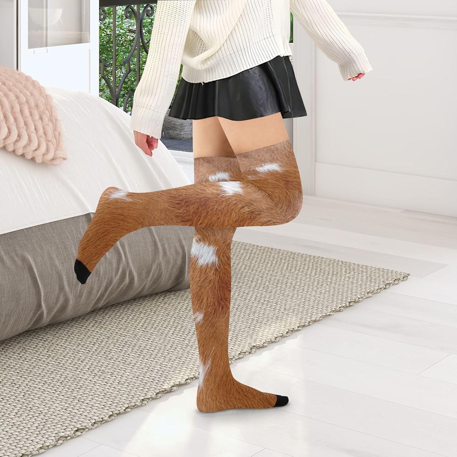 Dimensioni più adatte: dimensioni piastrellate: 10,2 x 58,4 cm (elevata elasticità, ci sarà un errore di 1-3 cm nell'elastico). Poiché le calze sopra il ginocchio da donna rimangono elastiche, sono di 1 taglia e si adattano alla maggior parte delle figure! Materiale: i calzini da donna morbidi sono realizzati con materiali, 93% nylon e 7% spandex, comodi e traspiranti, lisci e delicati sulla pelle, adatti per quattro stagioni. Che si tratti di inizio primavera, autunno fresco, inverno freddo o una casa climatizzata in estate, queste calze scalderanno sempre le gambe e aggiungeranno fascino al tuo fascino. Un capo indispensabile nel guardaroba di ogni donna: questo è un accessorio elegante per la donna avventurosa e multi-tasking. Questi eleganti pezzi si estendono dal ginocchio al ginocchio e fino al centro della coscia. per vestirsi casualmente, formalmente, per lavoro, matrimoni, feste, cene e molto altro ancora. È altrettanto elegante in gonne, abiti o pantaloncini. Eleganti, chic e confortevoli: i calzini sopra il ginocchio da donna lo rendono conforme alle gambe mantenendoti comodo e fresco per tutto il giorno. Abbinali a scarpe da ginnastica, décolleté, tacchi o stivali alti fino alla coscia per un look lusinghiero e sexy. Vestito per tutte le stagioni, civettuolo ma elegante. Il regalo: i calzini da donna sono il regalo per la tua donna. Prepara un regalo premuroso al tuo amante, amico e bambino durante le vacanze!