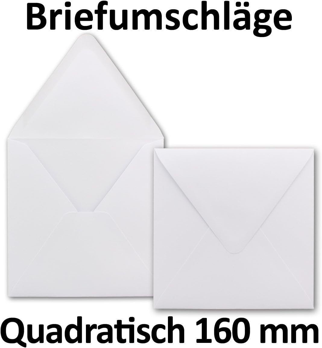 Elegante busta quadrata per occasioni speciali. Ideale per biglietti di auguri e inviti per compleanni, matrimoni, biglietti di auguri e biglietti regalo Caratteristiche: colore: bianco, grammatura carta robusta: 120 g/m² Buste quadrate, dimensioni: 160 x 160 mm (16 x 16 cm), con incollaggio a umido e gommatura, senza finestra, lembo appuntito da inumidire Superficie opaca molto piacevole al tatto, stampabile e scrivibile con qualsiasi penna Contenuto: 25 buste. Produzione e vendita dalla Germania. - GUSTAV NEUSER: i professionisti della carta e dei biglietti da oltre 100 anni