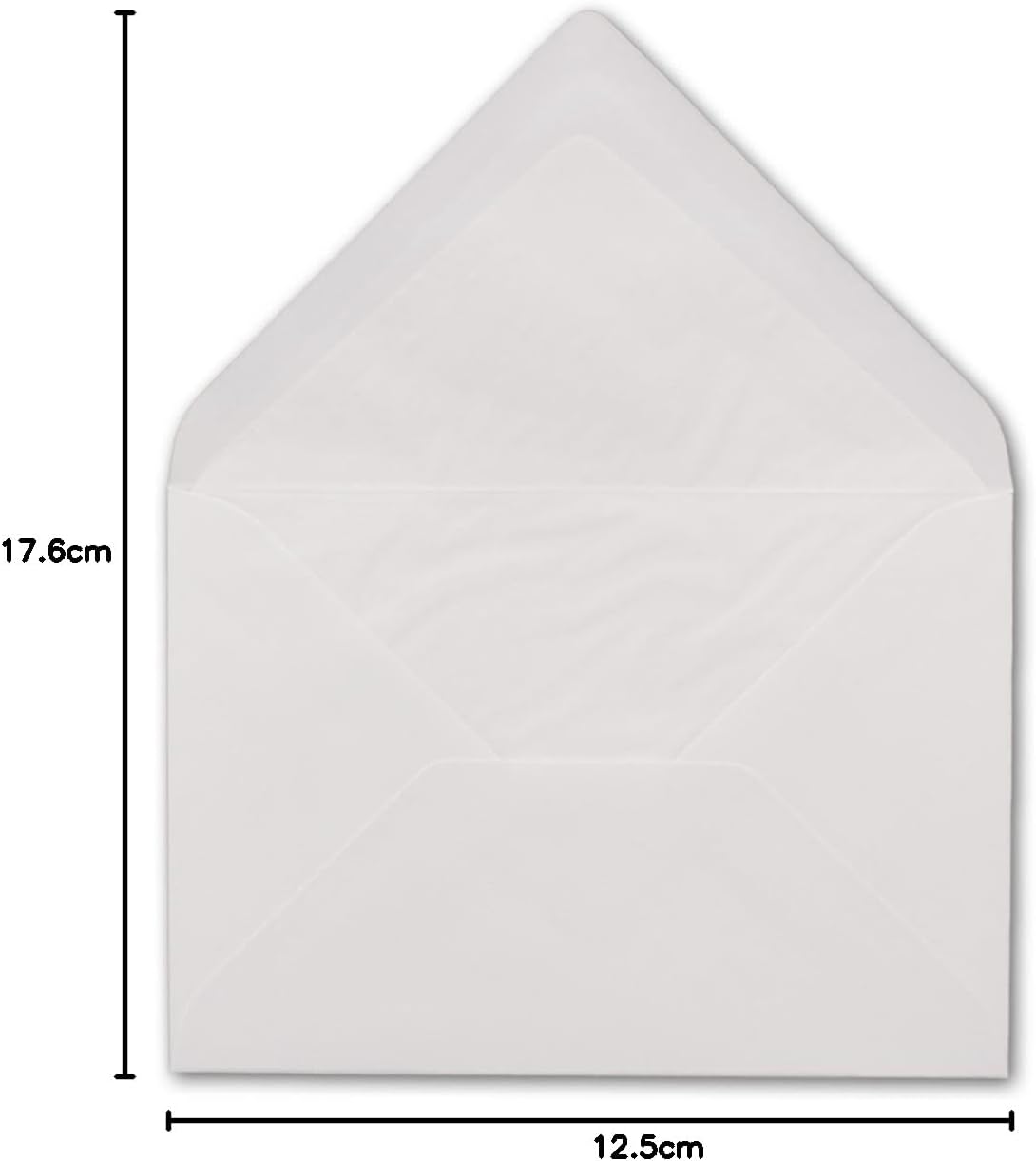 Selezionare la quantità desiderata. - Ideale per biglietti di auguri e inviti, come formato speciale per lettere e per carte regalo Colore: bianco super – Grammatura: 100 g/m² – con fodera in seta bianca. Questa rende la busta opaca e fruscia leggermente quando la si tiene le mani. Formato: DIN B6, dimensioni: 125 x 176 mm, con incollaggio a umido e gommatura, senza finestra Superficie liscia con molto piacevole al tatto Contenuto: 50 buste. Produzione e vendita dalla Germania. - NEUSER PAPIER – Il professionista della carta e dei biglietti da oltre 100 anni