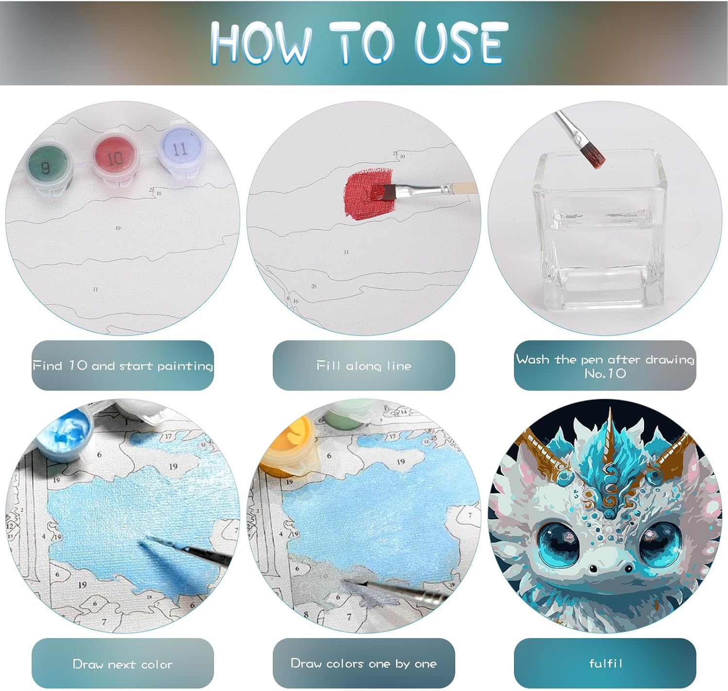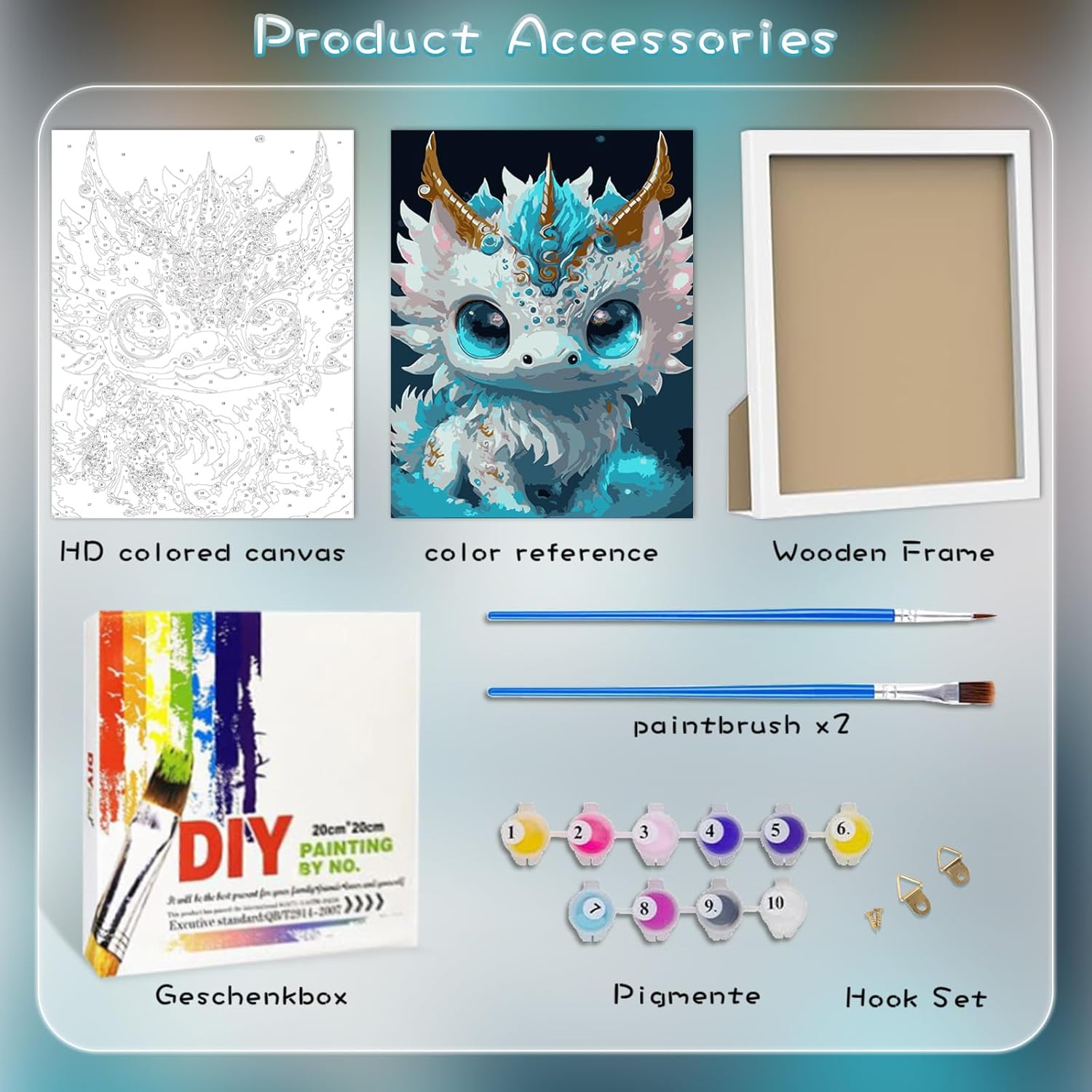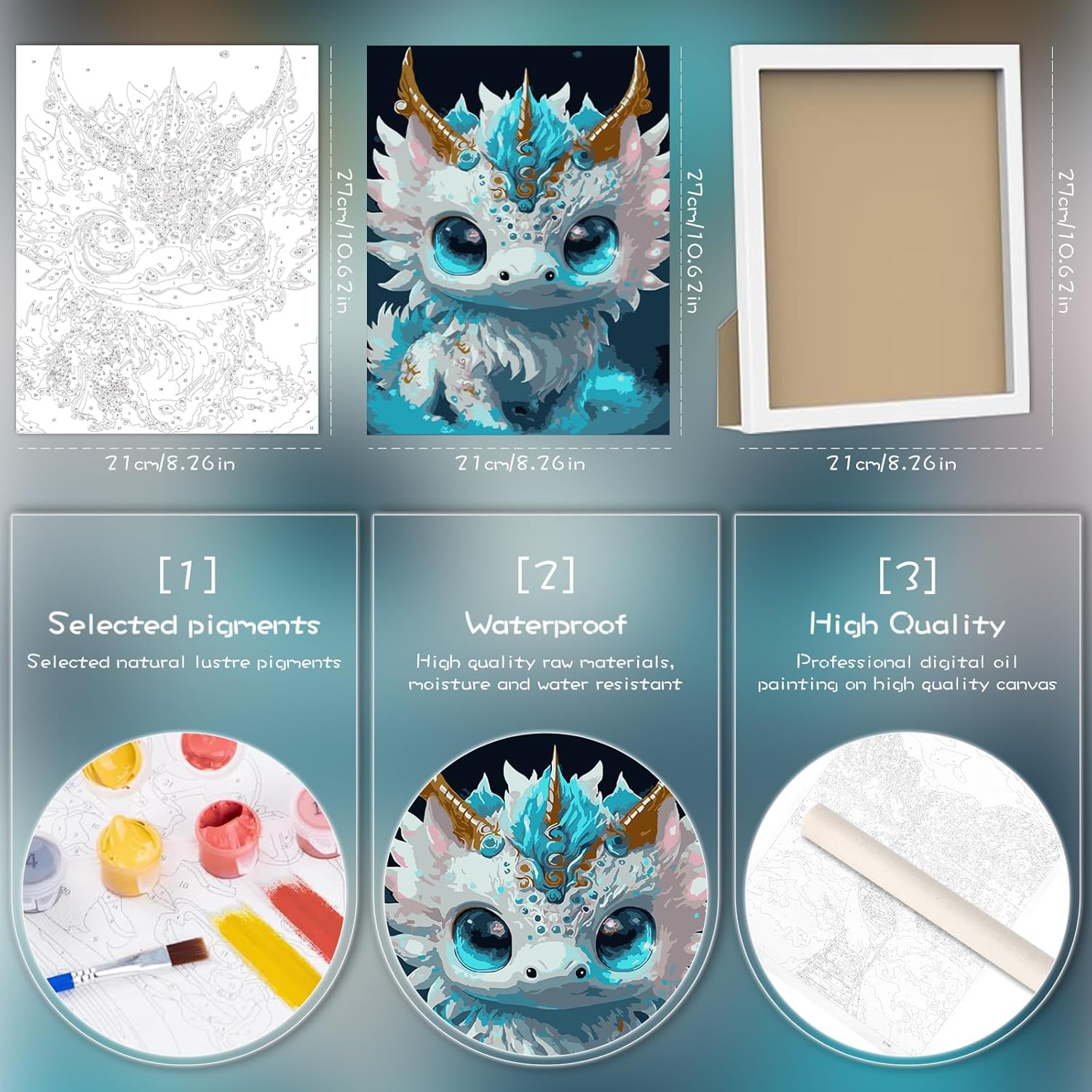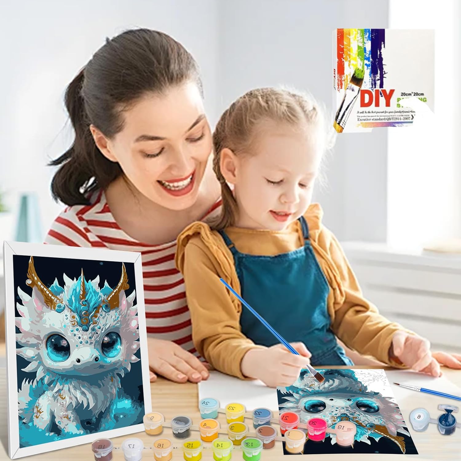 Kit Paint by Numbers Kids incluso: 1 tela a colori ad alta risoluzione, 1 immagine di riferimento a colori, 1 cornice per foto in legno, 1 set di colori acrilici, 2 pennelli. Il set contiene abbastanza strumenti per dimostrare le tue abilità di pittura. Pigmenti e tela di alta qualità: i pigmenti sono pigmenti acrilici atossici e sicuri di alta qualità. Sono pigmenti verdi ed ecologici con alta luminosità, colori vivaci, alta concentrazione e senza acqua. La tela che offriamo è una tela stampata bicolore che facilita il riconoscimento dei numeri e protegge meglio gli occhi. La tela ad olio professionale ha una consistenza chiara e facile da colorare. 【Quali sono i vantaggi per i bambini】: Dipingere con i numeri dei bambini è un prodotto fai da te che le mani dei tuoi bambini hanno bisogno per completare l'immagine. Dipingere con i numeri non solo ti aiuta a tenere il bambino lontano dall'elettronica, ma è anche perfetto per migliorare la creatività, la fiducia in se stessi, la capacità di attenzione e le abilità pratiche dei tuoi bambini. 【Processo di produzione per dipingere-pagare】: il processo di pittura è particolarmente semplice. I numeri sulla scatola dei colori corrispondono ai numeri sulla tela. Utilizzare il pennello per ottenere il colore appropriato e dipingere direttamente. Anche senza la base della pittura artistica, puoi creare squisiti dipinti ad olio usando la pittura con i numeri. Adatto per adulti, bambini e principianti. Ottima idea regalo: il kit per dipingere con i numeri è il regalo ideale per i bambini. Non solo consente ai bambini di sperimentare la gioia della creazione, ma incoraggia anche la loro capacità di osservazione e abilità pratiche, e il lavoro finito può essere raccolto da loro o trasmesso come regalo significativo al loro migliore amico.