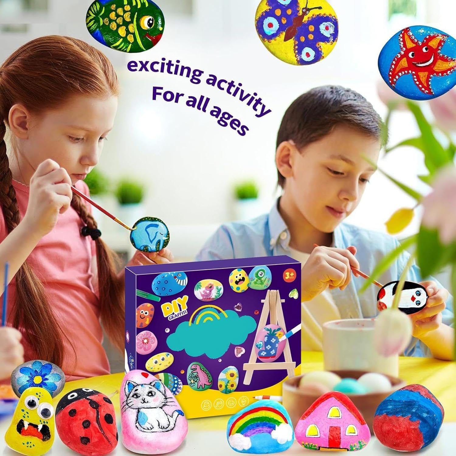 Resistente allo sbiadimento: la speciale formula crea un rivestimento protettivo affidabile che respinge la pioggia e l'umidità e preserva i colori vivaci delle pietre dipinte a mano in modo permanente Promozione dell'autonomia: con questo set di pittura i bambini a partire dai 6 anni possono realizzare autonomamente progetti creativi. I pennelli ergonomici con manici arrotondati e il colore facile da applicare supportano una piacevole esperienza di pittura e incoraggiano a trascorrere il tempo di qualità con le attività artistiche. Sviluppo creativo e crescita artistica: la pittura di pietre 3D stimola naturalmente la concentrazione, l'apprezzamento estetico, la coordinazione dei colori e la percezione spaziale, alimentando la creatività e il potenziale artistico. Inizio facile: include pennelli e pietre da dipingere per creare senza sforzo scarabocchi, sfumature e strati per creare capolavori notturni istantaneamente illuminanti sulle pietre, poiché tutto è pronto all'uso Dipingi incantevoli cieli notturni: Promuovi l'espressività artistica con set di pietre luminose che contengono pigmenti fluorescenti. Queste luci si illuminano automaticamente e illuminano incantevoli cieli notturni, ispirano l'arte di luce e ombra e sono divertenti