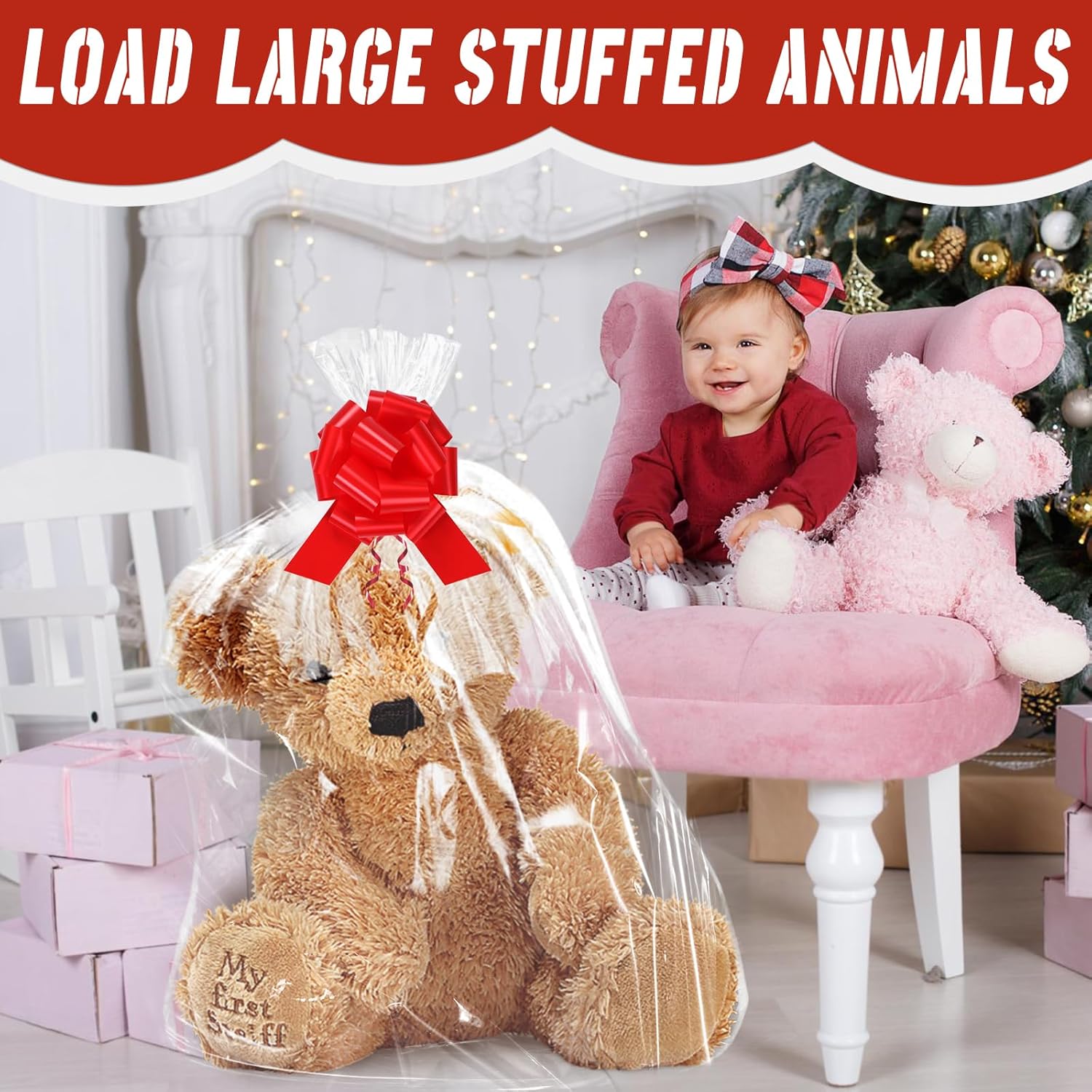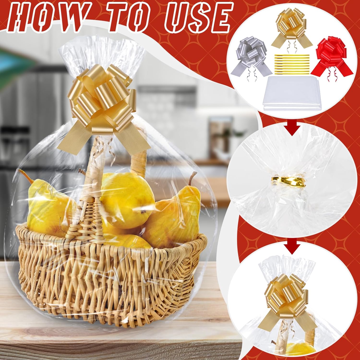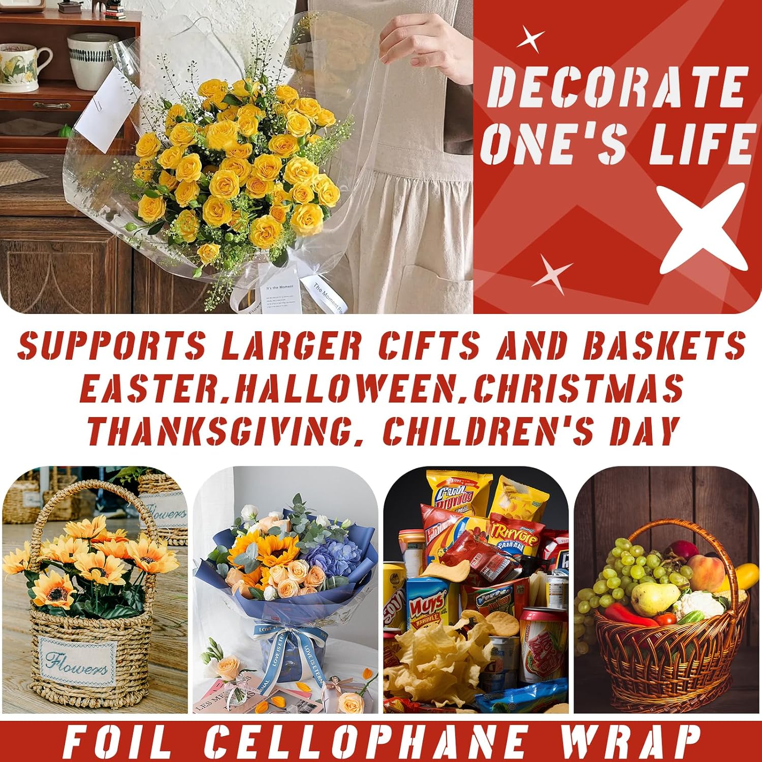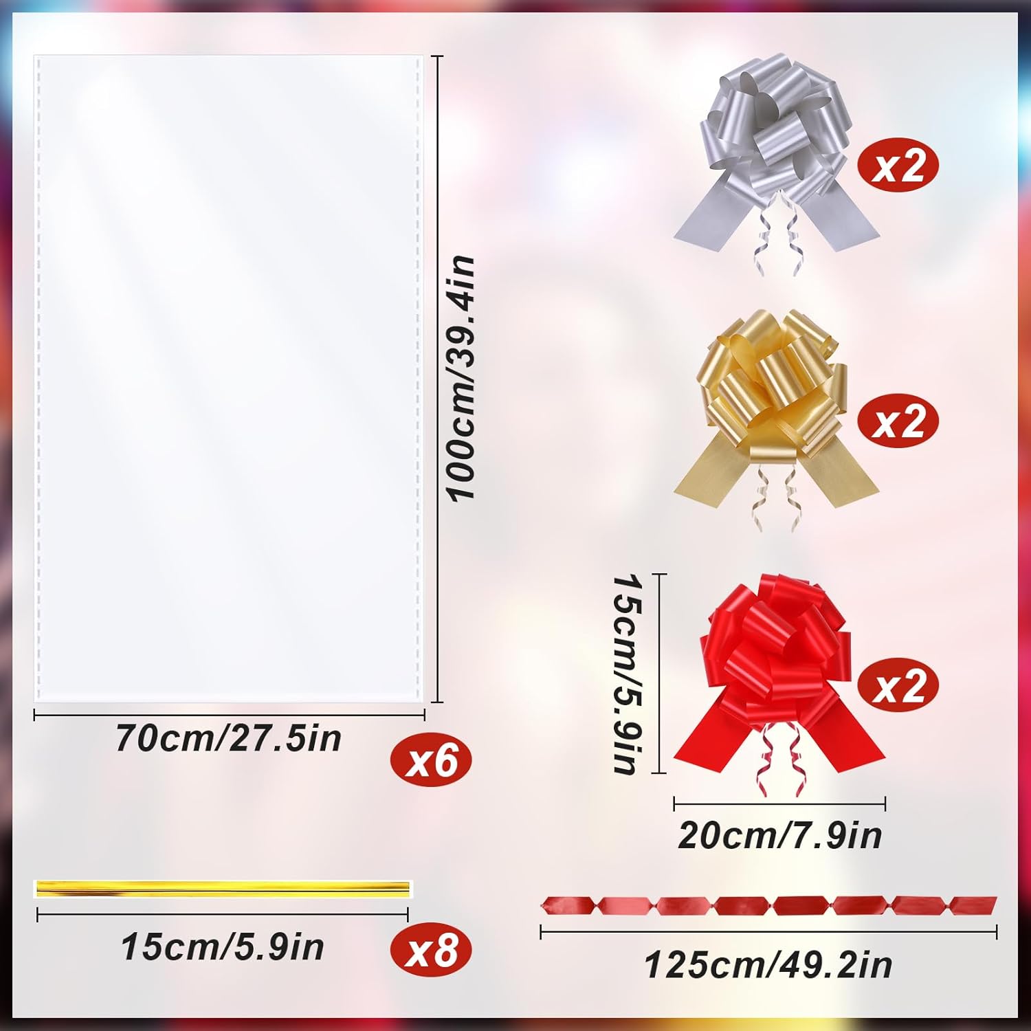 LISTA IMBALLAGGIO: Riceverai 6 sacchetti regalo in cellophane extra large e 6 fiocchi per confezionare regali (cestino non incluso) OVERSIZE: I sacchetti regalo in cellophane misurano circa 70 cm x 100 cm (A x L), adatti per avvolgere oggetti di medie o grandi dimensioni MATERIALE SPESSO: I nostri sacchetti regalo in cellophane sono robusti e durevoli, resistenti allo strappo, alla polvere e all'umidità, puoi acquistarli con sicurezza MULTIUSO: I nostri sacchetti regalo in cellophane grandi possono essere utilizzato per confezionare scatole regalo, cornici per foto, regali di grandi dimensioni, mazzi di fiori, cestini, giocattoli di peluche, abbigliamento, regali di Natale, regali di compleanno, oggetti di artigianato e altro ancora FACILE DA USARE: basta aprire la borsa e posizionare il regalo nella borsa, il filo e il fiocco attaccati fungono da chiusura e decorazione
