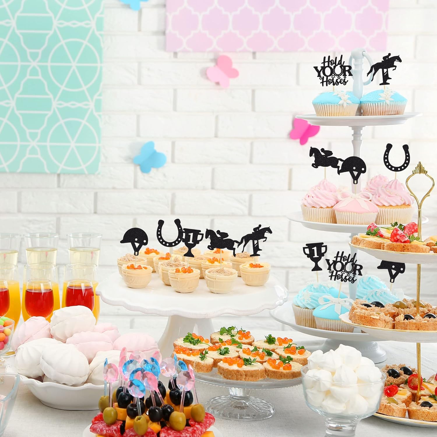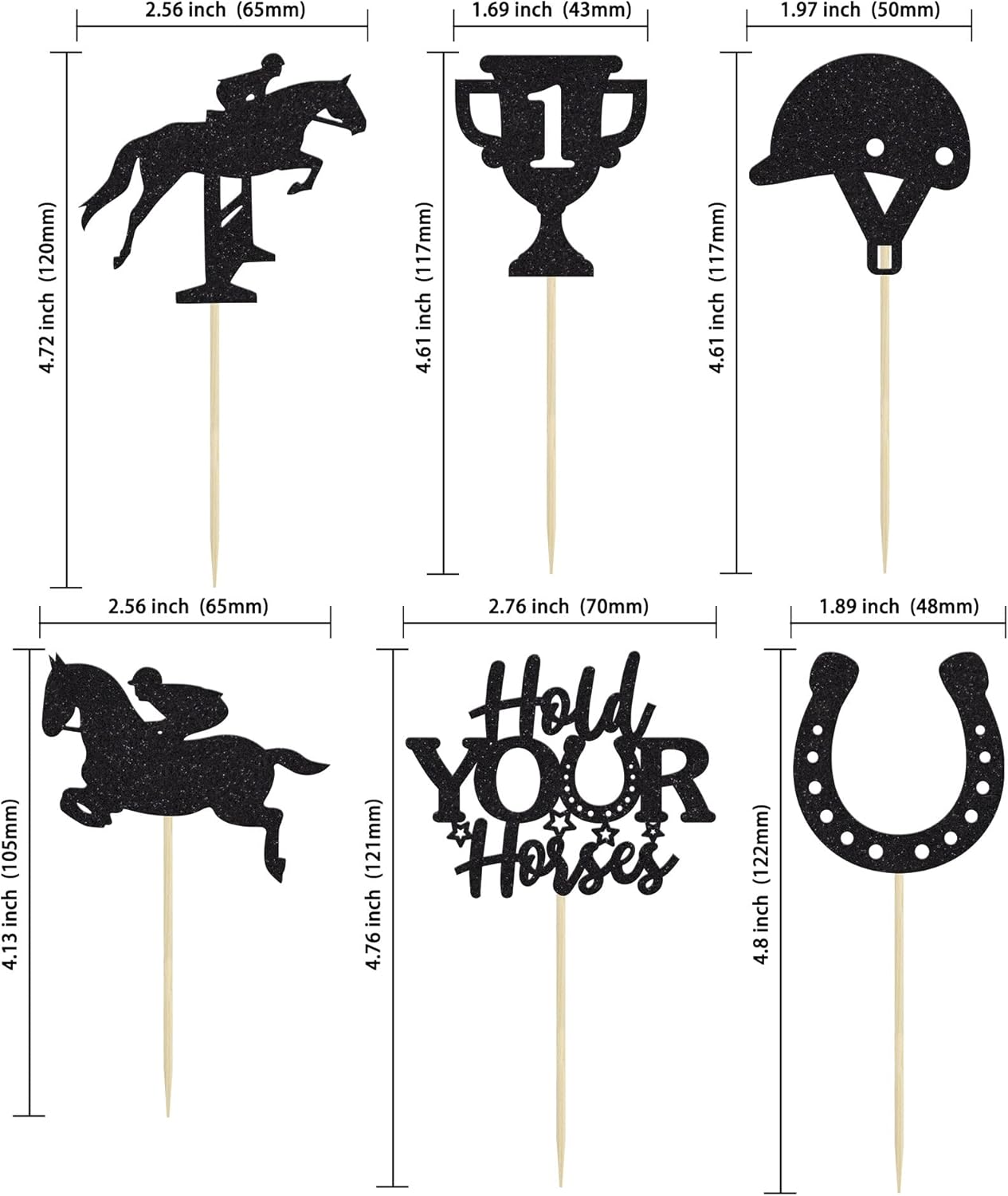 La confezione include: 24 toppers per cupcake a forma di cavallo. Viene assemblato, quindi puoi inserirlo nella tua torta, rendendo la tua torta più interessante. ✨Materiale premium: questi toppers per cupcake a forma di cavallo sono realizzati in cartoncino glitterato da 300 g di alta qualità e stuzzicadenti per uso alimentare, molto sicuri da mettere su torte, cupcake, gelati, frutta, crostate, dessert, formaggi o qualsiasi altro piatto e antipasto che desideri decorare. Questi toppers cupcake glitterati sono così carini e perfetti per feste a tema Derby, feste a tema equestre, feste a tema cavallo, baby shower, feste di compleanno per bambini. Possono rendere i tuoi cupcakes più attraenti e rendere divertente la tua festa. Puoi applicarli anche su gelati, frutta, biscotti e altri dessert. Ampi usi: design unico e personalizzato a tema Derby. Il miglior cake topper per feste che può essere utilizzato per decorazioni per feste a cavallo e altre feste a tema simili. 🎉Suggerimenti: progettato solo per un lato, il retro è bianco semplice. Solo a scopo decorativo, non è commestibile e si prega di non utilizzarlo nel forno o nel microonde.