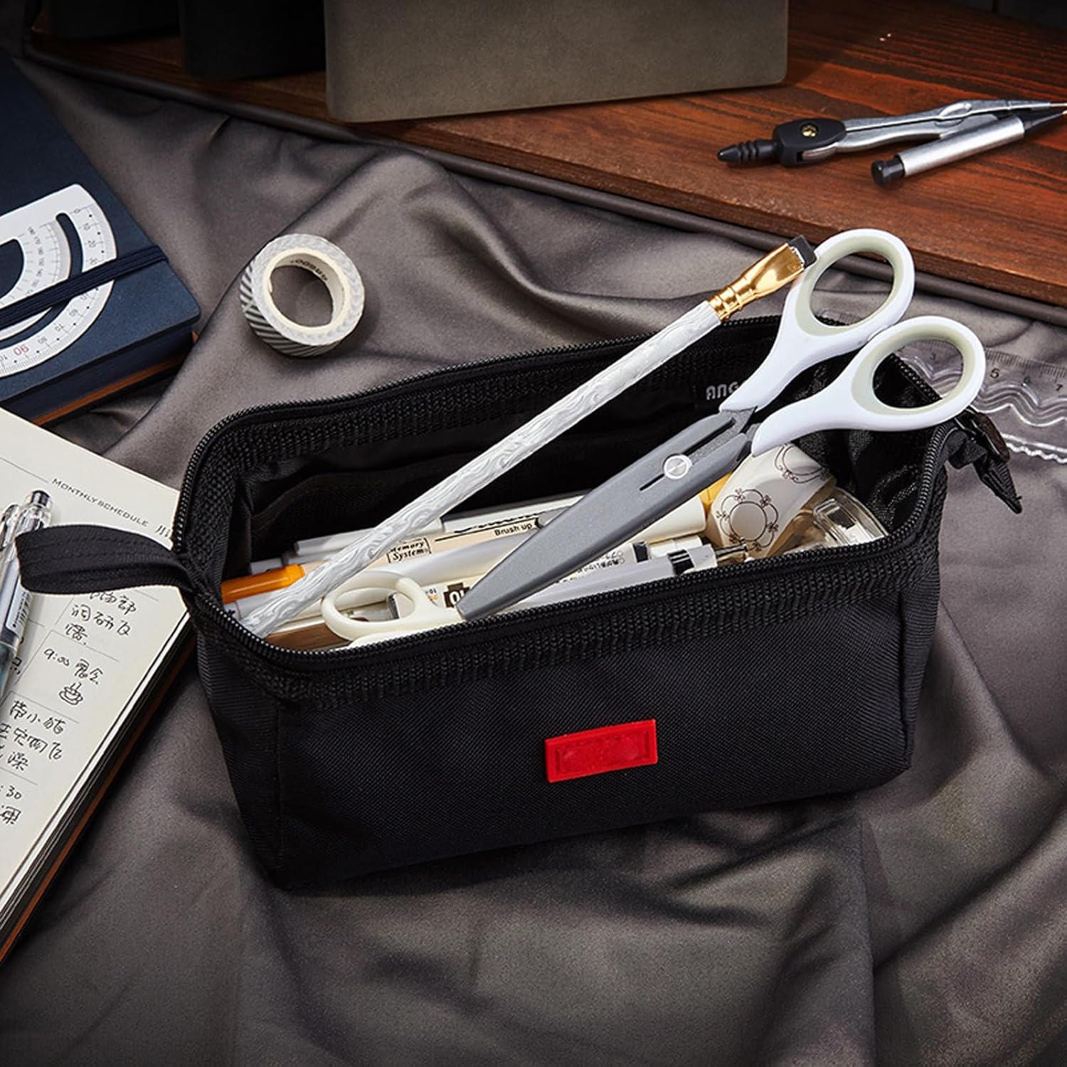 Design a barca: questo spazioso astuccio a forma di barca, utilizzando l'apertura laterale della porta laterale a mano, la somma multistrato di pulito e ordinato, è possibile aprire l'astuccio dalla parte superiore e laterale, facile da portare dentro o fuori gli oggetti Grande capacità: misura 22 x 9 x 13 cm, il grande astuccio con una grande apertura ha abbastanza spazio per matite, gomme, temperamatite, forbici, adesivi, righelli e altri articoli di cancelleria Materiale di alta qualità: la custodia per cancelleria con tela ad alta densità, tessuto resistente e piacevole al tatto, resistente allo sporco e all'acqua. La cerniera liscia e il manico rotondo per una facile chiusura e trasporto Struttura semplice: scomparto principale dell'organizer per cancelleria con 2 piccole tasche laterali sulla parte superiore, la patta frontale con apertura ha 5 scomparti per penne e 1 tasca in rete, perfetta per afferrare la penna, e una tasca posteriore con cerniera per oggetti importanti Ampia applicazione: l'astuccio estetico può essere utilizzato anche come borsa da viaggio, borsa per cosmetici, borsa da toeletta, borsa per forniture artistiche, borsa per forniture per ufficio e molto altro ancora, è ampiamente utilizzato in classe, ufficio, casa e viaggi
