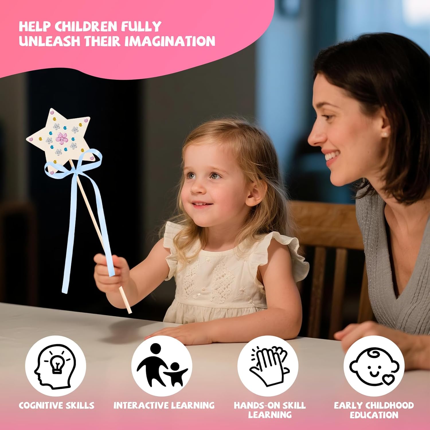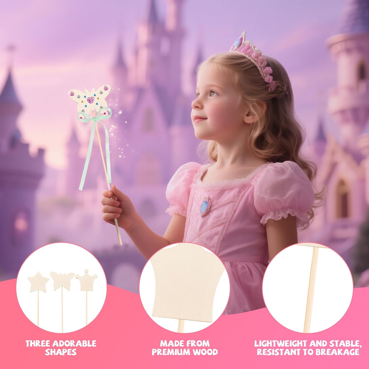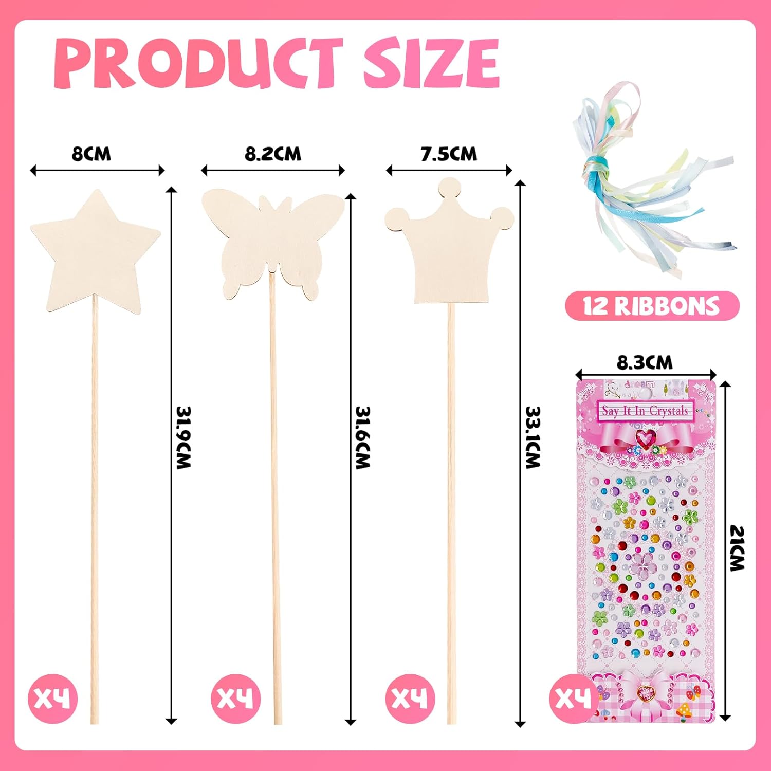 Kit bacchetta magica: riceverete 12 bacchette magiche in legno, 12 nastri, 4 adesivi a forma di diamante per poterle personalizzare a vostro piacimento. Materiali di alta qualità:realizzate in legno di alta qualità,atossiche e inodori,leggere ma resistenti,con una superficie liscia e levigata che non graffia le mani. Il piacere del fai da te: scegliete tra diversi motivi (farfalle,stelle,corone),nastri colorati e adesivi a forma di diamante.Decorate le vostre bacchette di legno con adesivi,paillettes e molto altro ancora per creare le vostre bacchette magiche personalizzate. Abilità manuali:ideali per dipingere o scrivere,stimolano l'immaginazione dei colori migliorando al contempo la coordinazione occhio-mano e la creatività. Il regalo perfetto:ideali per feste di compleanno,Natale,Halloween,feste a tema principesse o come piccolo regalo premuroso.