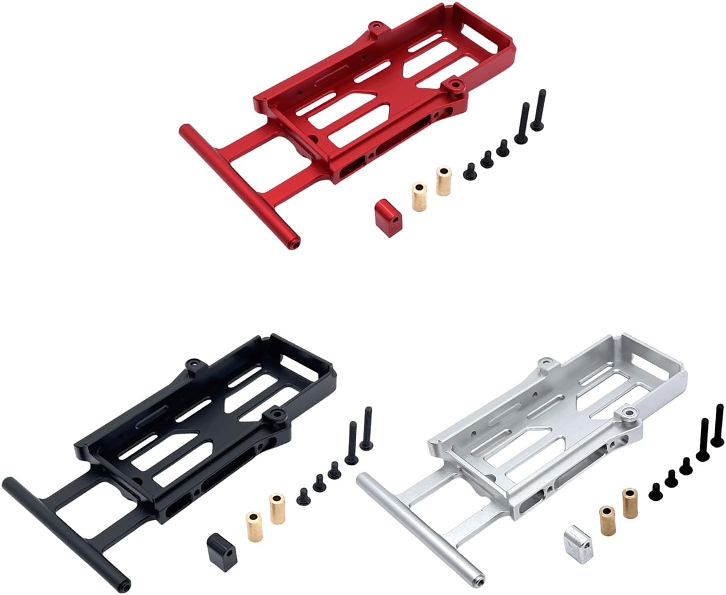 Design compatto preciso realizzato in alluminio resistente all'abrasione perfettamente integrato nel vano batteria del veicolo con telecomando senza compromettere l'integrità strutturale Perfetto per gli appassionati di telecomando e i corridori competitivi che cercano miglioramenti Semplifica la manutenzione con questo pezzo di ricambio ed è progettato per resistere a forti vibrazioni nei veicoli con telecomando H12Y/H12Y+, ripetere lo scambio della batteria Per camion o cambiamenti, questo supporto per batteria mantiene la sicurezza della batteria su terreni difficili mantenendo l'equilibrio del veicolo di controllo remoto Progettato per 1/12 H12Y e H12Y+, questo supporto per vano batteria in alluminio offre durata