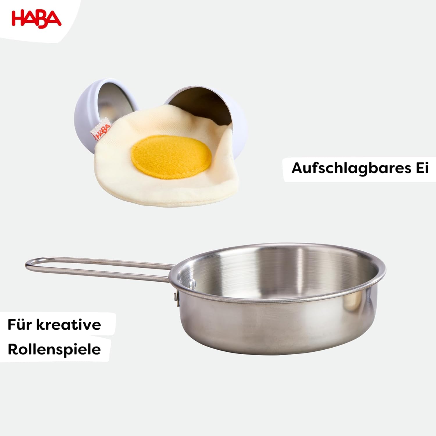 GIOCO DI CUCINA CREATIVA: l'uovo di metallo può essere aperto e l'uovo fritto in tessuto incluso può essere fritto in padella, ideale per fantasiose avventure in cucina per bambini. PROMUOVE LA CREATIVITÀ E LE CAPACITÀ MOTORIE FINE: Durante il gioco di ruolo, i bambini sviluppano la creatività in modo giocoso e allenano le loro capacità motorie con molto divertimento e gioia. ROBUSTO E SICURO: Realizzato con materiali durevoli (metallo robusto e tessuto morbido), il set è durevole e sicuro per un gioco spensierato. DESIGN REALISTICO: grazie al design amorevole, il gioco diventa ancora più realistico, ideale per imitare i veri processi di cottura degli aspiranti chef. REGALO E AGGIUNTIVI: perfettamente combinabile con la cucina da gioco HABA Creative Play (set 3 in 1 – Art. 2011830001) per un divertimento di gioco prolungato o come idea regalo speciale.