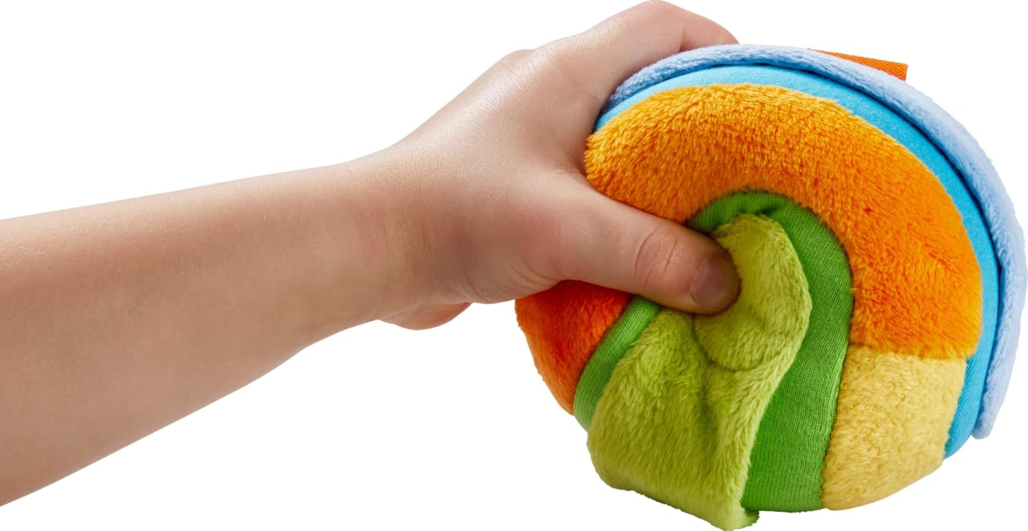 Primo proiettile in splendidi colori: la palla scoperta HABA delizierà i bambini a partire dai 6 mesi, Ø 11 cm La palla in tessuto morbido per neonati con sonaglio è lavabile in lavatrice a 30 °C Con le mani piccole, il giocattolo delle capacità motorie può anche essere facilmente afferrato dai loop della maniglia cuciti Quando si tiene, spremere, lanciare e rotolare, il giocattolo in tessuto favorisce le capacità motorie manuali e sottili del bambino Colorata e progettata con diverse superfici, la palla per bambini incoraggia a giocare in posizione sdraiata, strisciare e correre