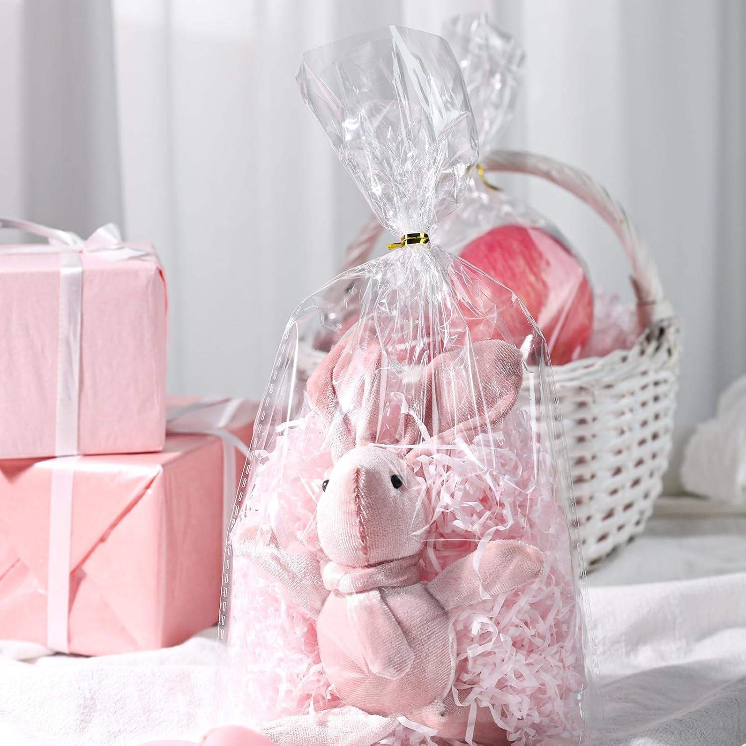 LA CONFEZIONE COMPRENDE - 100 sacchetti trasparenti (15 cm x 25 cm) per dolci con 100 fascette dorate. GRANDE CAPACITÀ - I sacchetti di cellophane sono resistenti e il design a fondo piatto li rende comodi da posizionare dopo aver tenuto molte caramelle. MATERIALE DI ALTA QUALITÀ - Le borse con fondo trasparente realizzate in materiale di polipropilene orientato, leggere e resistenti, difficili da rompere. Sigilla bene ed è sicuro e inodore, ottimo per mantenere freschi gli alimenti. DESIGN CLASSICO E CHIARO - I sacchetti di cellophane sono realizzati secondo gli standard e non si strappano o si sporcano facilmente. Gli articoli sono chiaramente visibili e sono perfetti per regali e regali, compleanni, matrimoni, promozioni e altre celebrazioni. VERSATILE - I sacchetti di plastica possono essere utilizzati per confezionare piccoli biscotti, snack, spezie, dolci e frutta secca. Può essere utilizzato anche come sac à poche o come sacchetto regalo per matrimoni, compleanni, Pasqua, Ringraziamento, Halloween, Natale, ecc.
