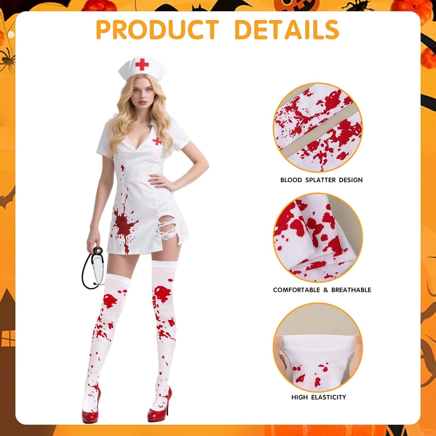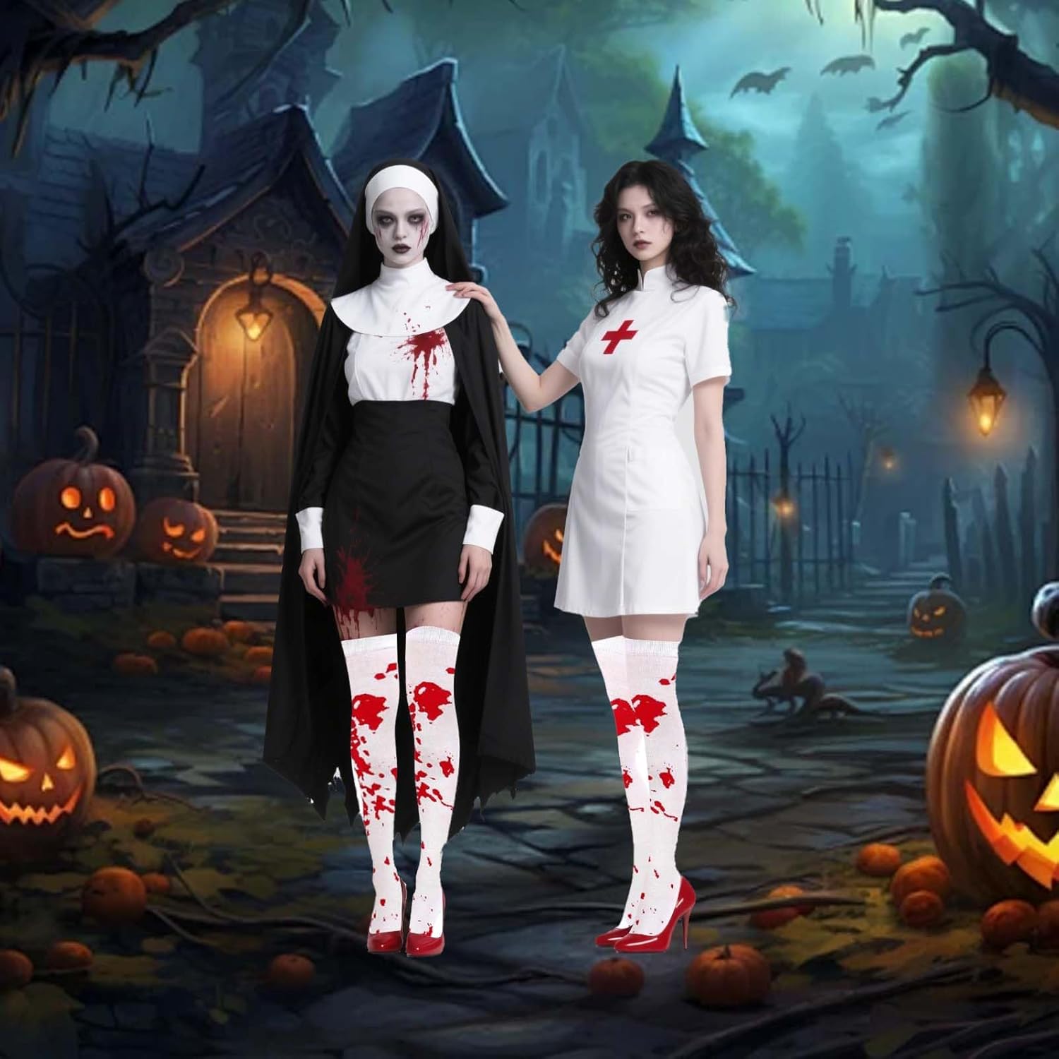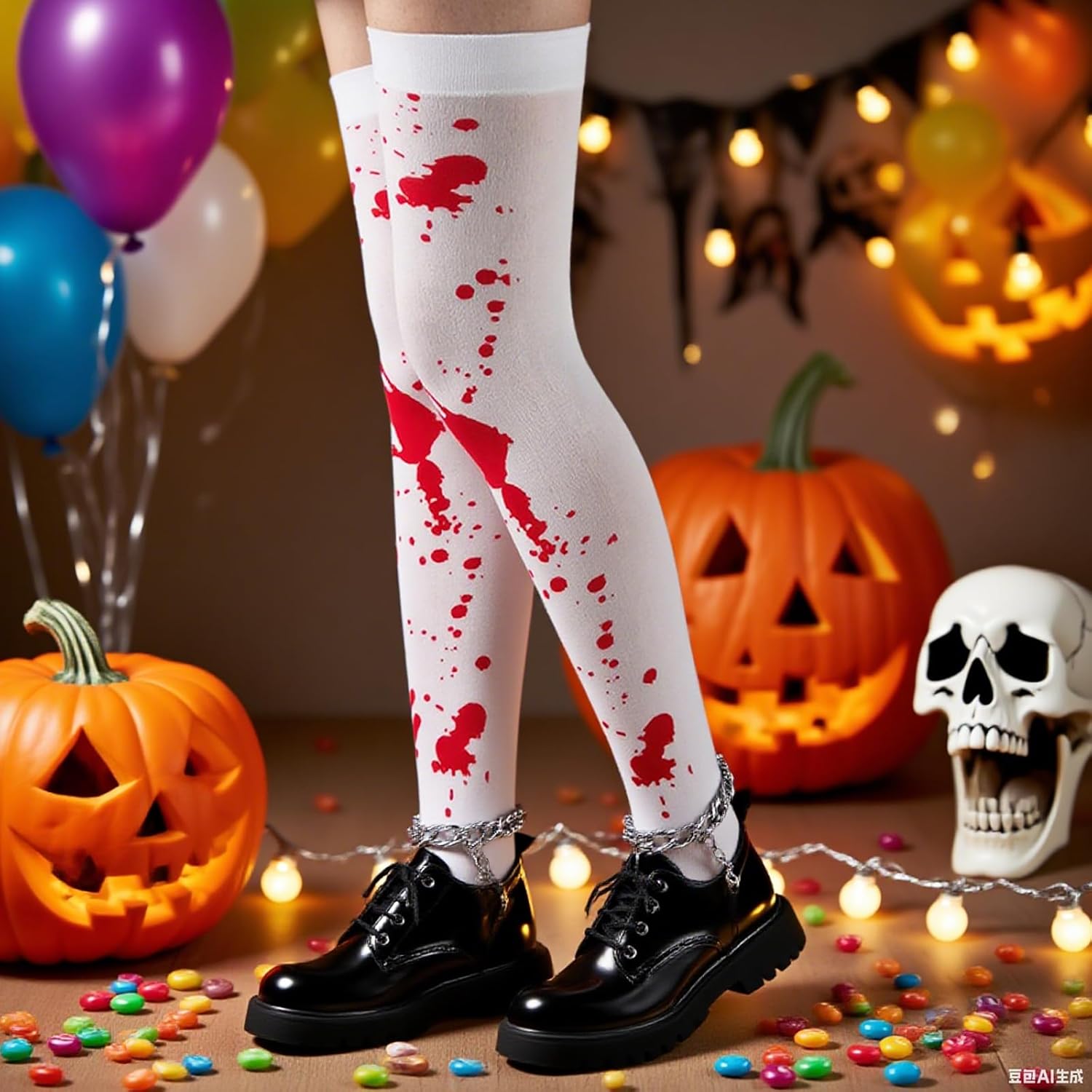 1.Sanguinante ma alla moda: Queste calze di Halloween non sono per chi ha nervi deboli! Che si tratti di collant insanguinati o calze corte, sono ideali per il costume da infermiera. Costume di Halloween donna? Con questo è completo 2.Dai piedi ai brividi: Stile perfetto per Halloween, le calze di Halloween da donna si adattano perfettamente al costume insanguinato di Halloween. Costume da infermiera + queste calze = il centro dell'attenzione horror ad ogni festa 3.Due look, doppio brivido: Un set, due stili! Le calze lunghe insanguinate e le calze corte rendono il tuo costume di Halloween da donna veramente spettrale. Che sia costume da infermiera o stile zombie – sei pronta a spaventare 4.Dolcetto o calzino: Queste calze di Halloween sono la ciliegina sul tuo costume da infermiera. Spaventose, sanguinanti e comode – per chi non solo ama Halloween, ma lo vive 5.Accessorio perfetto per le notti di paura: Che sia per una festa o per dolcetto o scherzetto – con questi collant insanguinati di Halloween rendi unico ogni abito. Calze di Halloween da donna? Certamente – ma per favore con extra brividi