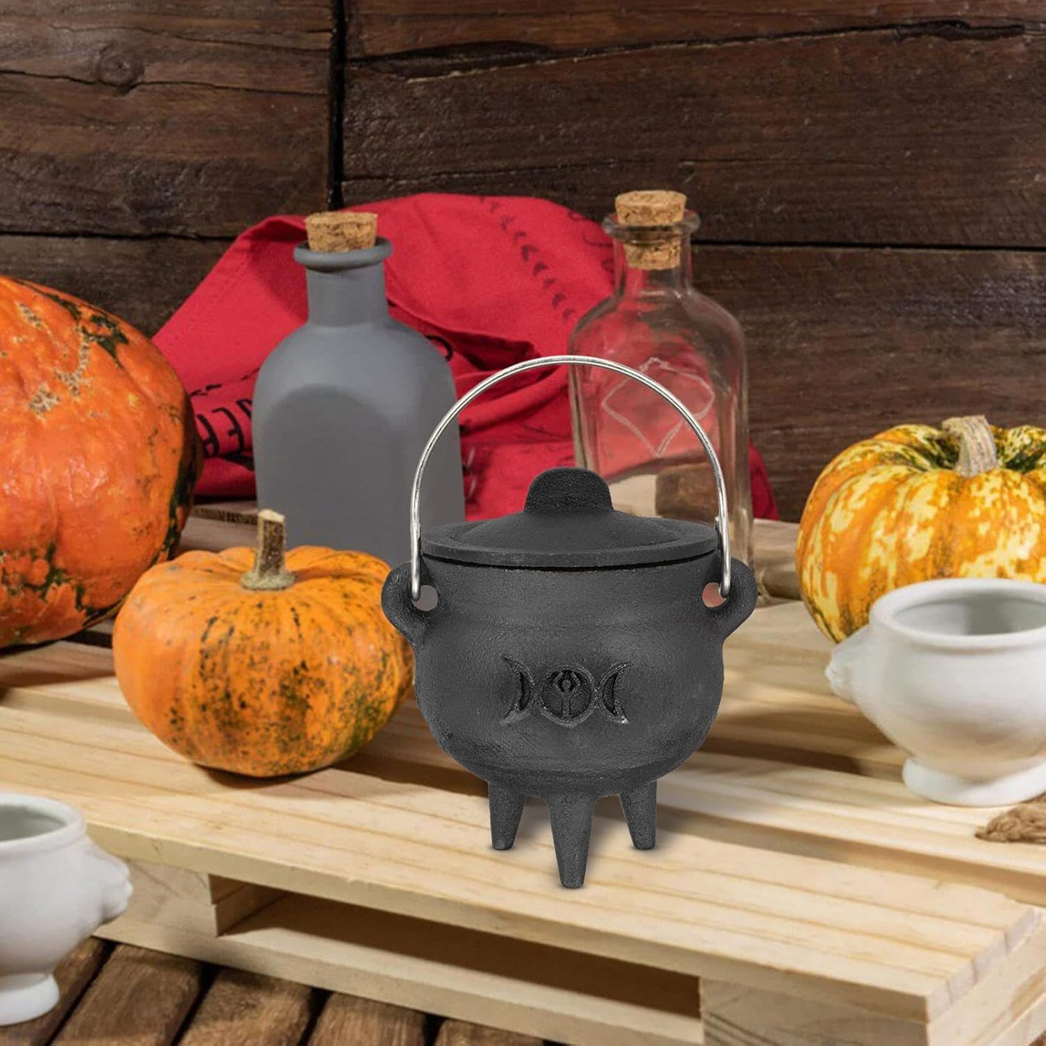 Rappresenta l'elemento d'acqua sull'altare trovato in molte tradizioni Wiccan, il calderone di Halloween è la rappresentazione perfetta 'elemento d'acqua femminile e simile al grembo sull'altare. Funzionamento come simbolo essenziale della creazione di vita Sicuro su qualsiasi superficie: i 3 piedi rialzati in piedi del calderone di Halloween mantengono una distanza di sicurezza da qualsiasi superfici. Si sta integrando con la pentola per evitare la rottura e le gambe non conducono calore. Pentola portatile: la maniglia può girare da sinistra a destra, permettendo di regolare la posizione della pentola sopra il fuoco. Il coperchio estingue rapidamente la fiamma quando hai finito di cucinare o preparare le tue pozioni. Ampiamente applicato: usalo per bruciare incenso, o offerte, che rappresentano la della tua tradizione. Ampiamente usato per mescolare erbe, oli e infusi per lavori magici. Una decorazione unica e un oggetto da collezione per la tua casa o l'altare. Hand portatile e coperchio: realizzato per incenso, incantesimi, offerte e pulizia. Ghisa pesante con manico di trasporto e coperchio di ferro per alte temperature e uso di lunga durata. per rituali e decorazioni di Halloween.