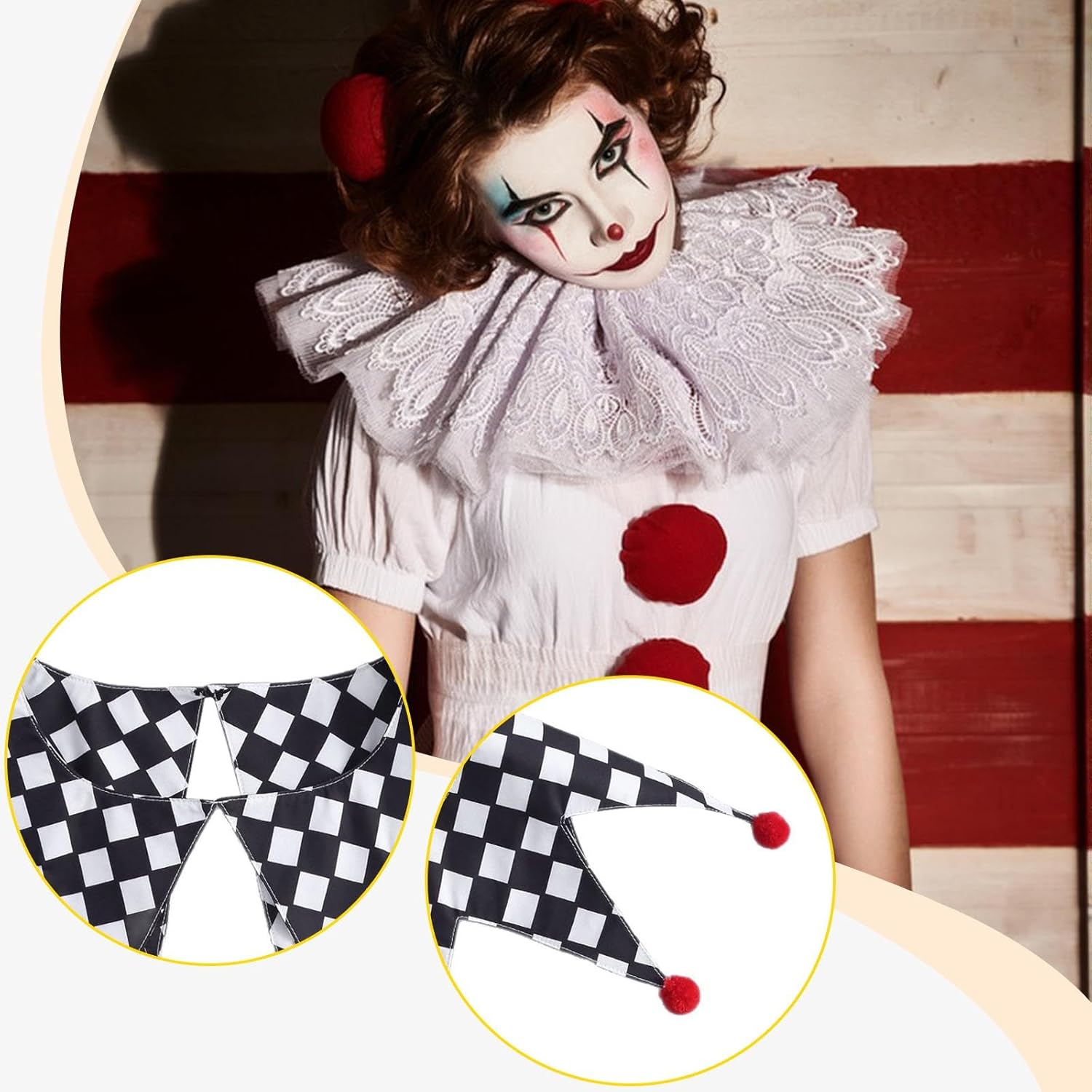 【Taglia】: Progettato con una nferenza del collo di 58 cm/22,83 pollici, questo collare da clown da offre una vestibilità aderente ma comoda per la maggior parte degli indossatori 【Accessori per costumi da giullare】: questo colletto da clown è un accessorio sia per uomini che per donne, ottimo per Halloween, cosplay, spettacoli circensi e feste a tema, 【Pacchetto】: Riceverai 1 collare da clown di Halloween 【Materiale】: i collari da clown di Halloween sono realizzati in poliestere, offrendo comfort e traspirabilità per un uso prolungato durante eventi o spettacoli 【Facile da indossare】: i collari da clown sono facili da indossare e da togliere, progettati per vestirsi velocemente in modo da poter essere pronti in pochi secondi, rendendolo comodo