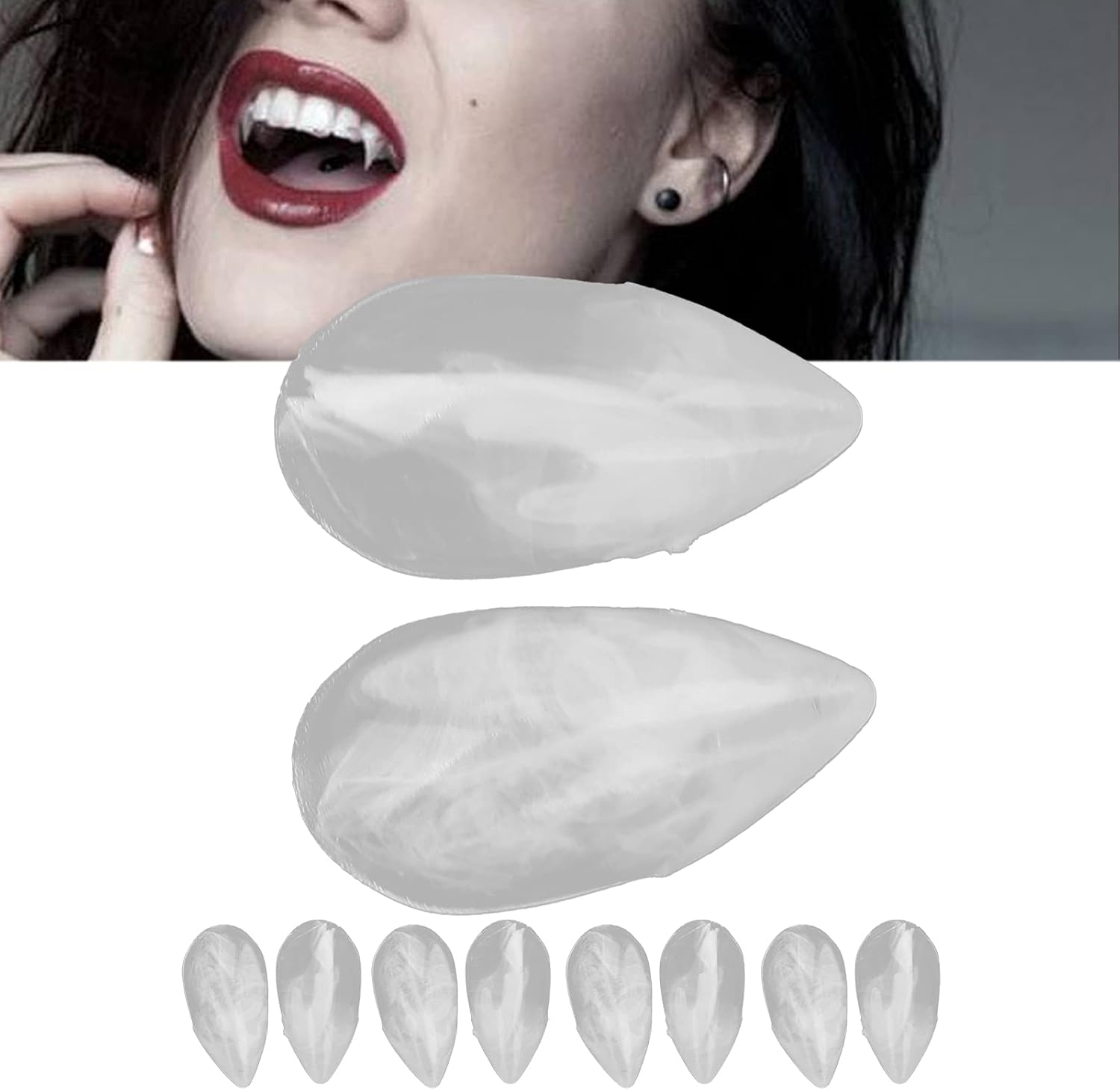 Realizzato in materiale in resina, sicuro ed ecologico e inodore, puoi usarlo con fiducia. Aiuta a creare un effetto vivido dei denti, strumento importante e accessorio per cosplay, conveniente e pratico per l'uso. Per molte occasioni, adatte a Halloween, festa di Natale, decorazioni, gioco di ruolo, carnevale o qualsiasi festival o sfilate. Facile usare, basta sciacquare accuratamente con l'acqua prima dell'uso. Sono disponibili 10 pezzi di denti falsi, soddisfare le tue esigenze di utilizzo. Peso leggero e di piccole dimensioni, possono essere facilmente messi nella borsa, facile trasportare quando si esce, portati comodità.
