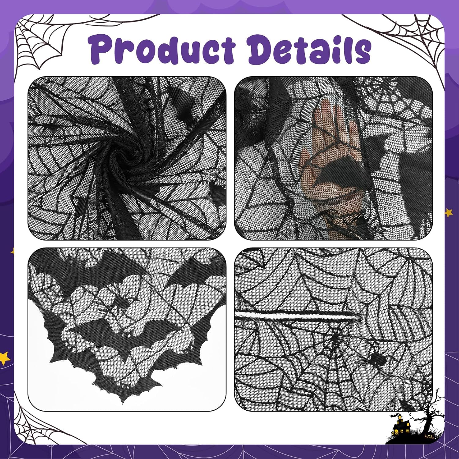 Descrizione prodotto Questo mantello nero a ragnatela crea un'atmosfera misteriosa ed emozionante con il suo esclusivo design in pizzo, un tocco in più per il tuo look di Halloween. Il materiale leggero e morbido con motivi ispirati a Halloween ti farà distinguere alla festa e ti permetterà di mostrare il tuo fascino festivo. Caratteristiche: 1. Il mantello di Halloween è progettato per essere di taglia unica, adatto alla maggior parte delle donne e delle ragazze adulte. È leggero e non aderente, facile da abbinare a diversi costumi e più comodo da indossare. 2. Il mantello in pizzo nero presenta un motivo a ragnatela nel suo complesso e i bordi sono tagliati in modo irregolare per creare un effetto visivo misterioso e bizzarro. Facile da indossare e da togliere, pratico e accattivante. 3. Il mantello a ragnatela non è adatto solo per i costumi di Halloween, ma può essere utilizzato anche per balli in maschera, feste a tema, giochi di ruolo, servizi fotografici, spettacoli teatrali e altre occasioni, aggiungendo più divertimento alle tue vacanze. Specifiche: Materiale: Poliestere Colore: Nero Taglia: Come mostrato in foto Contenuto della confezione: 1 x mantello di Halloween Avviso di sicurezza NO