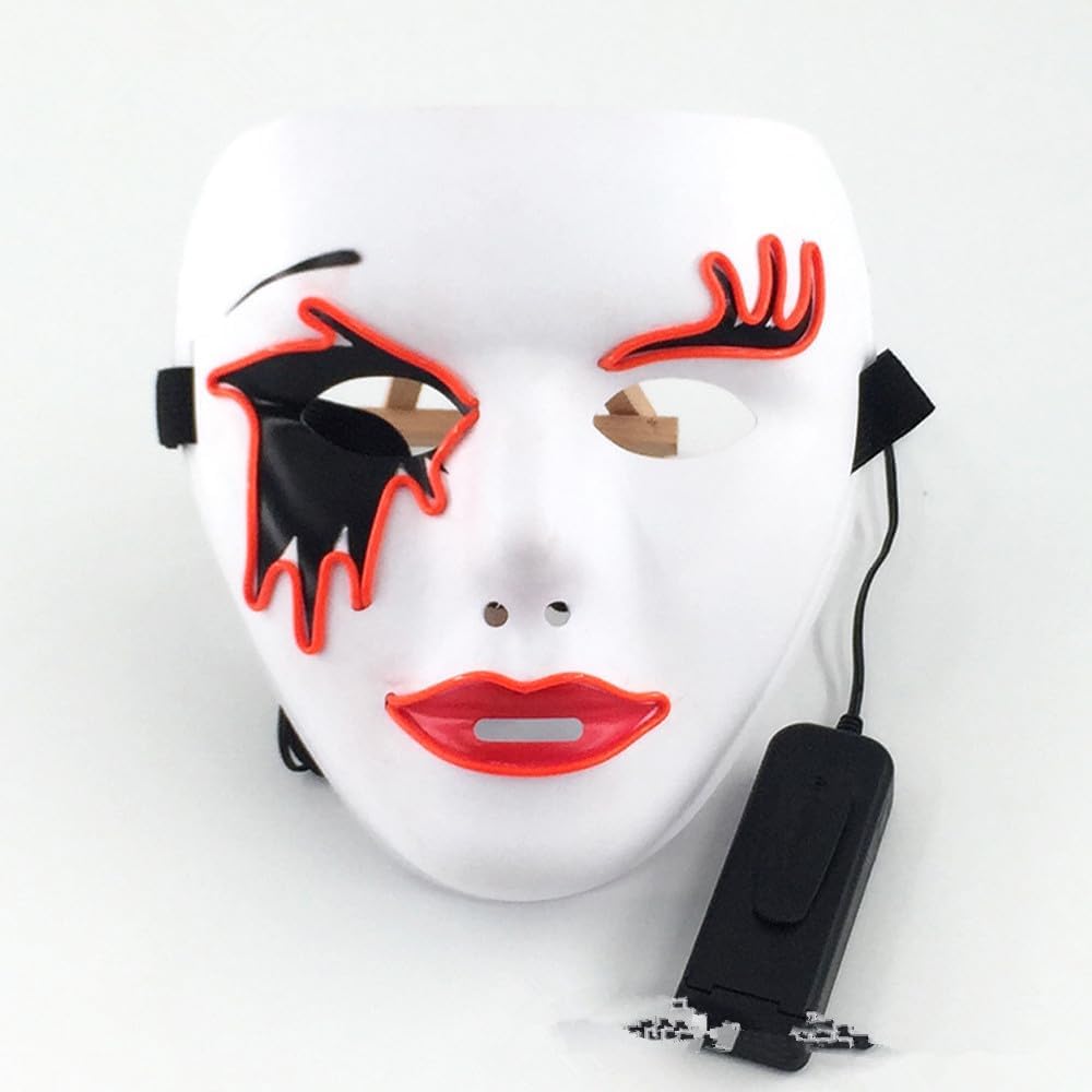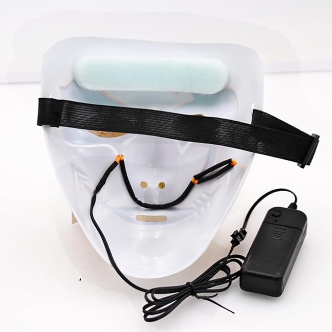Descrizione prodotto Descrizione del prodotto: Materiale: PVC + EL Wire Dimensioni: 19 cm * 18 cm * 8 cm Tipo di batteria: 2 x batterie AA (non incluse) Peso: 150g Caratteristiche: Il pacchetto include: 1 x Maschera Avviso di sicurezza Sicurezza